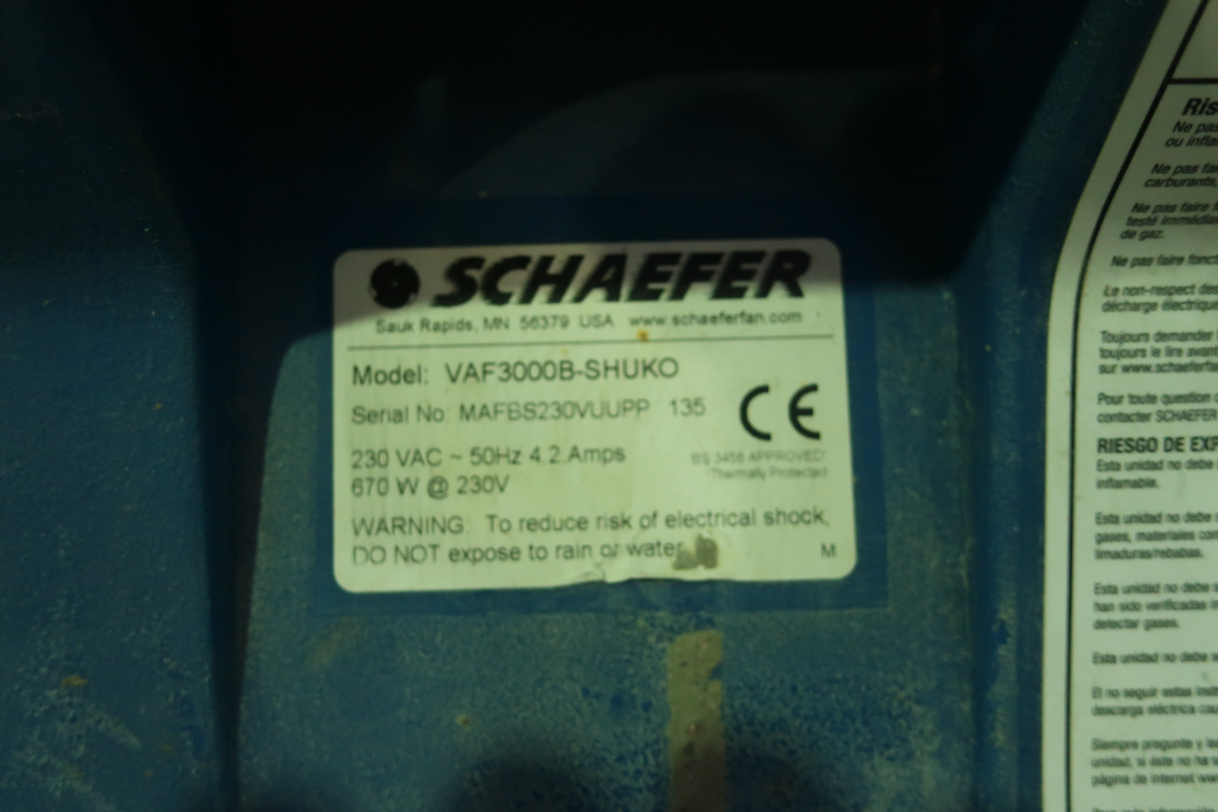 Evacuation fan, Americ VAF 3000 with hose.