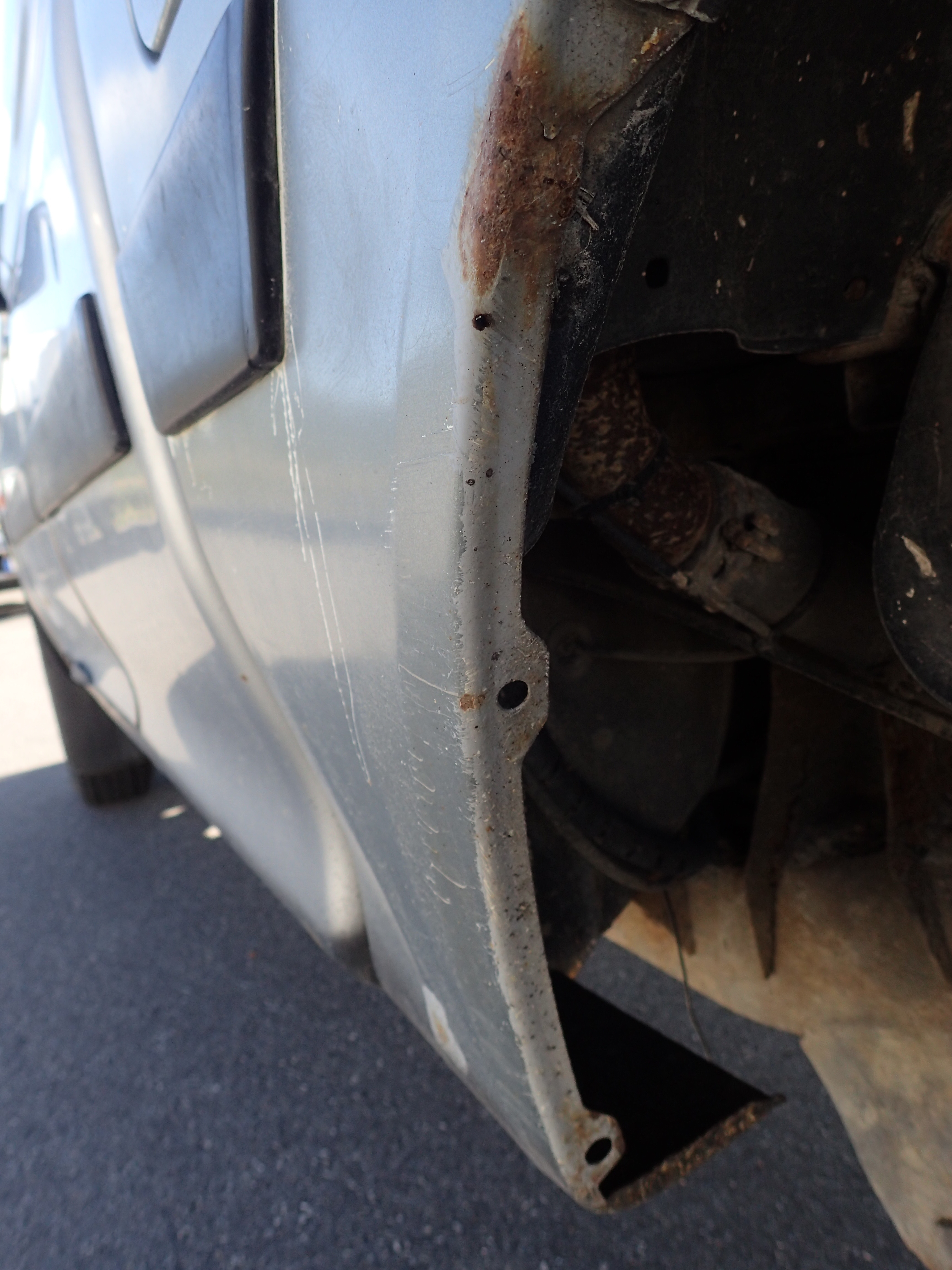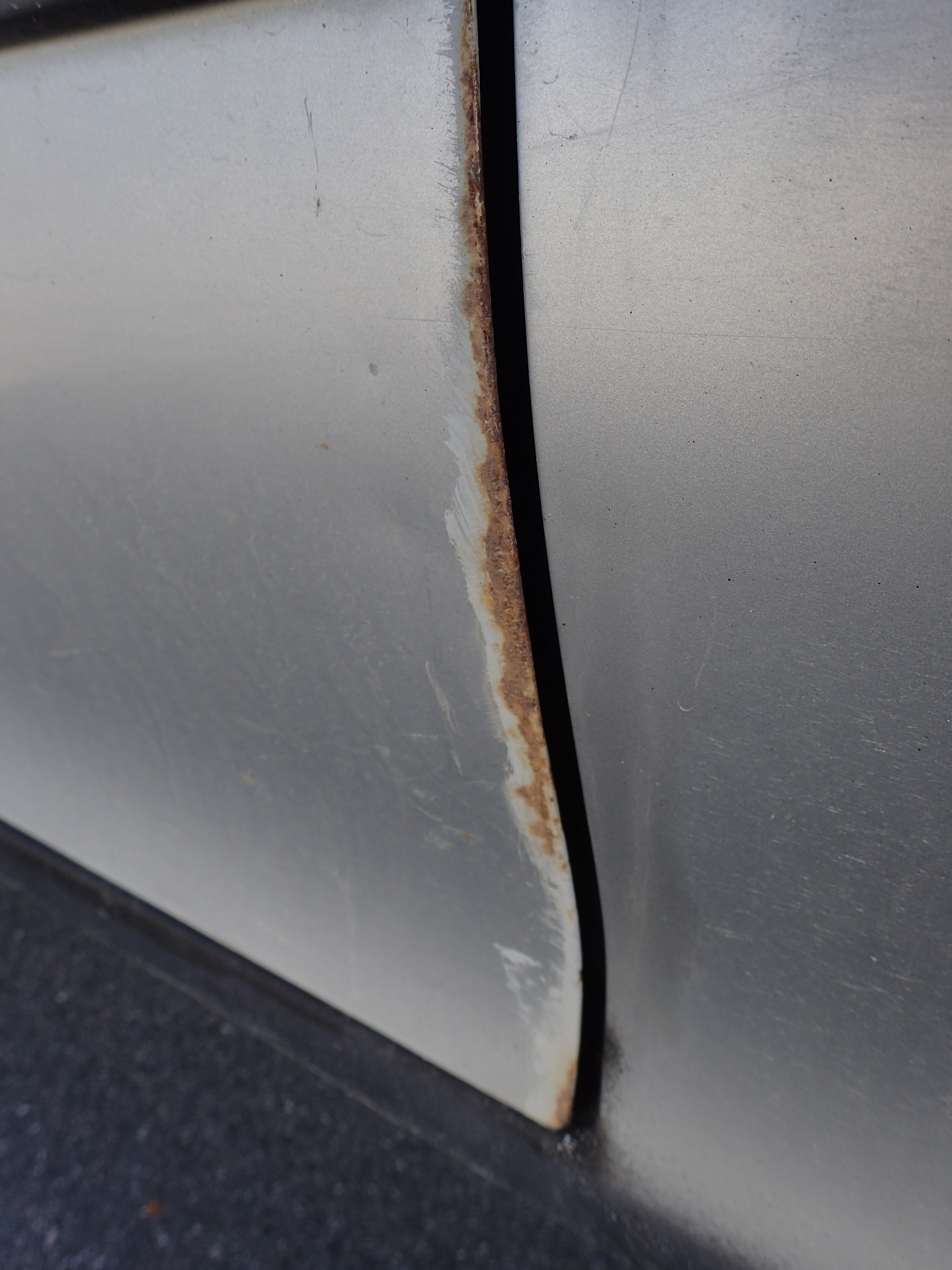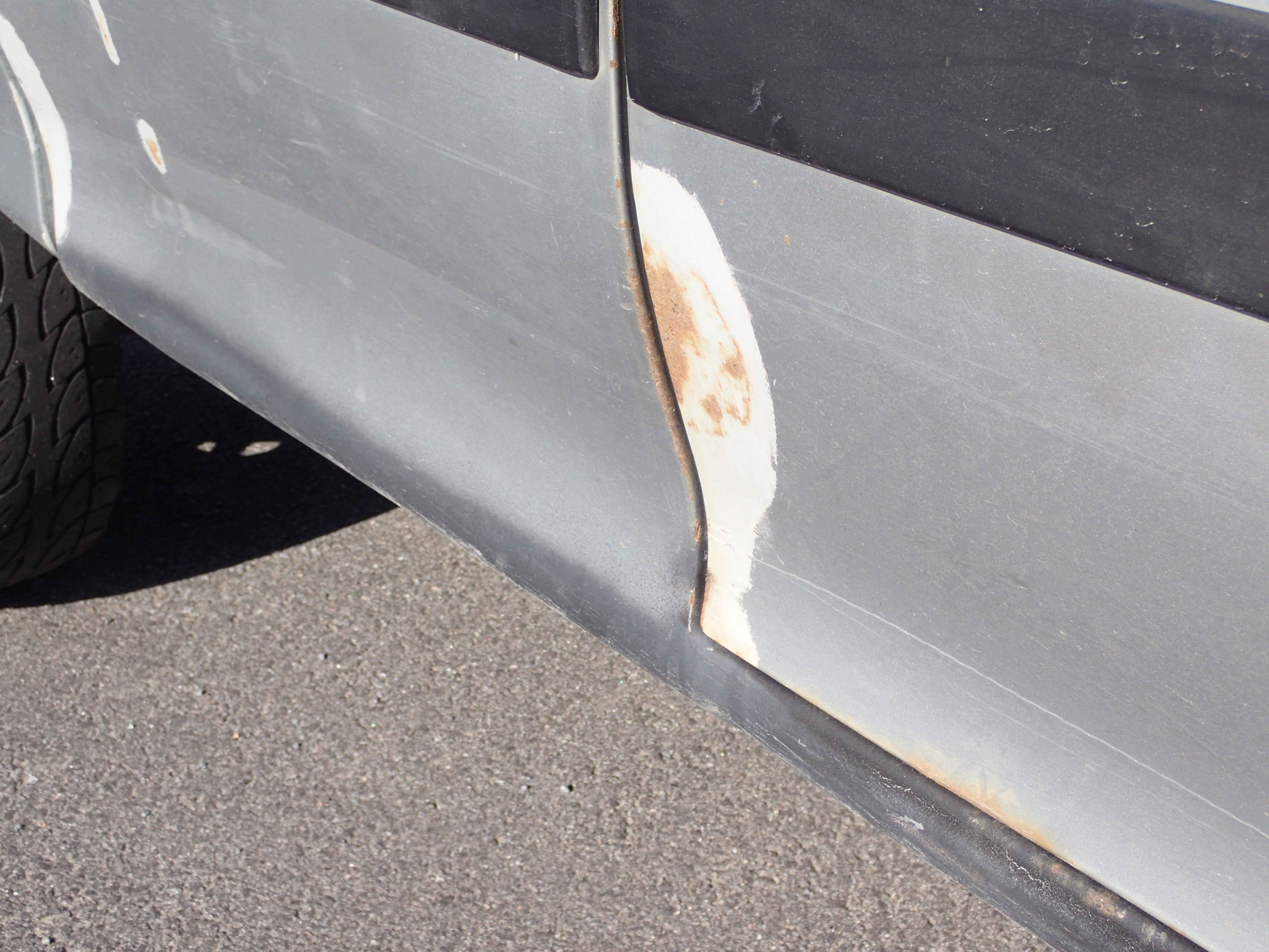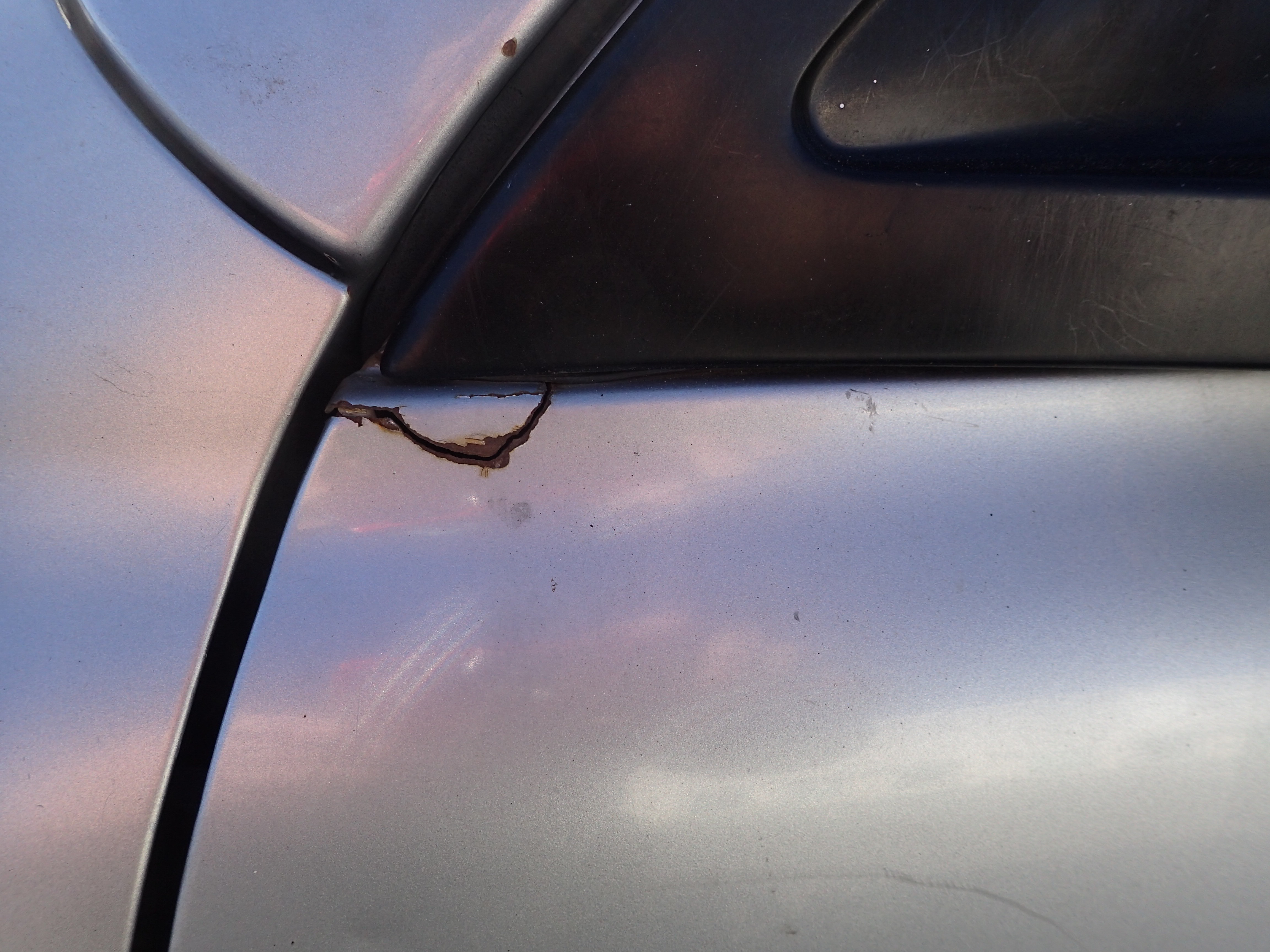The car has surface rust / rust, stone chips, dents on the car.