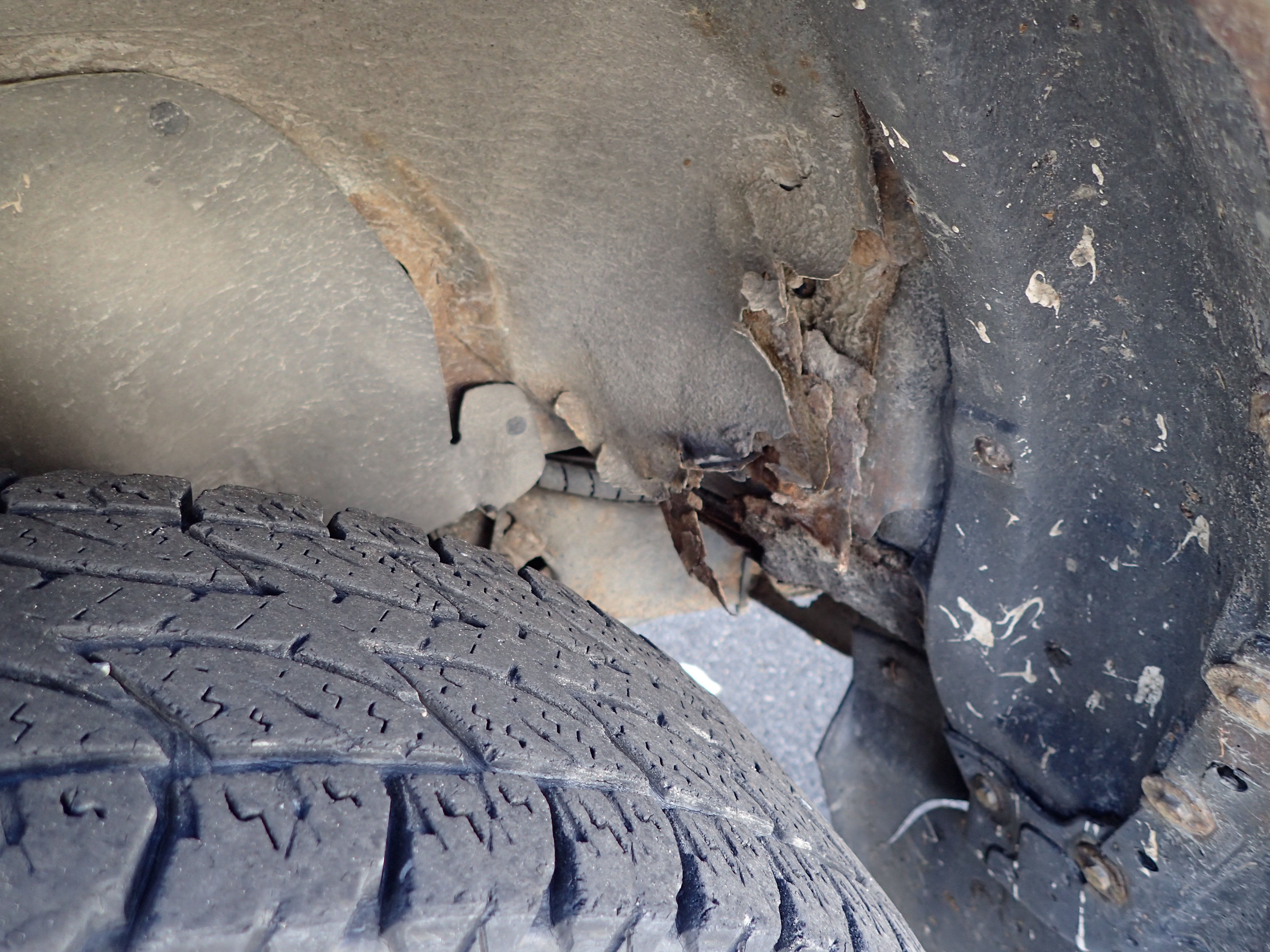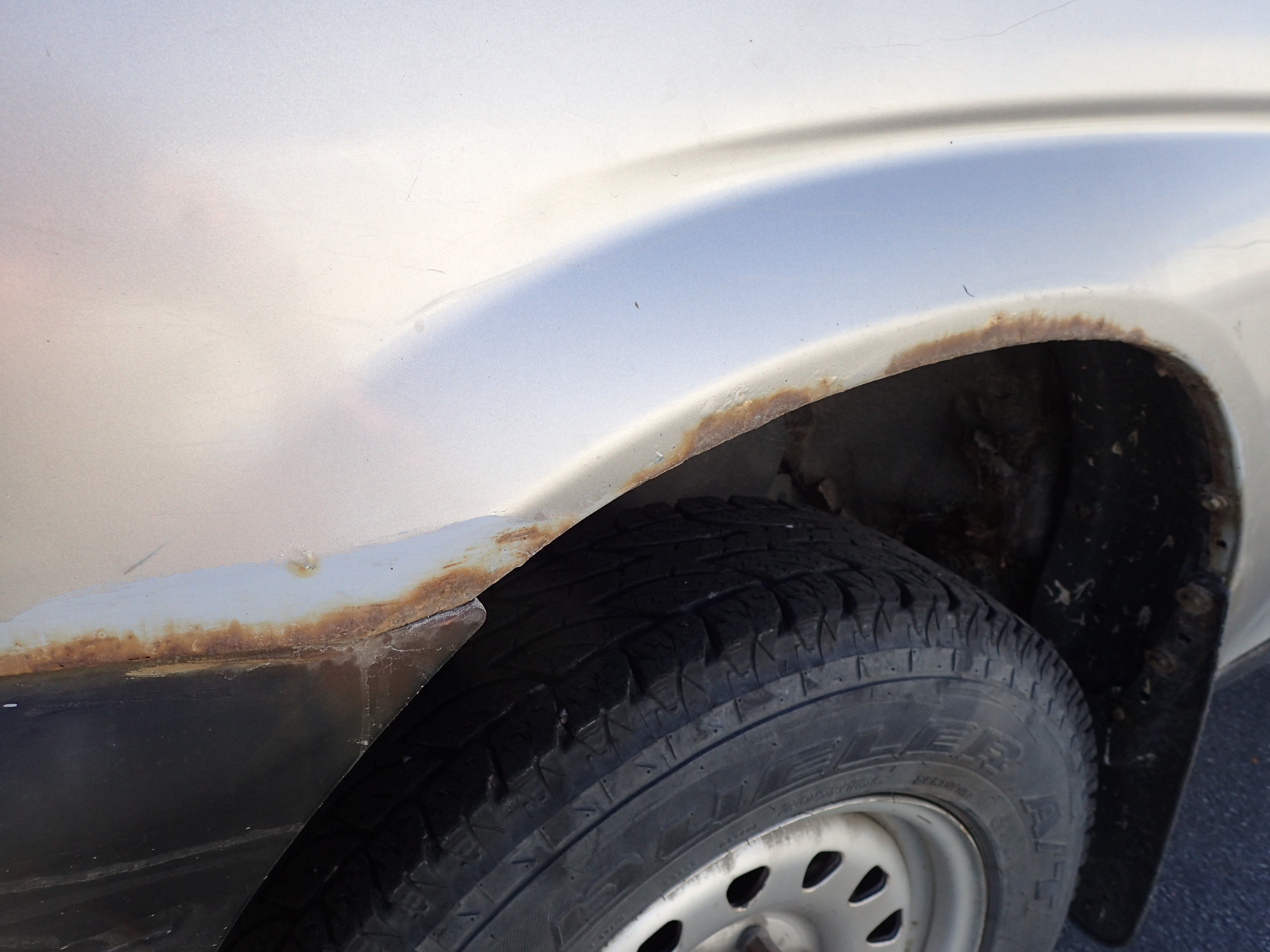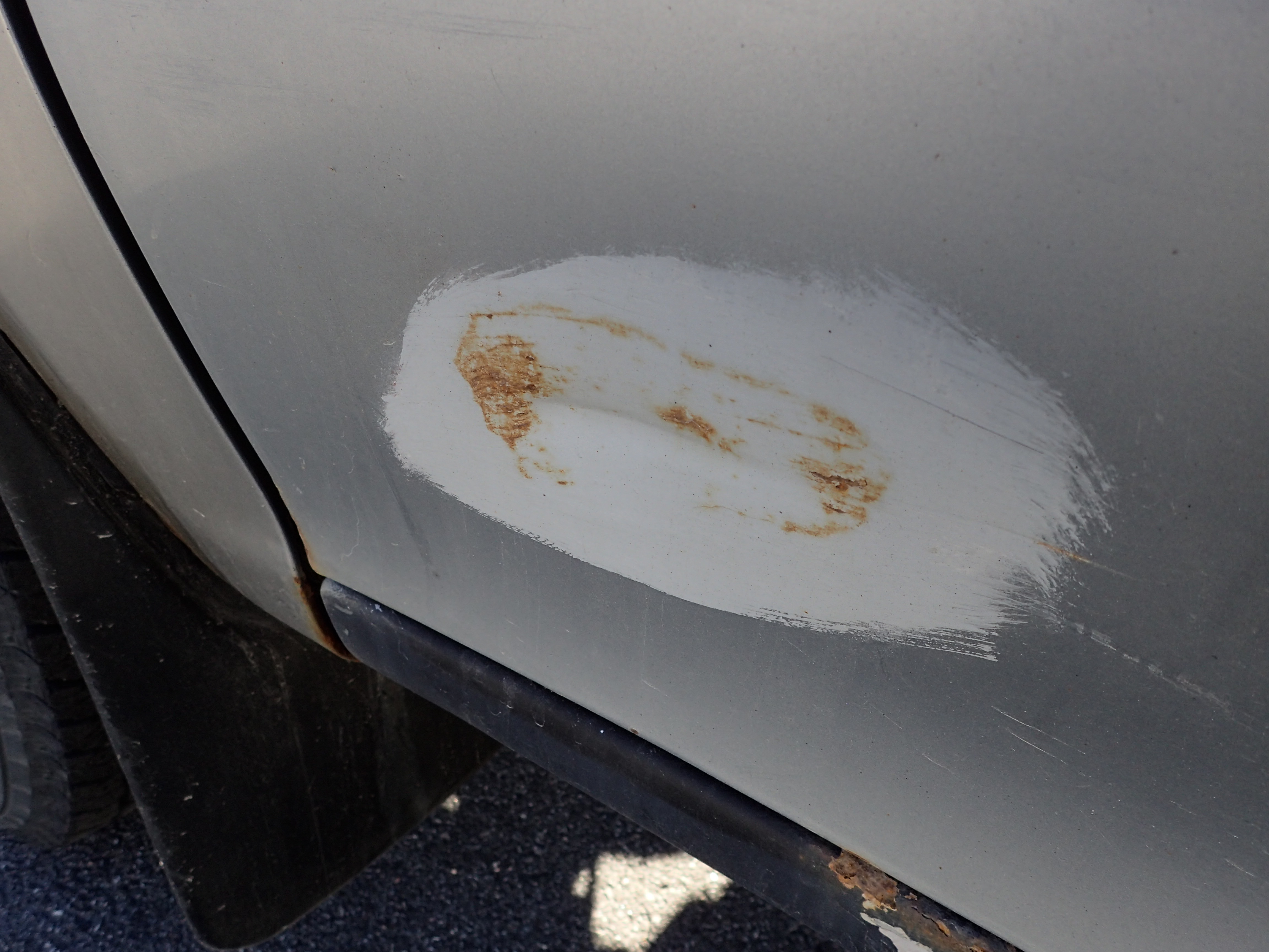The car has surface rust / rust, stone chips, dents on the car.