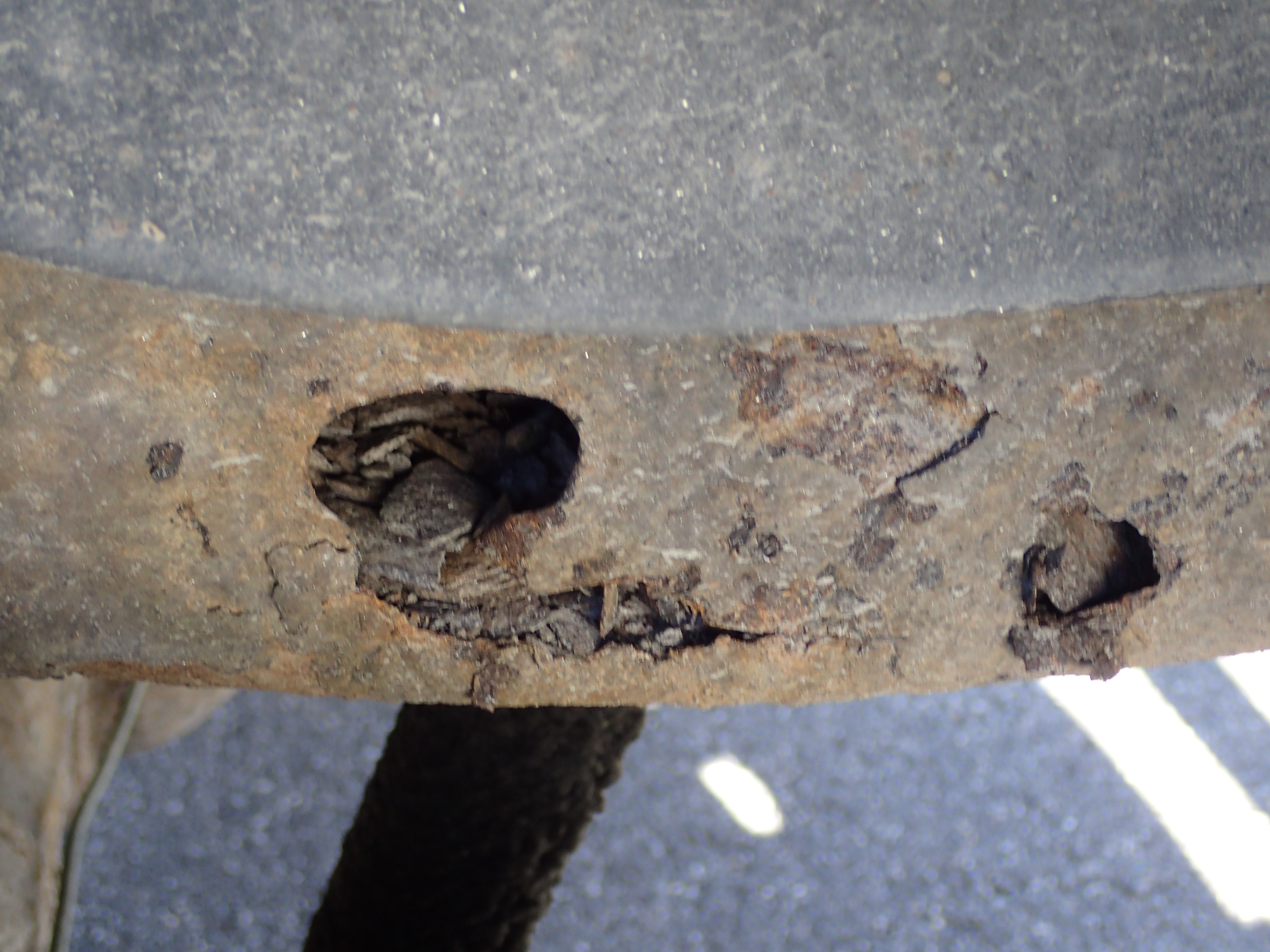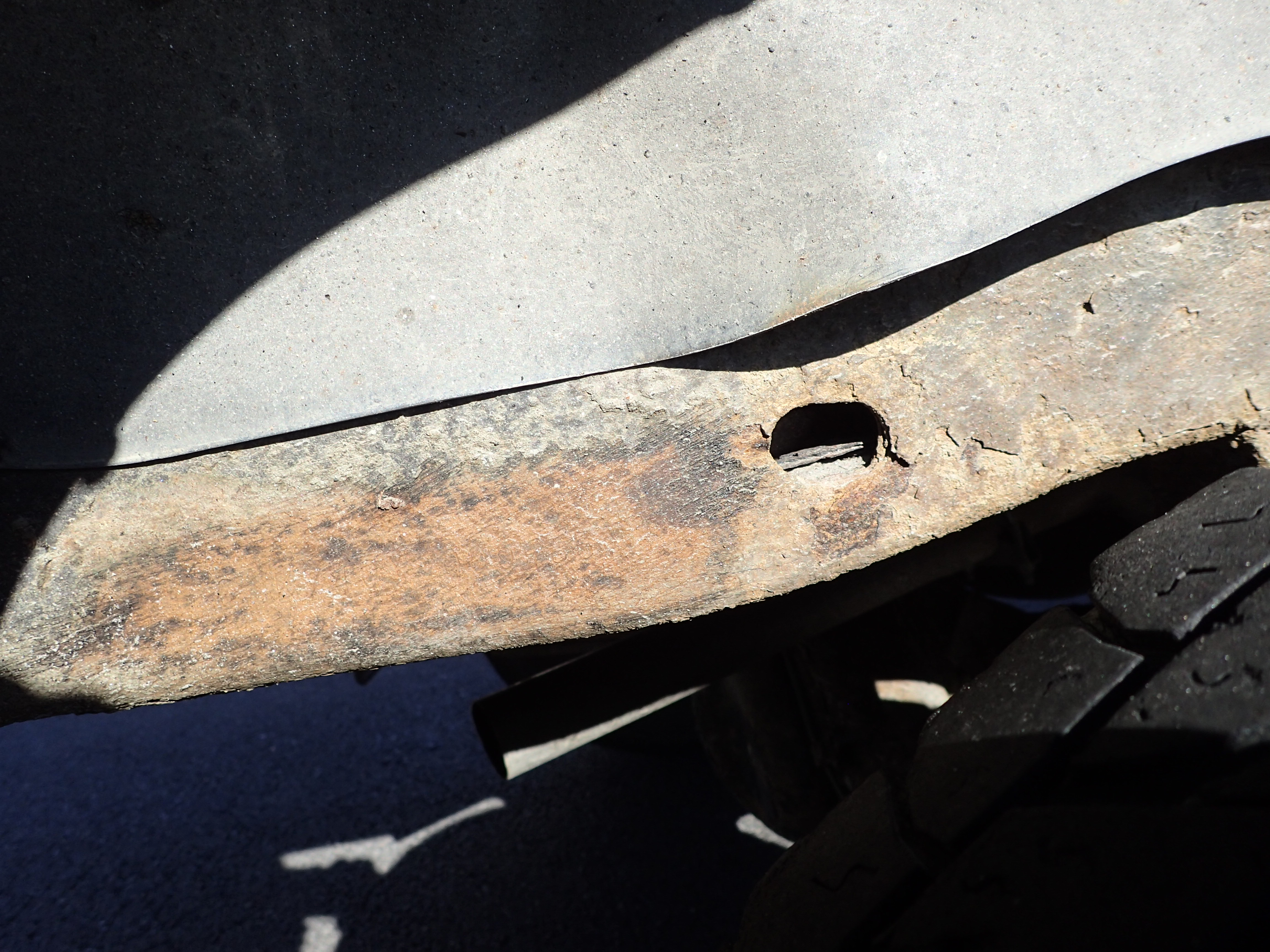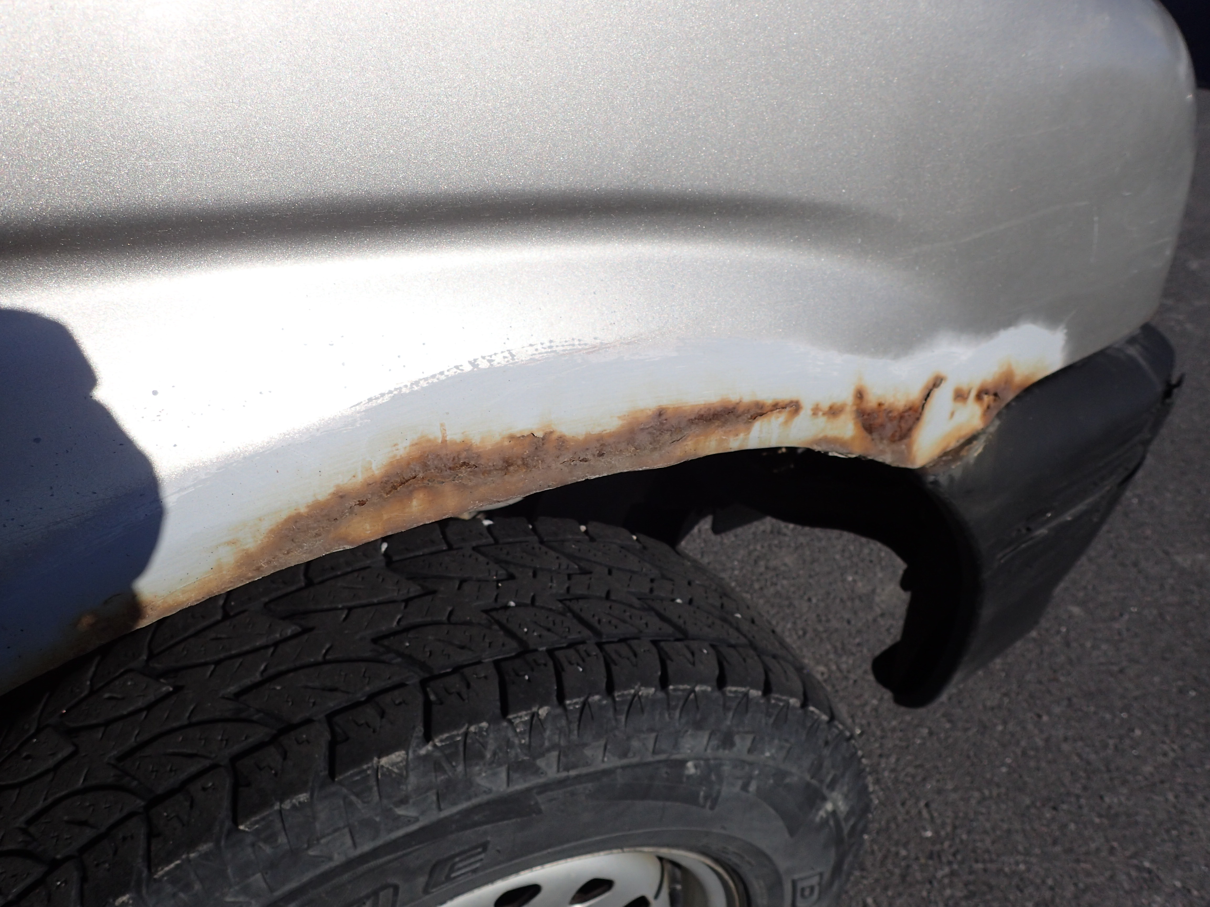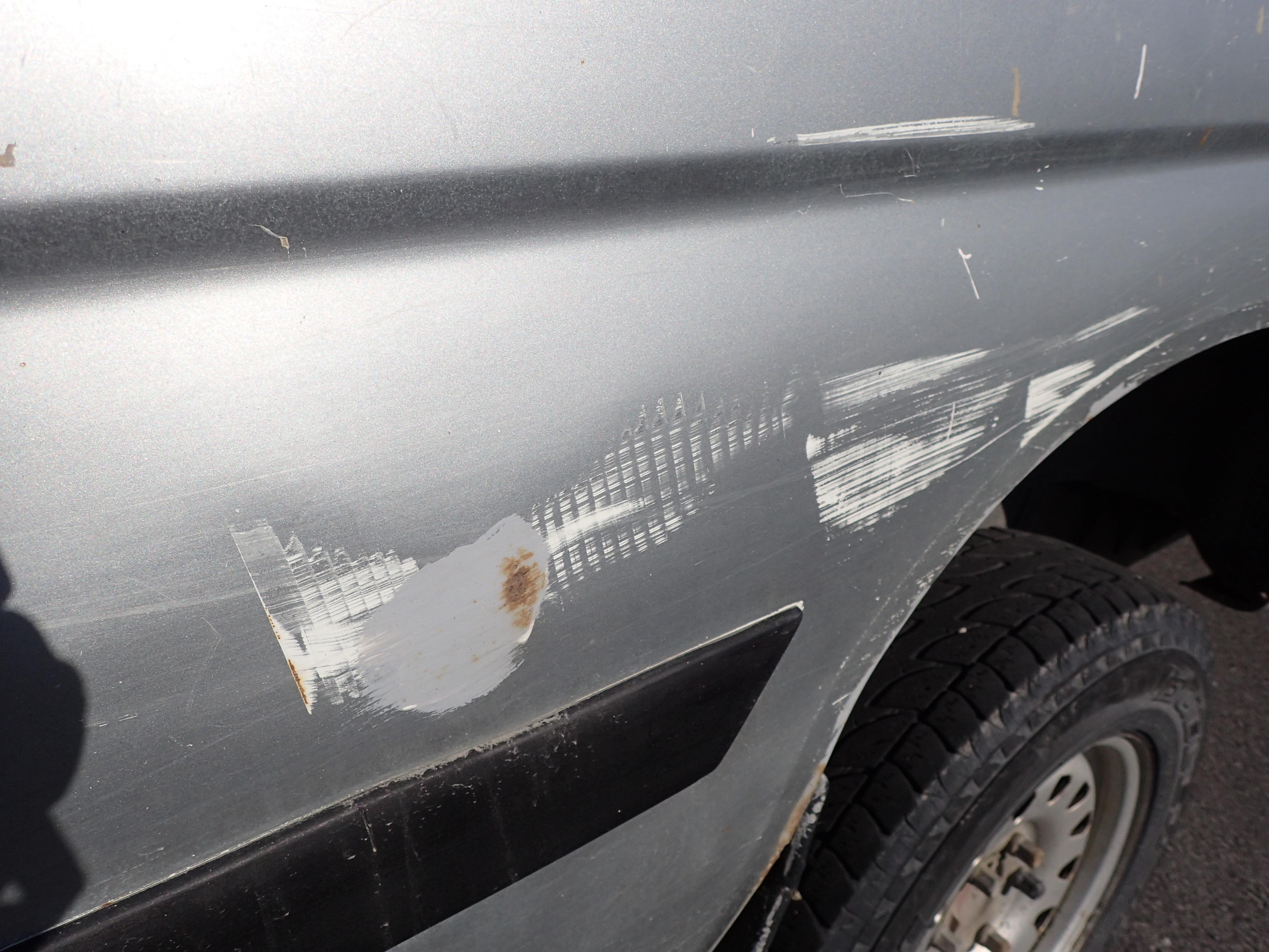 The car has surface rust / rust, stone chips, dents on the car.