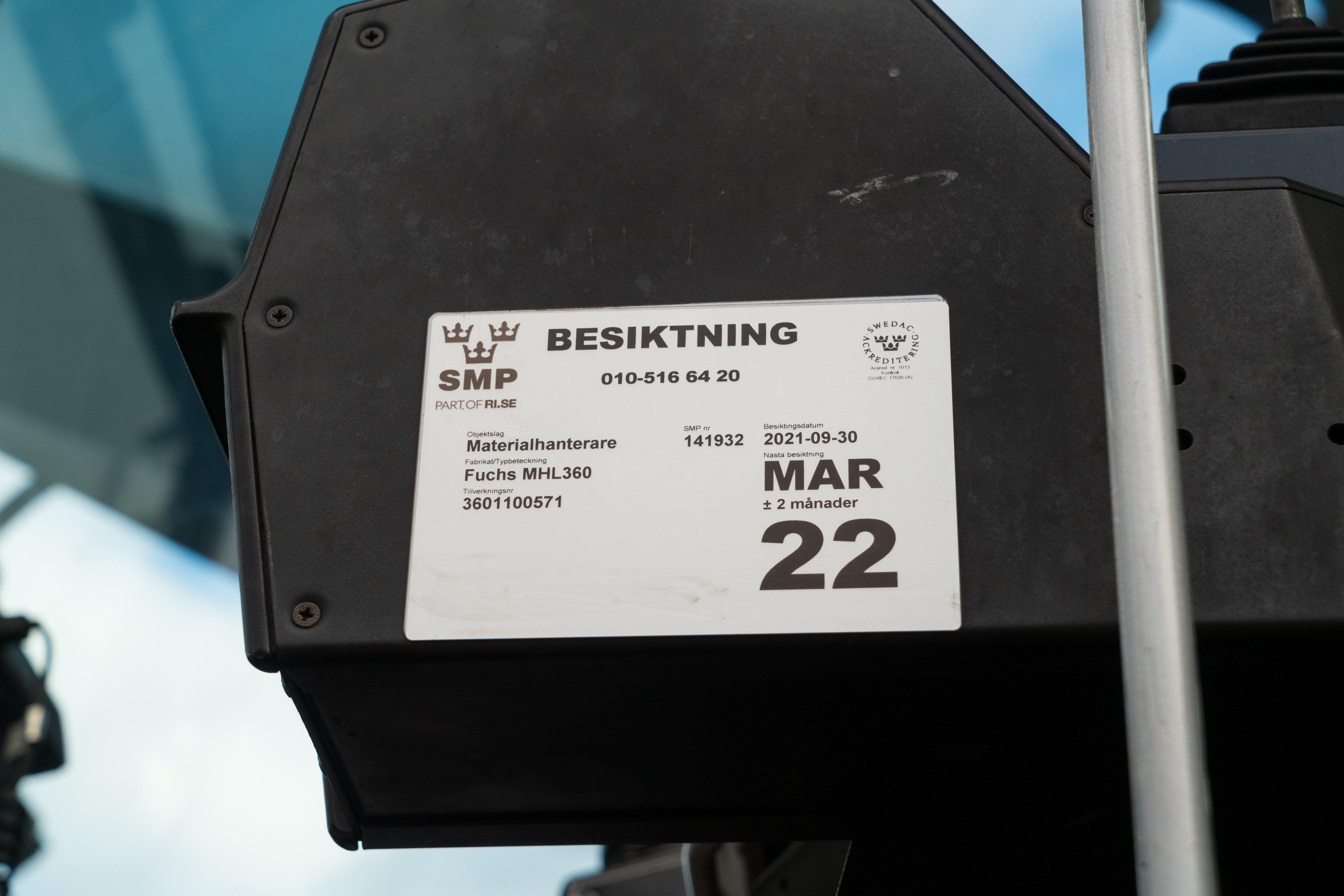 Newly inspected by SMP 2021-09-30, valid 1 year.