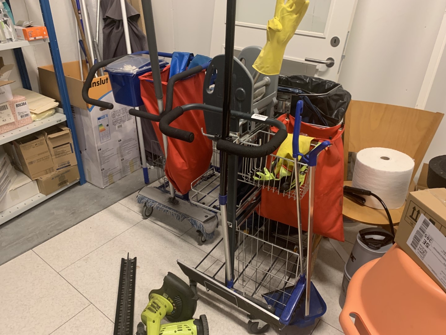 2 cleaning carts.