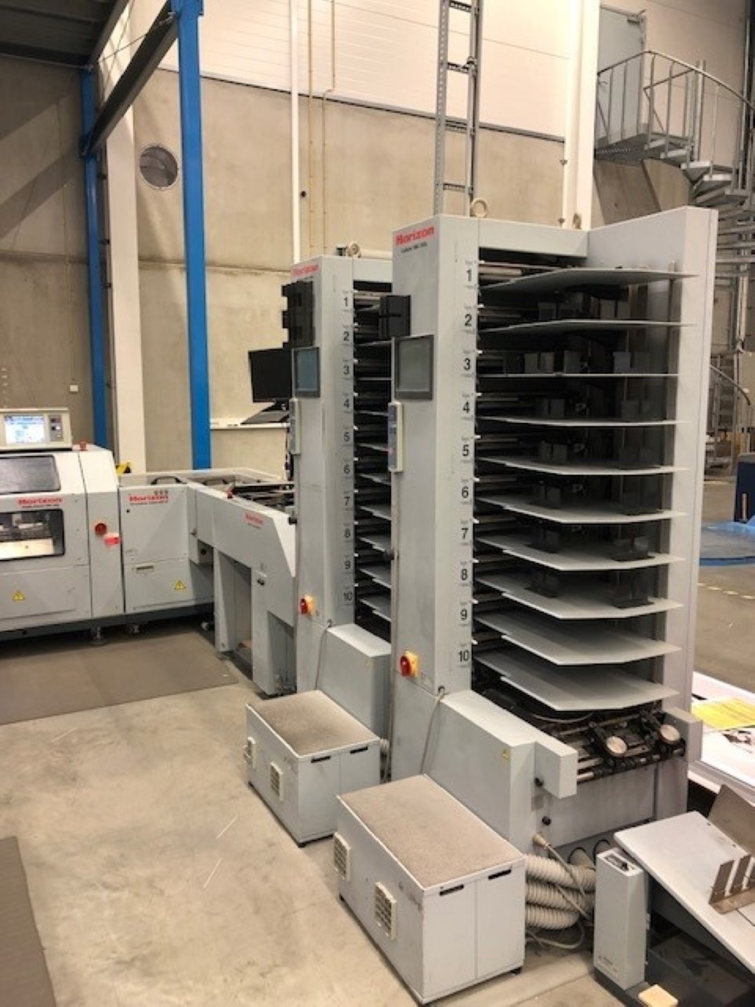 Contains parts such as: Three-knife Trimmer HTS-30S, Saddle Sticher SPF-30S, Accumulator / Folder ACF-30, Sheet Feeder HOF-30, Collator VAC-100a.
