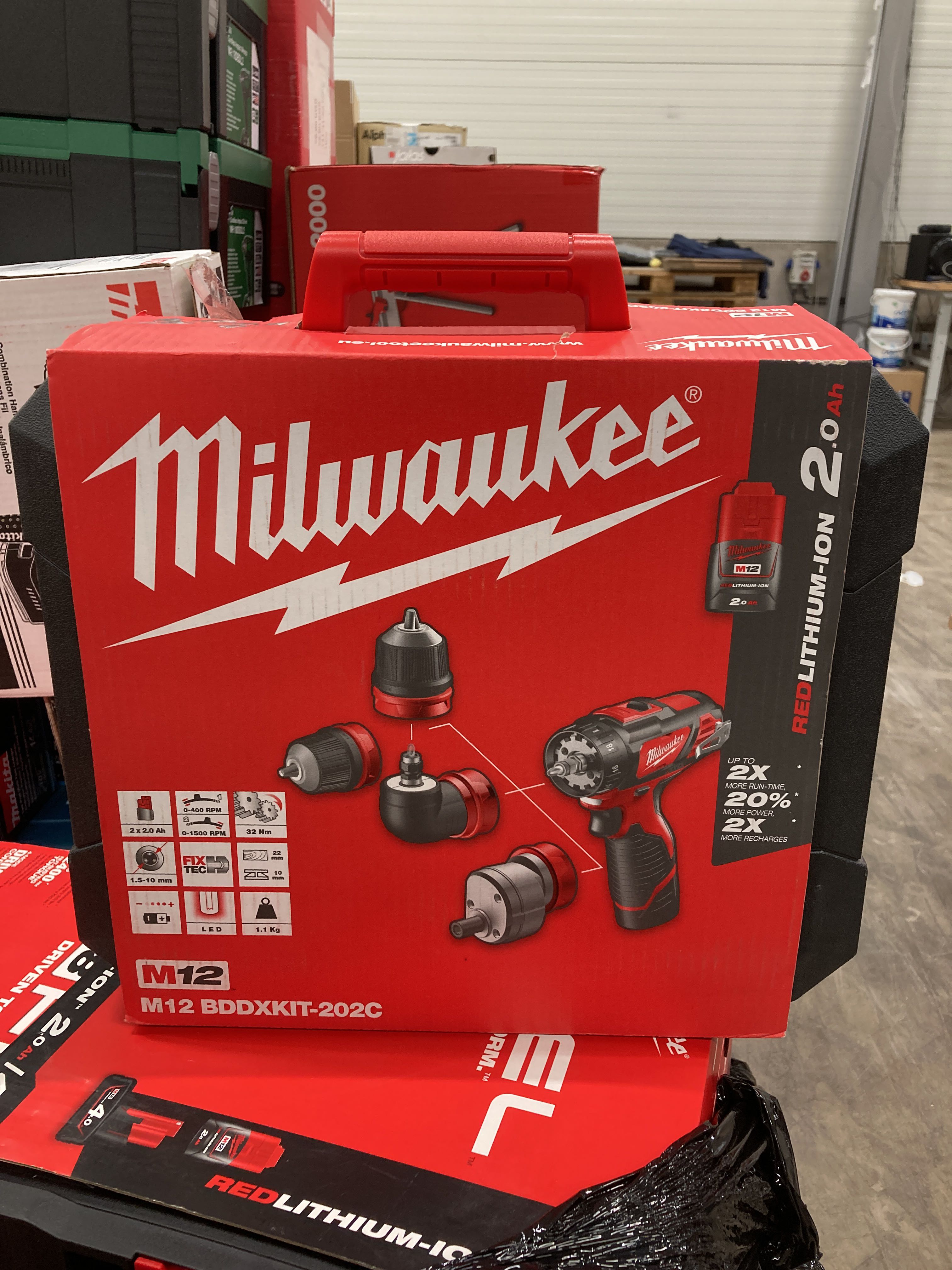 Drill screwdriver of 12V with detachable chuck, torque mode in 21 steps and 2 speeds. Torque of 32Nm and up to 1500 rpm.