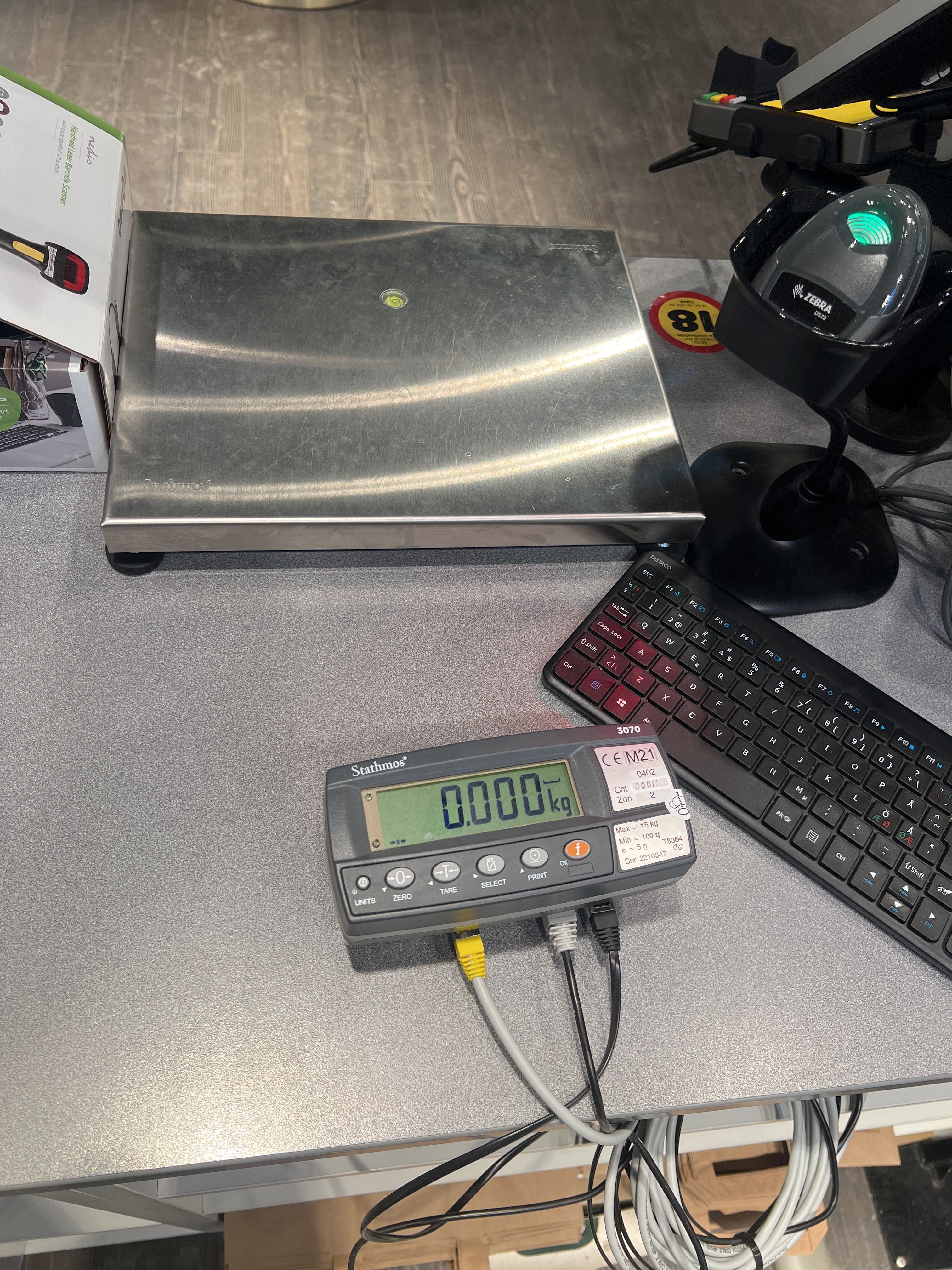 - Receipt printer and extra scanner included.
