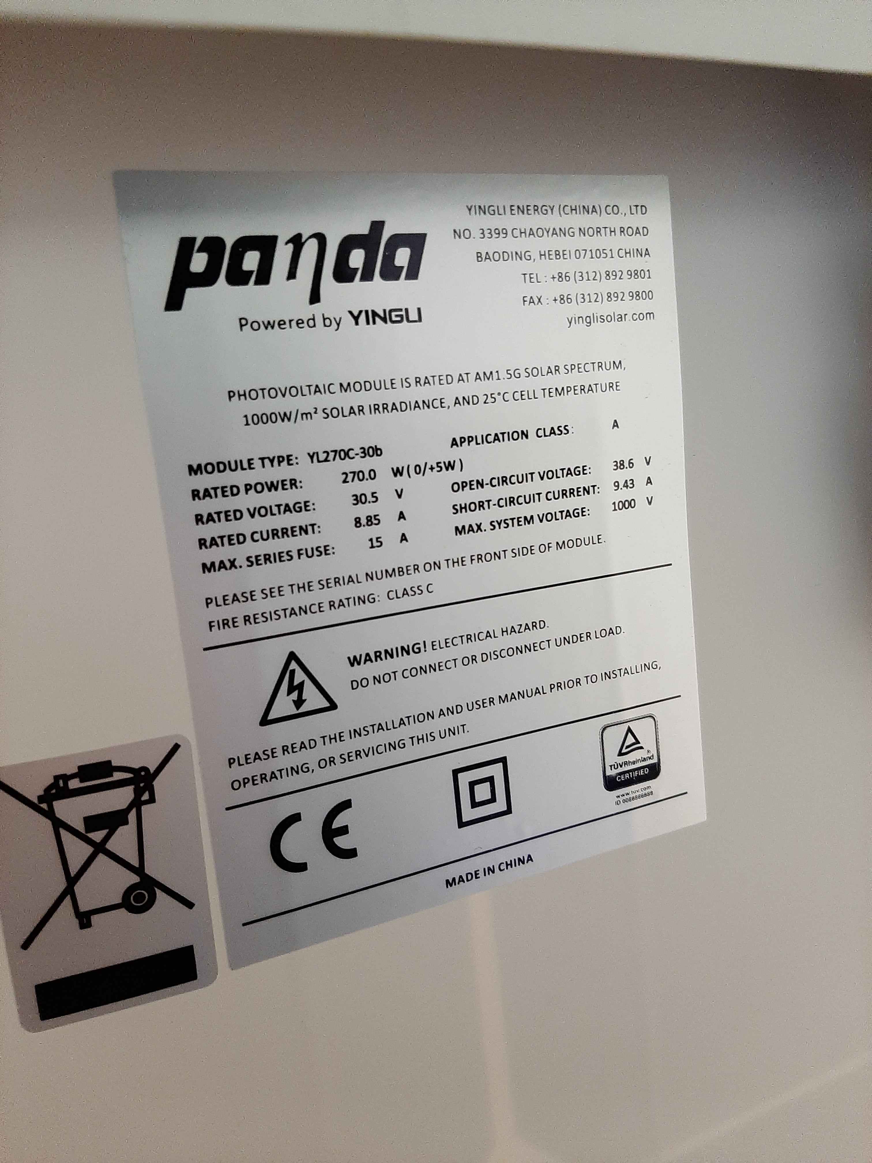 Solar panels Panda YL270C-30b.