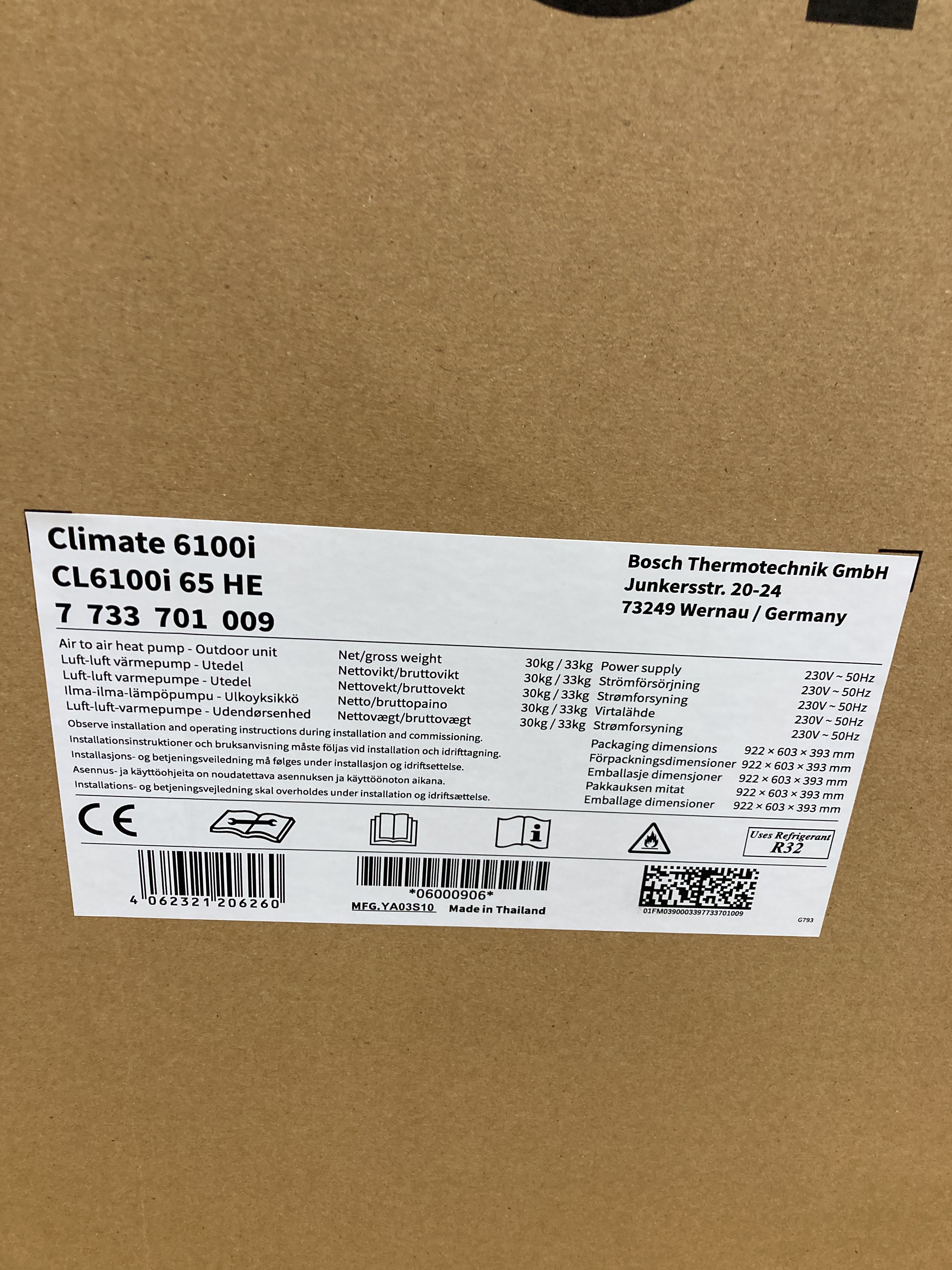Height outdoor unit: 540 mm