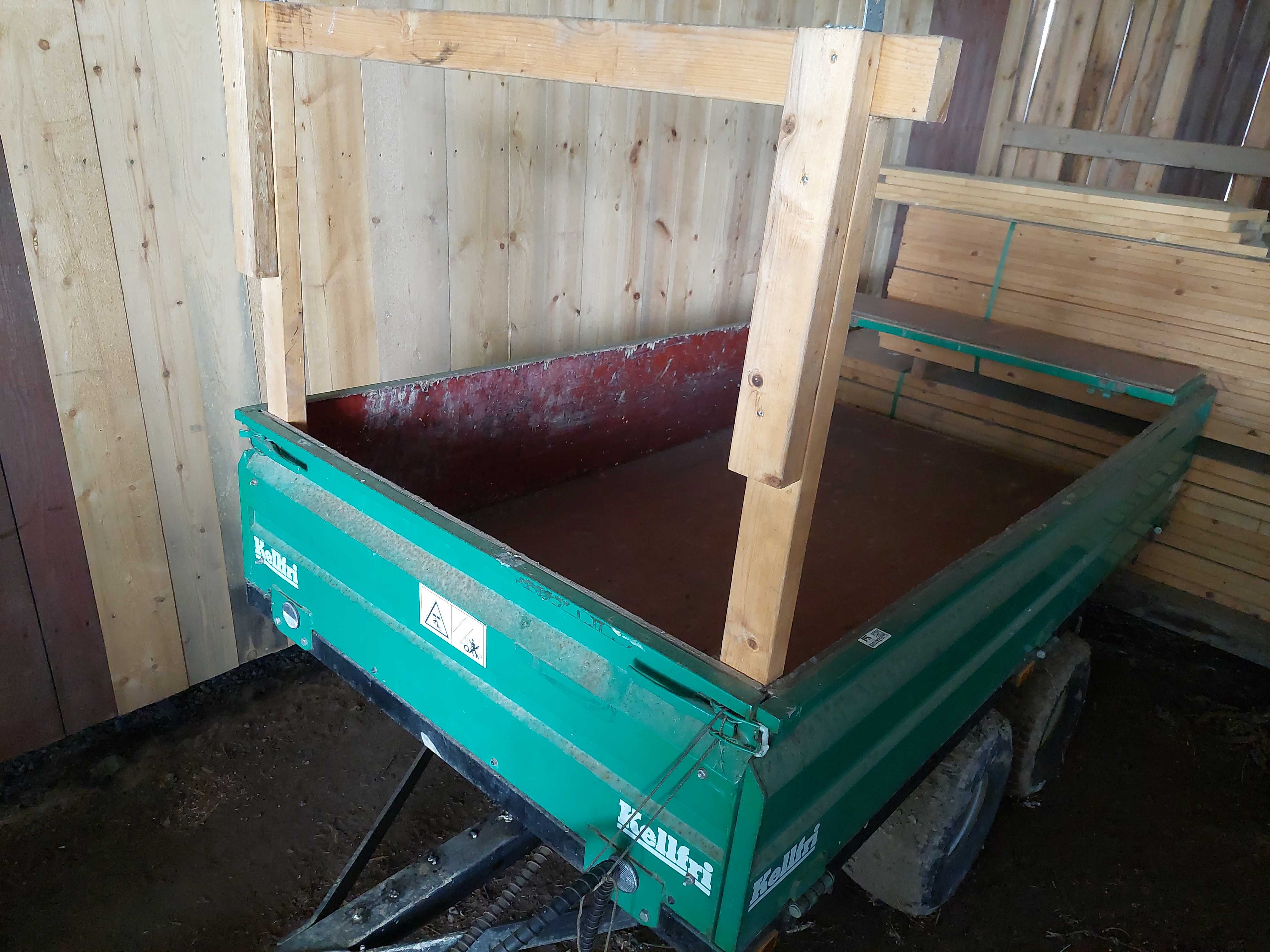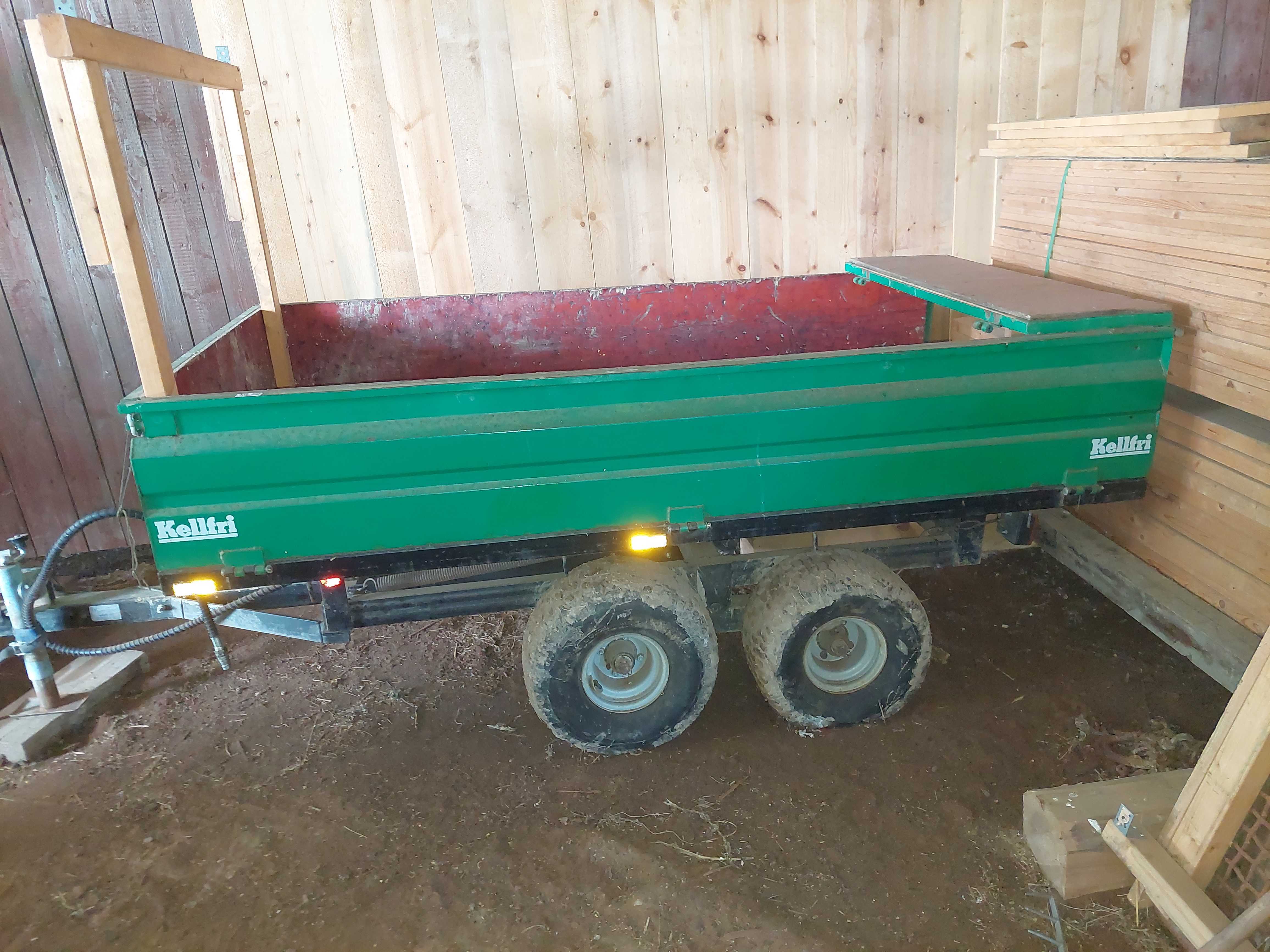 The TV25 is equipped with real brakes and, with the right towing vehicle, can drive at 80 km/h. The bed of the tipper trailer can be tipped to facilitate loading and unloading. The tires used on the Kellfri TV25 are of the type 20x10-8 which are 20 inches wide and have a rim diameter of 8 inches which corresponds to 203 mm.