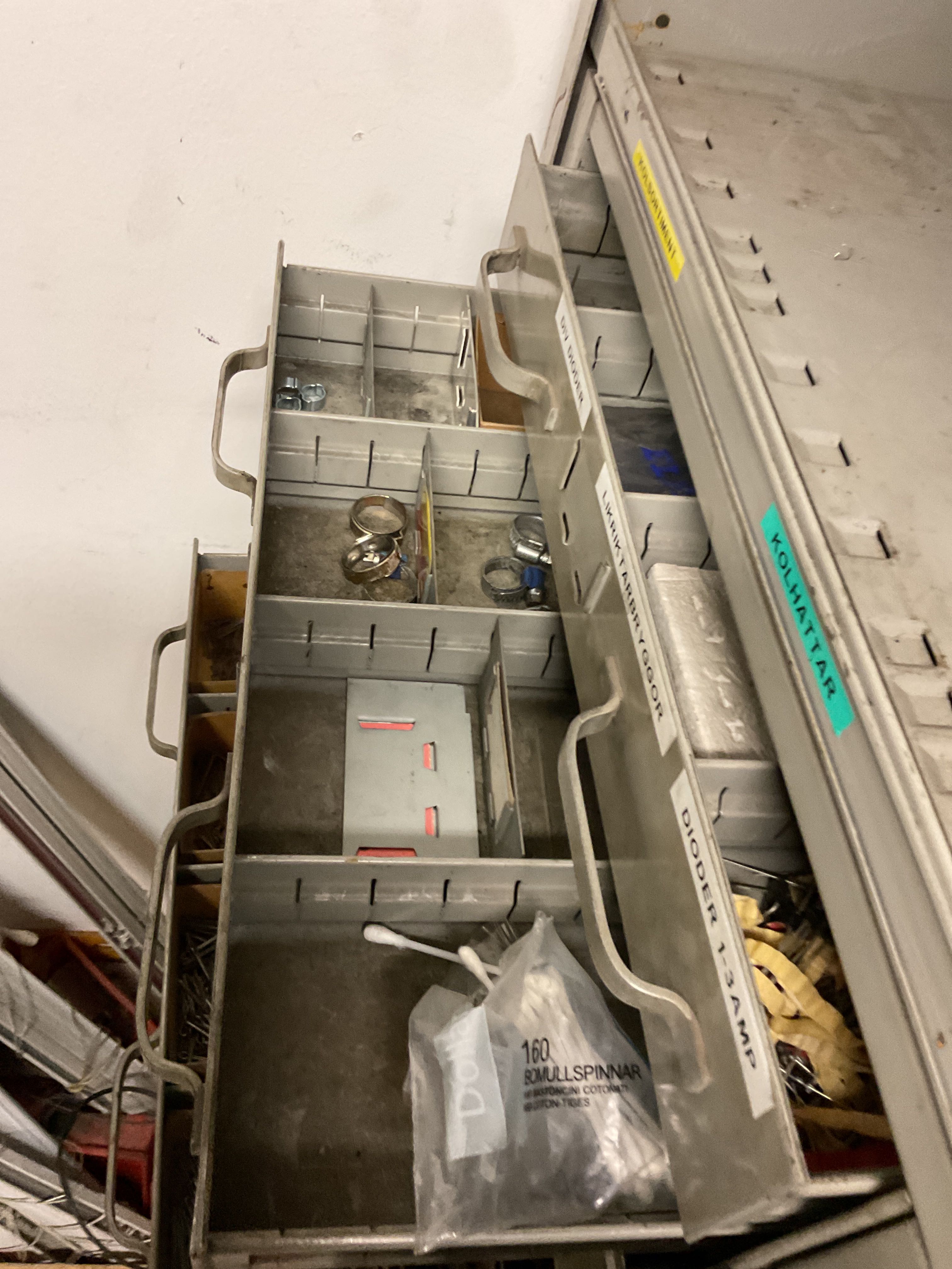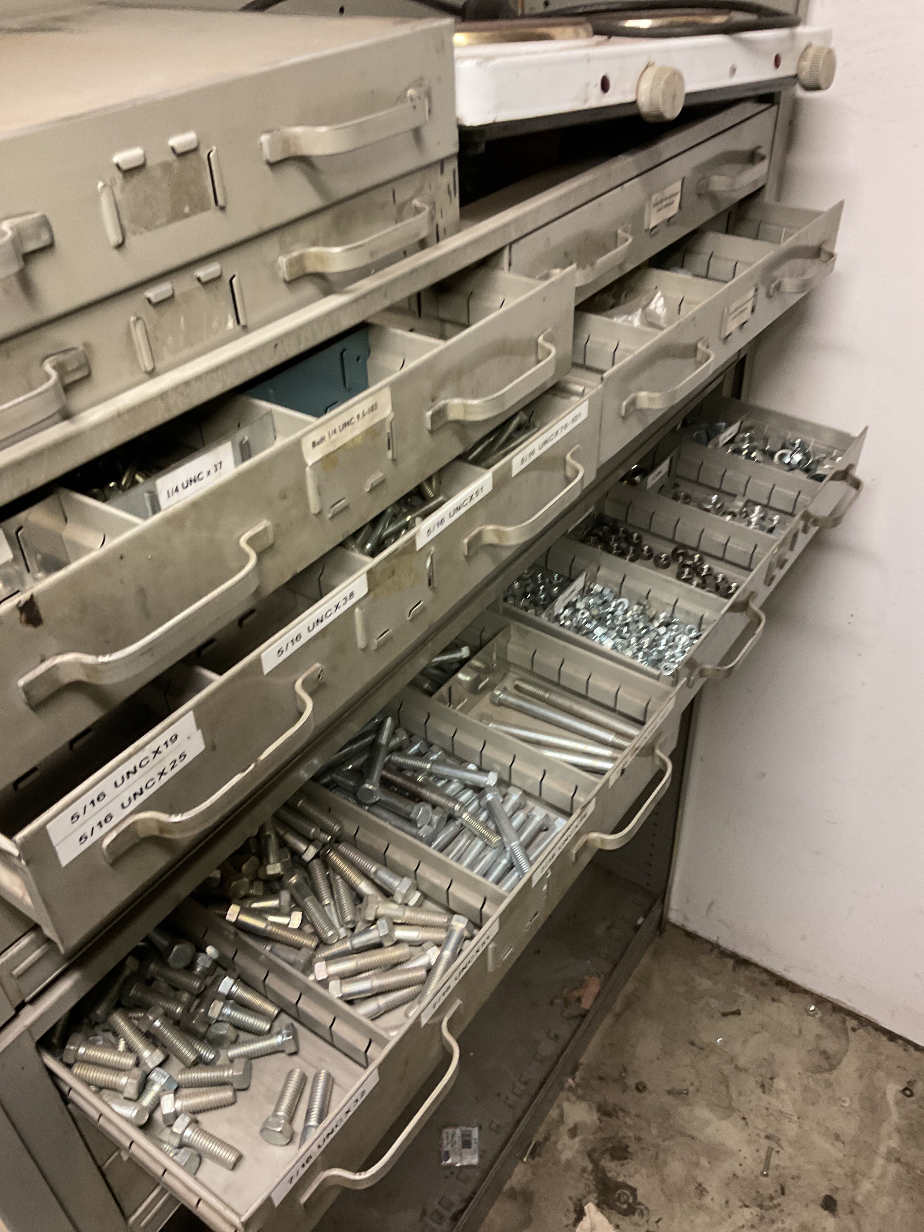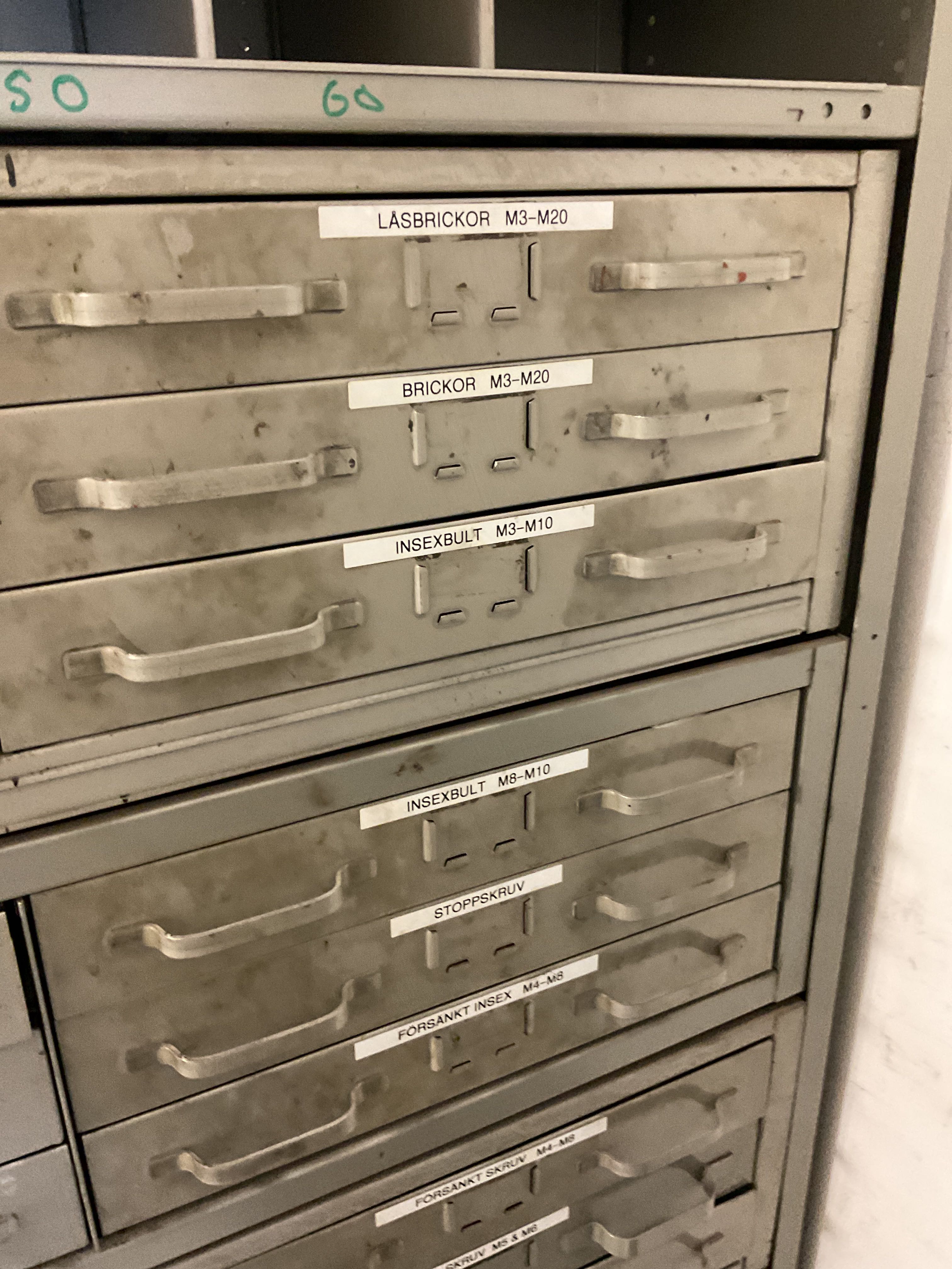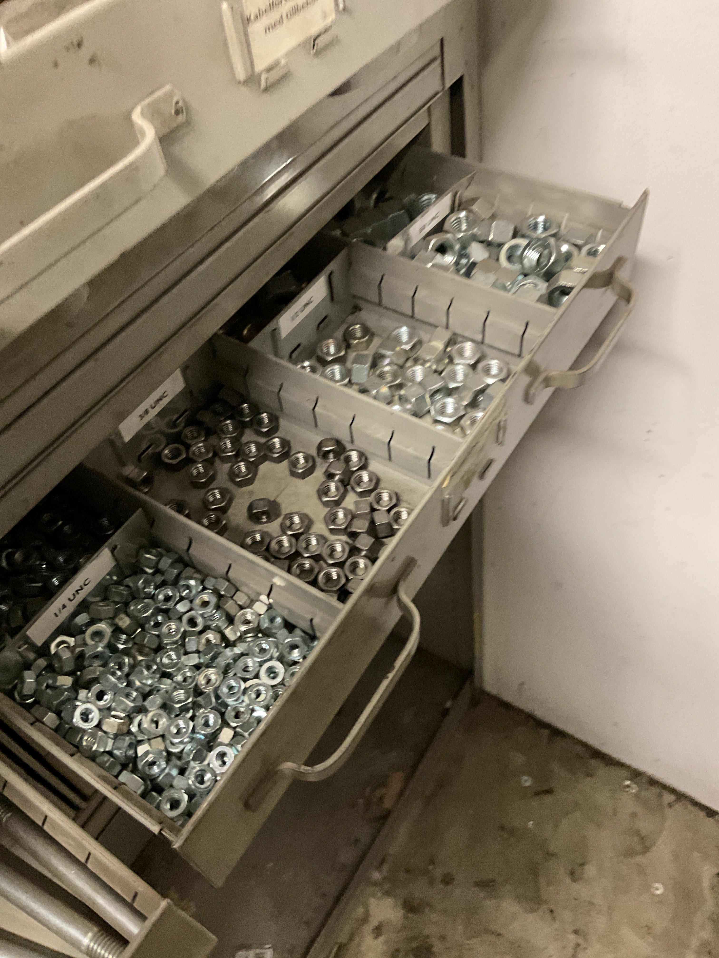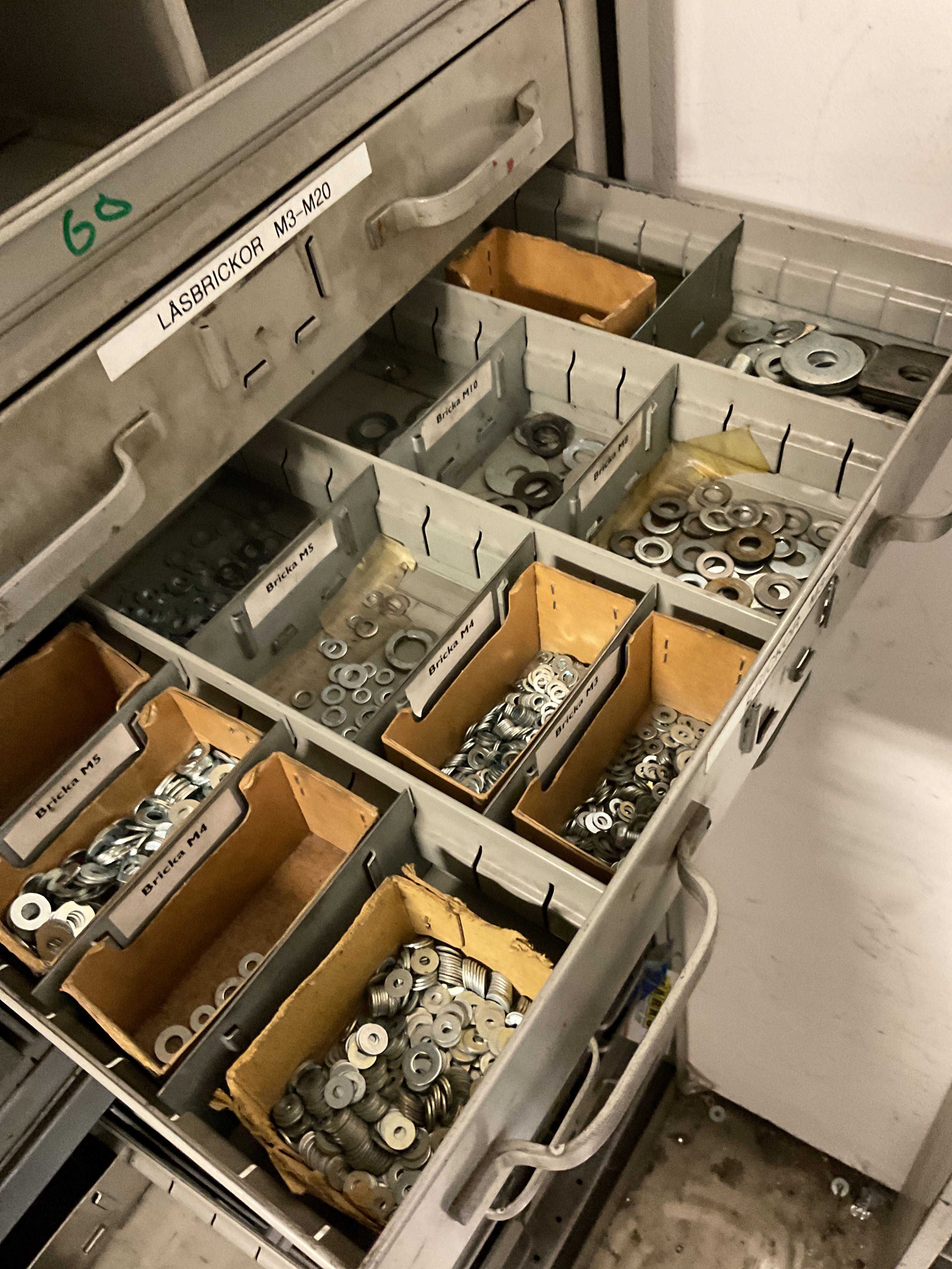 Various cabinets with screw assortment