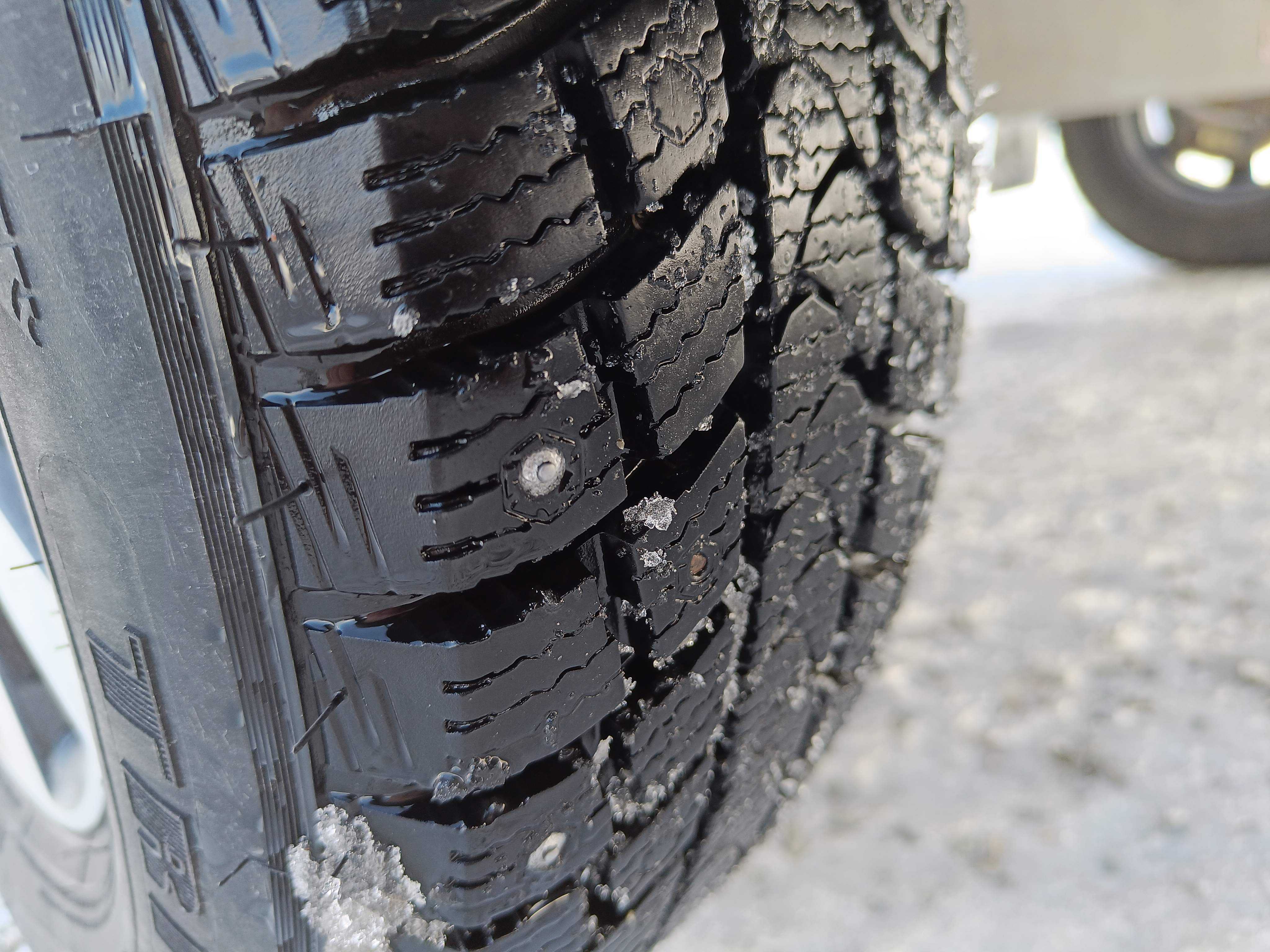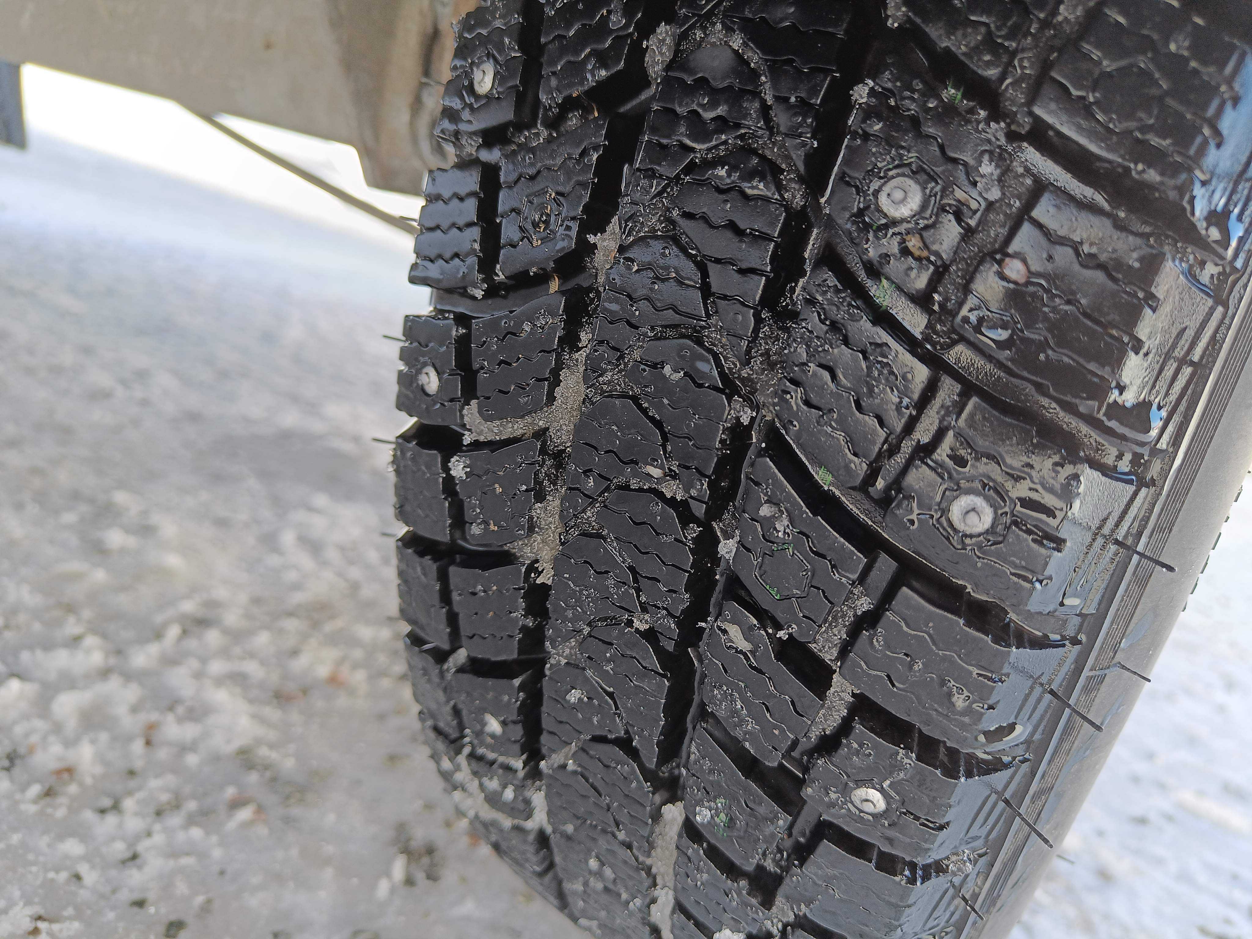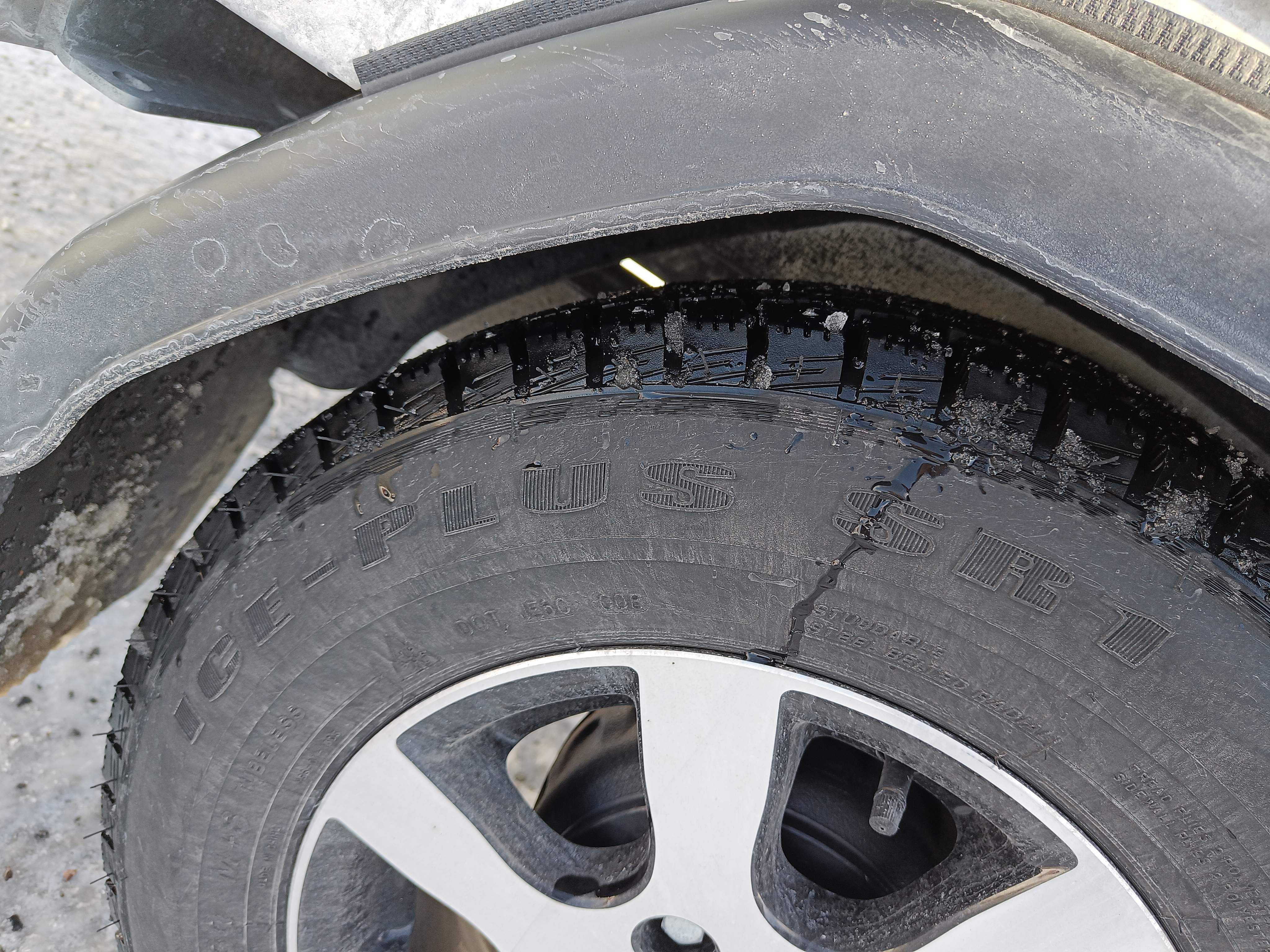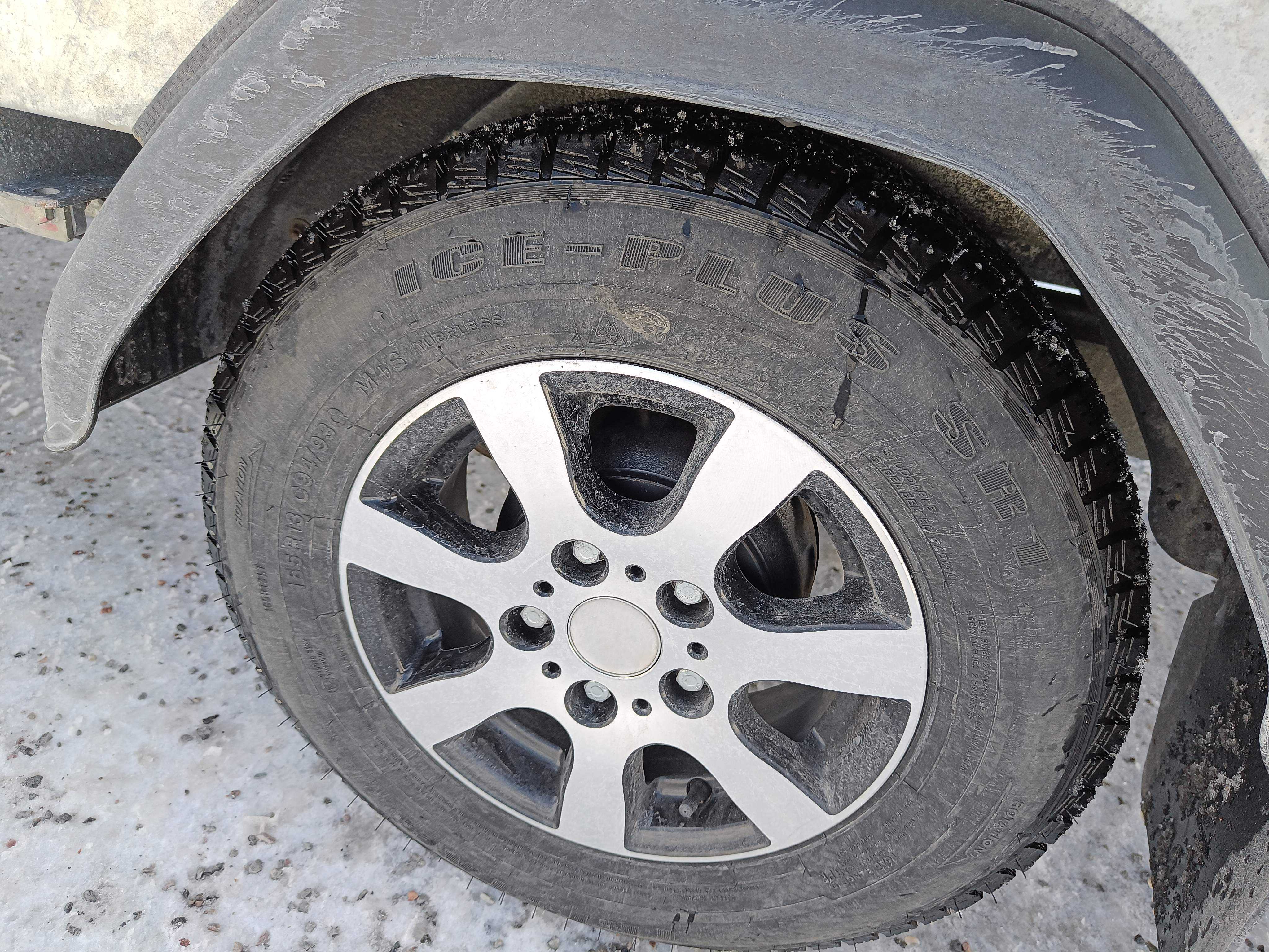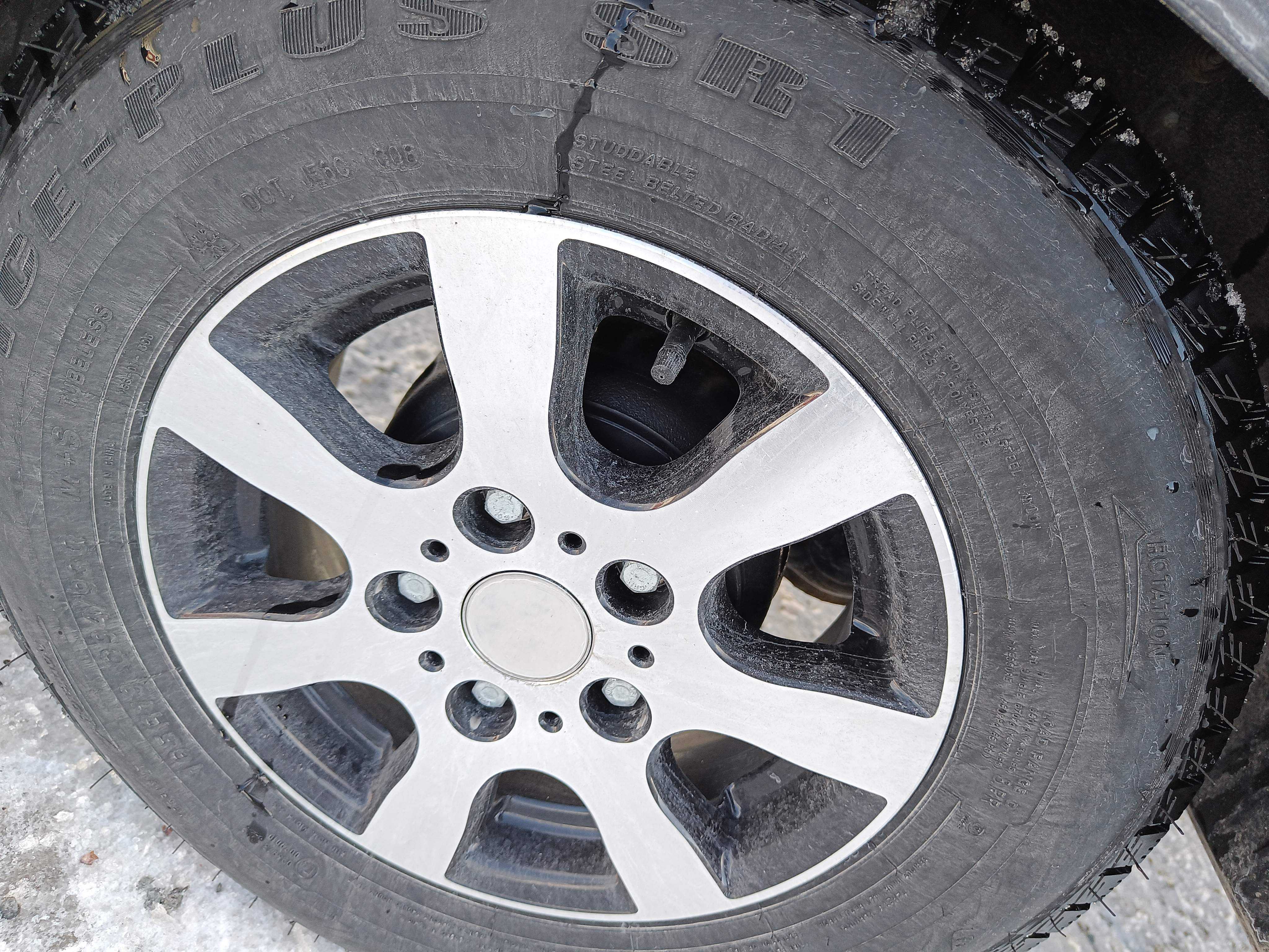 Stands on fresh winter tires on aluminum rims, approx. 75% tread depth remaining.