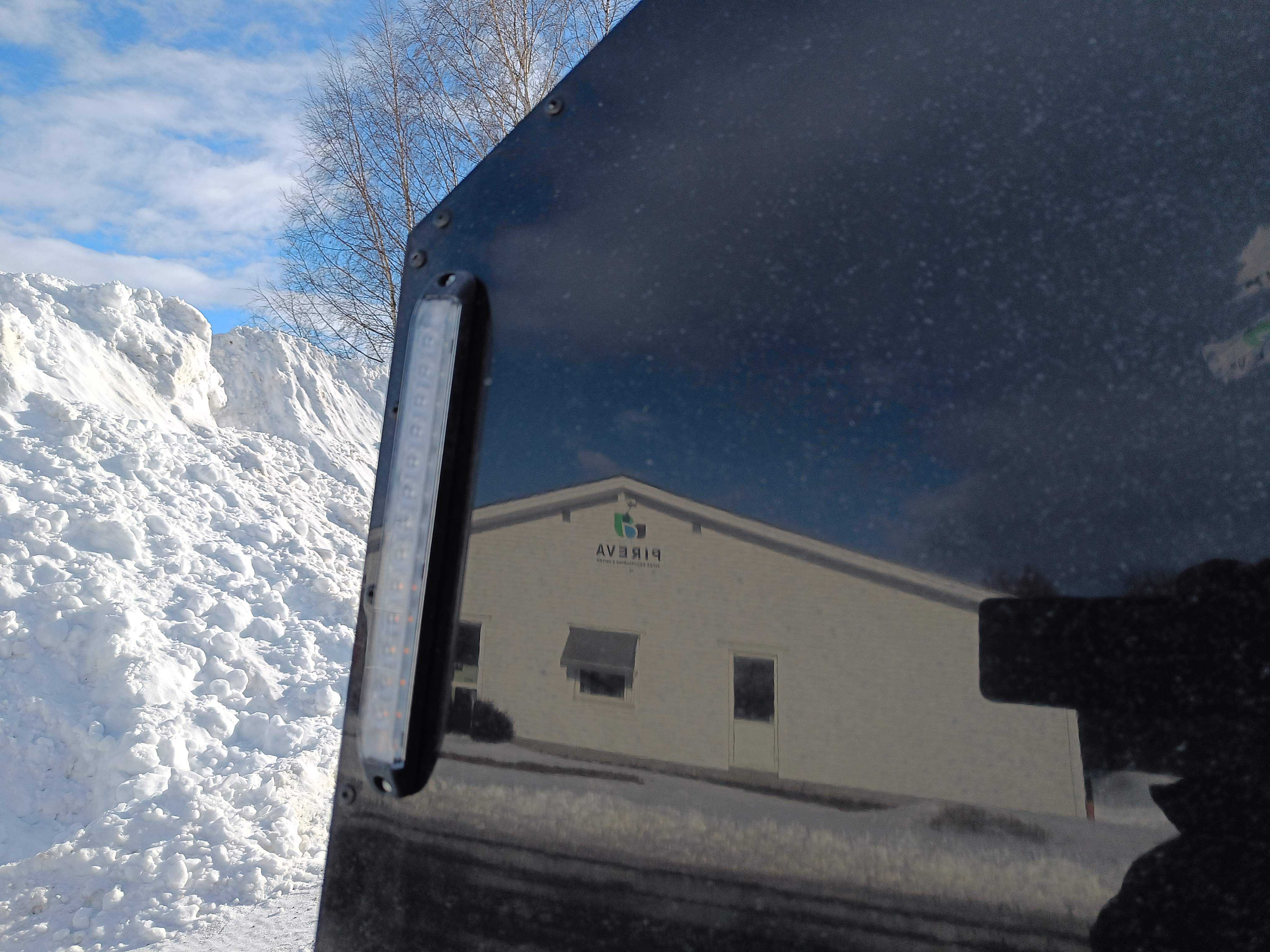 Mounted front protection in molded plastic that protects the front end against stone chips and salt.