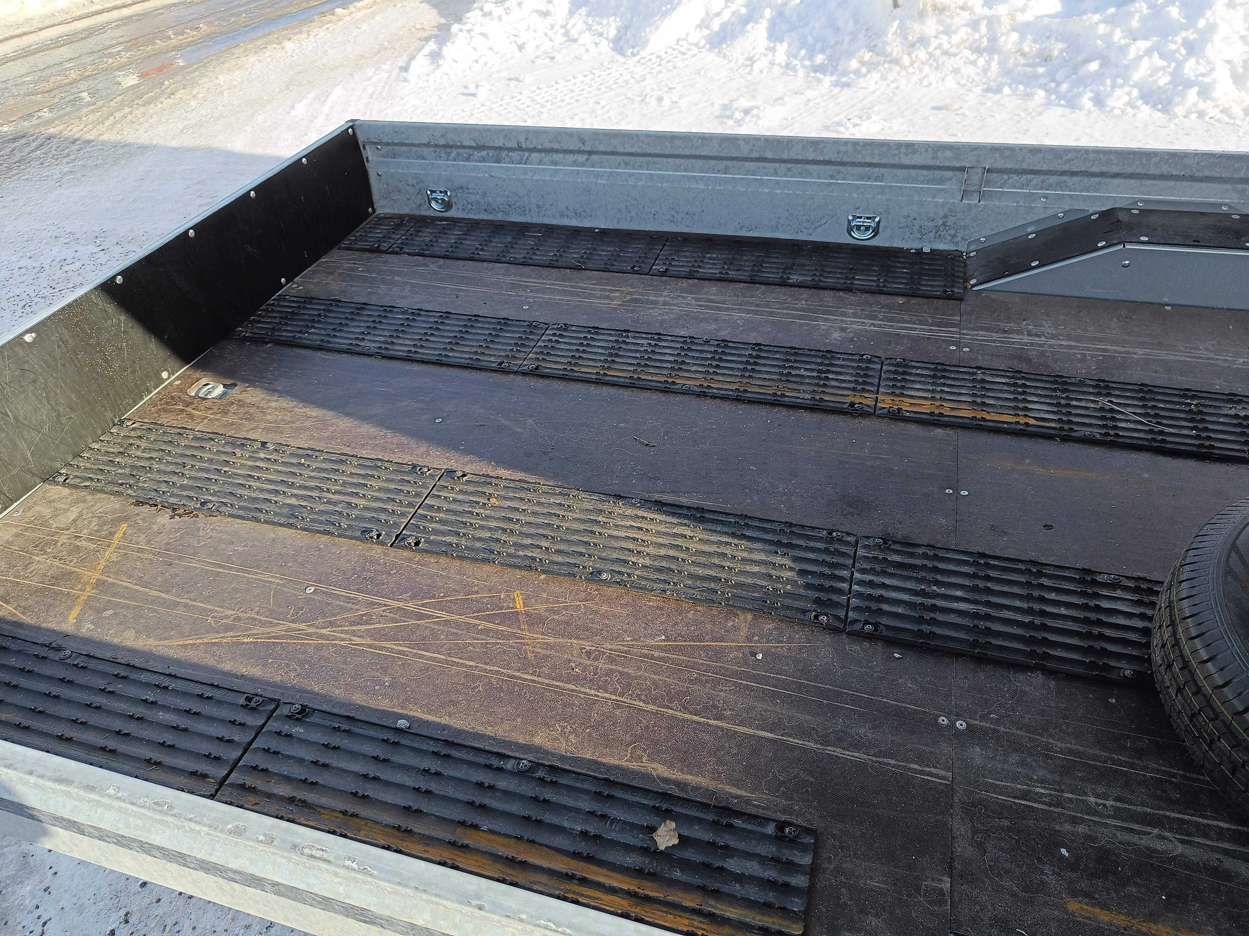 The wheels of the S1945 Inline are moved under the bed to reduce the overall width and to track the car better. The rear flaps and the inner wheel arches are covered with low-friction material, the flatbed is equipped with extra tie-down loops for easy securing of the load.