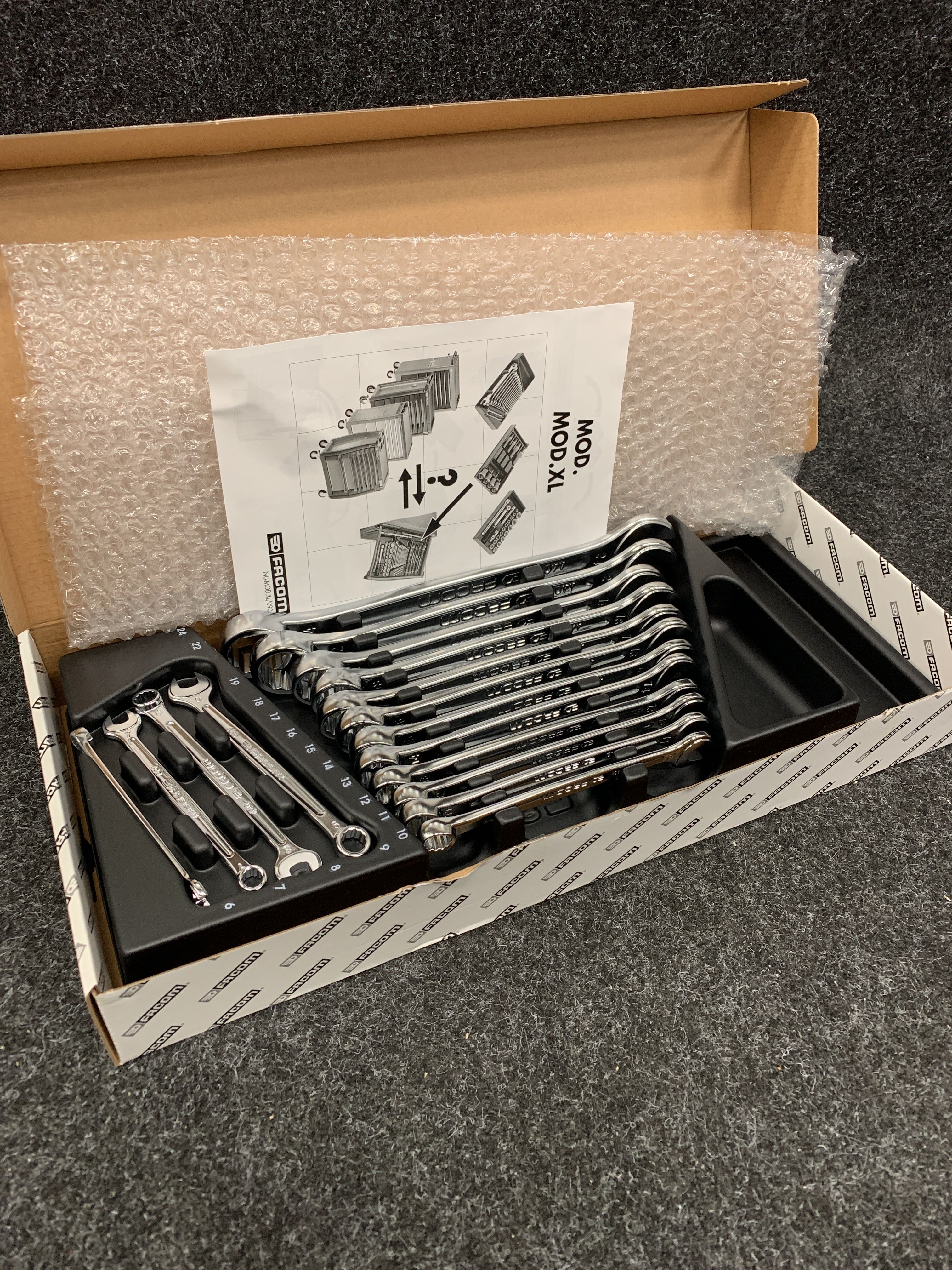 Module with 16 OGV® U-ring wrenches size 6 to 22 and 24 mm • 440. 6 - 7 - 8 - 9 - 10 - 11 - 12 - 13 - 14 - 15 - 16 - 17 - 18 - 19 - 22 - 24 mm . • Heated box PL.670. Weight: 1,790 kg.