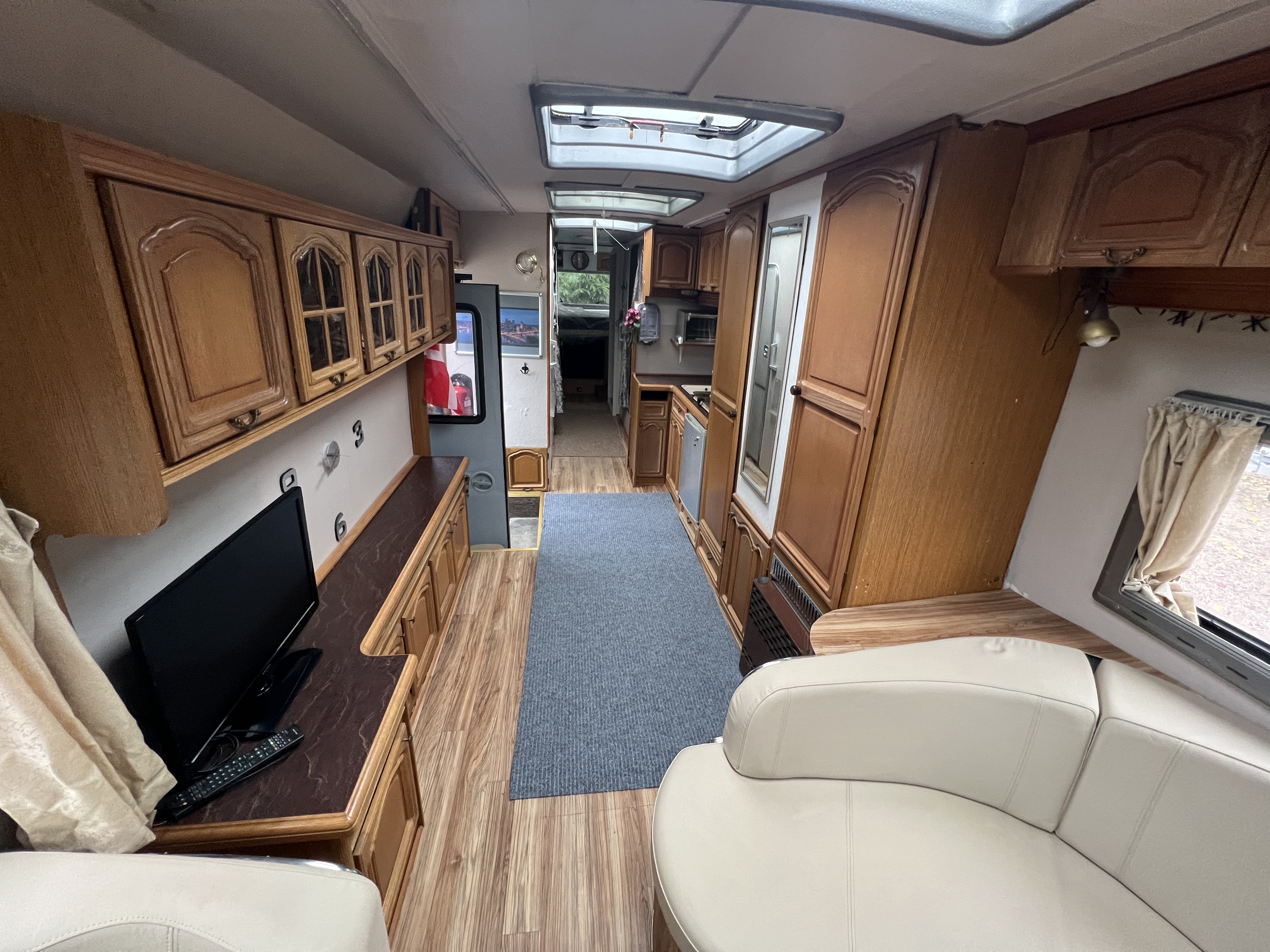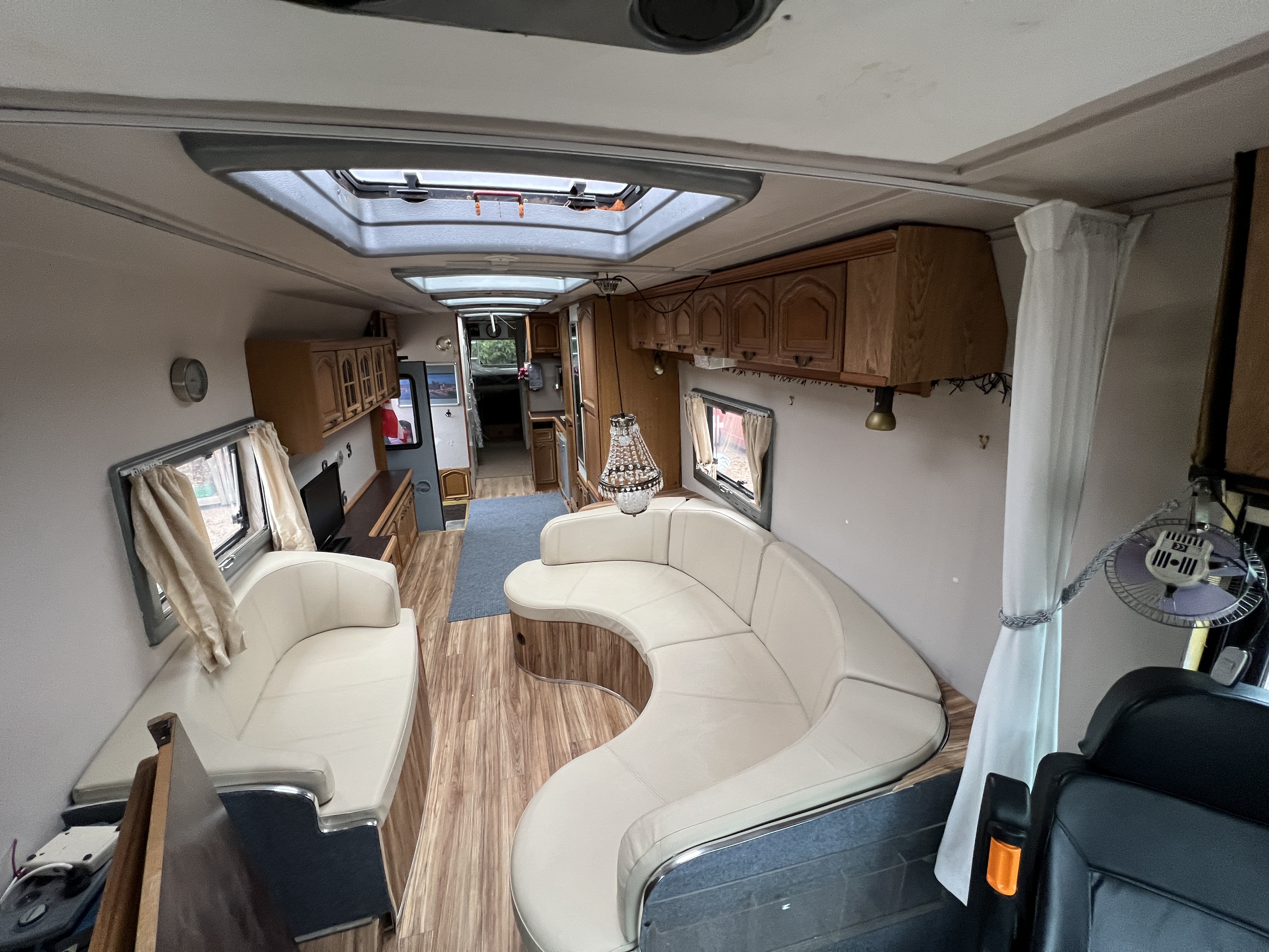 Galvanized frame, aluminum body, new battery, leather seating, 6 beds, full tank 300 liters diesel. New ignition lock included. The turbo has run a maximum of 200 miles