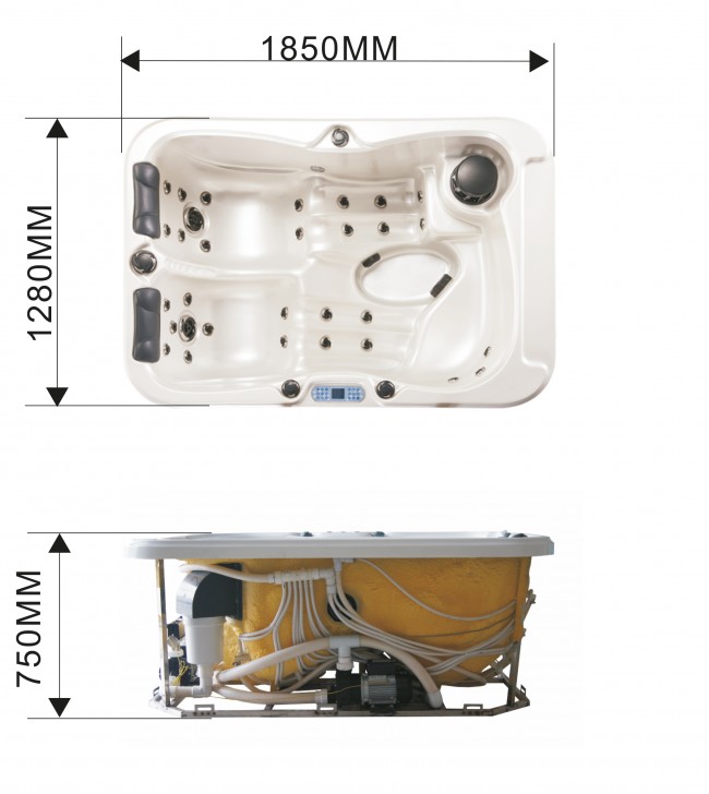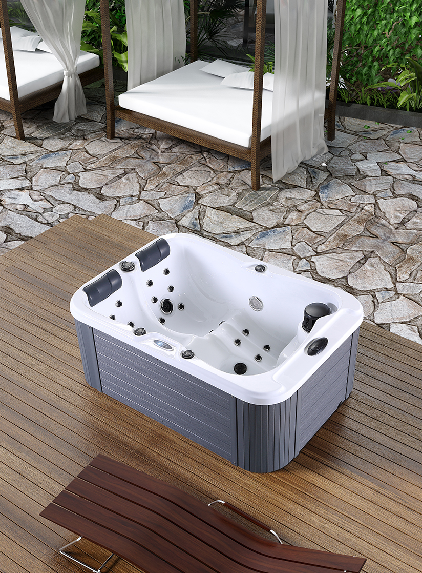 Our home spa has cotton insulation inside the skirt panel for better heat retention. The skirt is made of polystyrene, a plastic material that has high durability and stability.