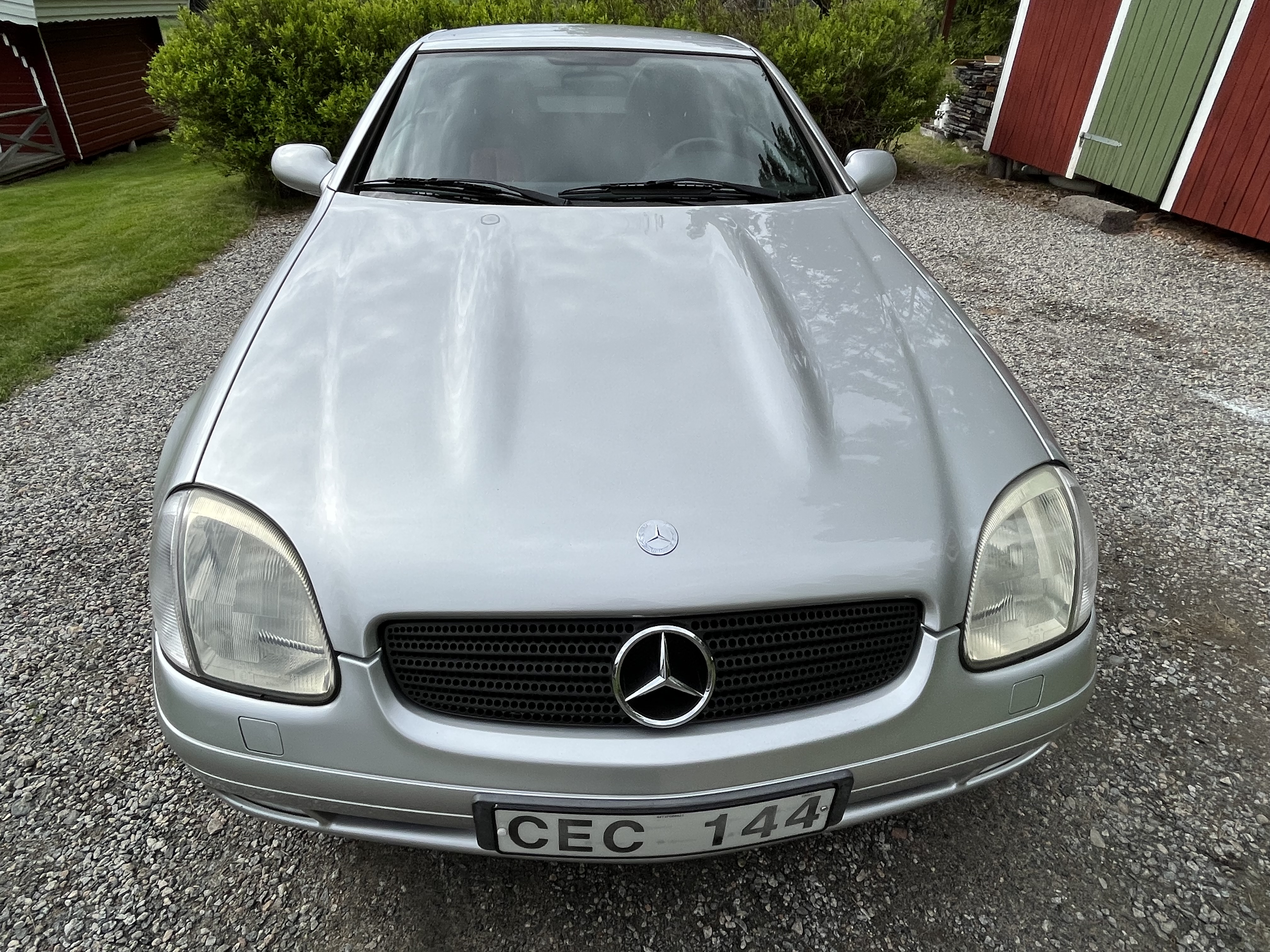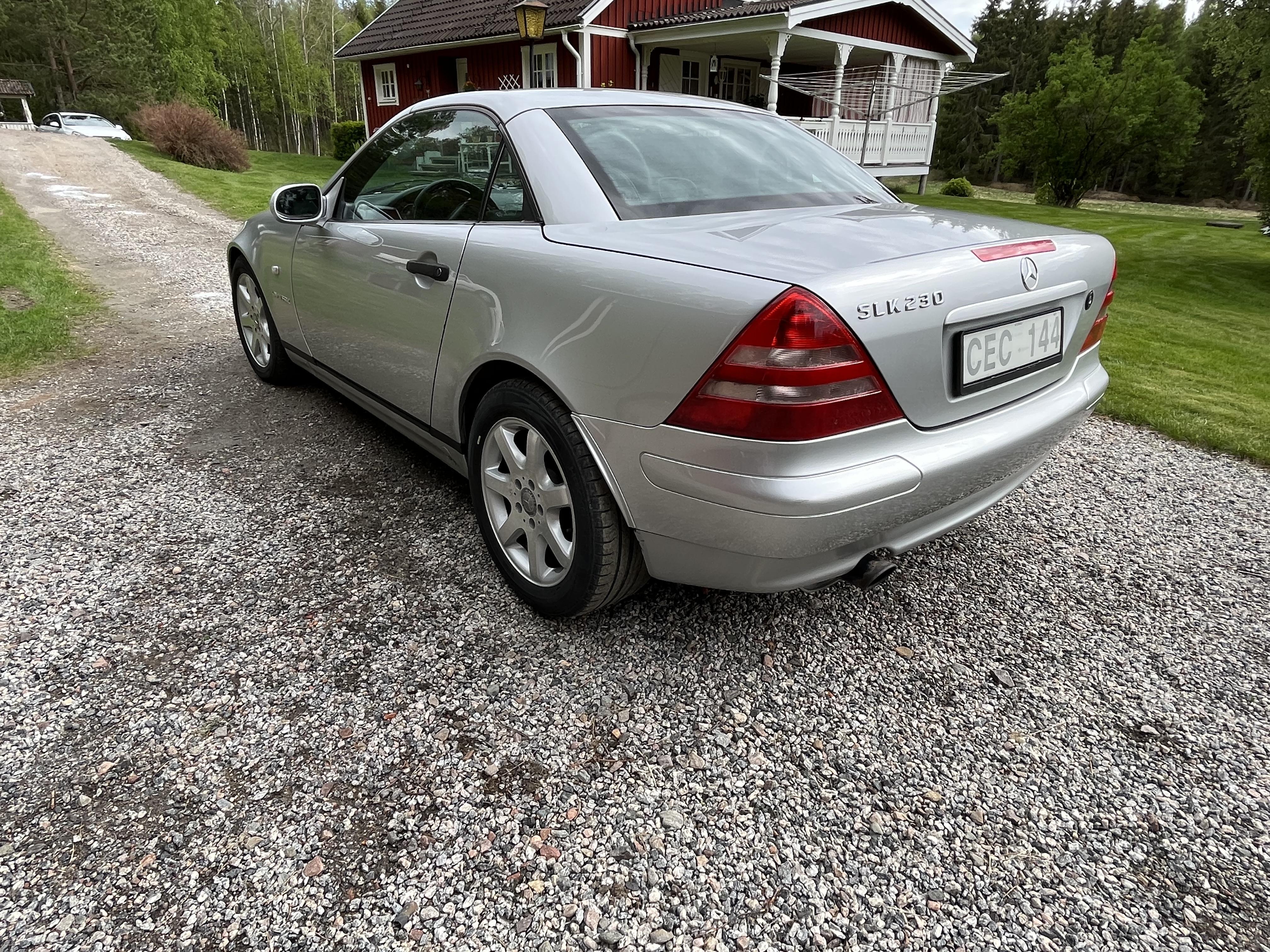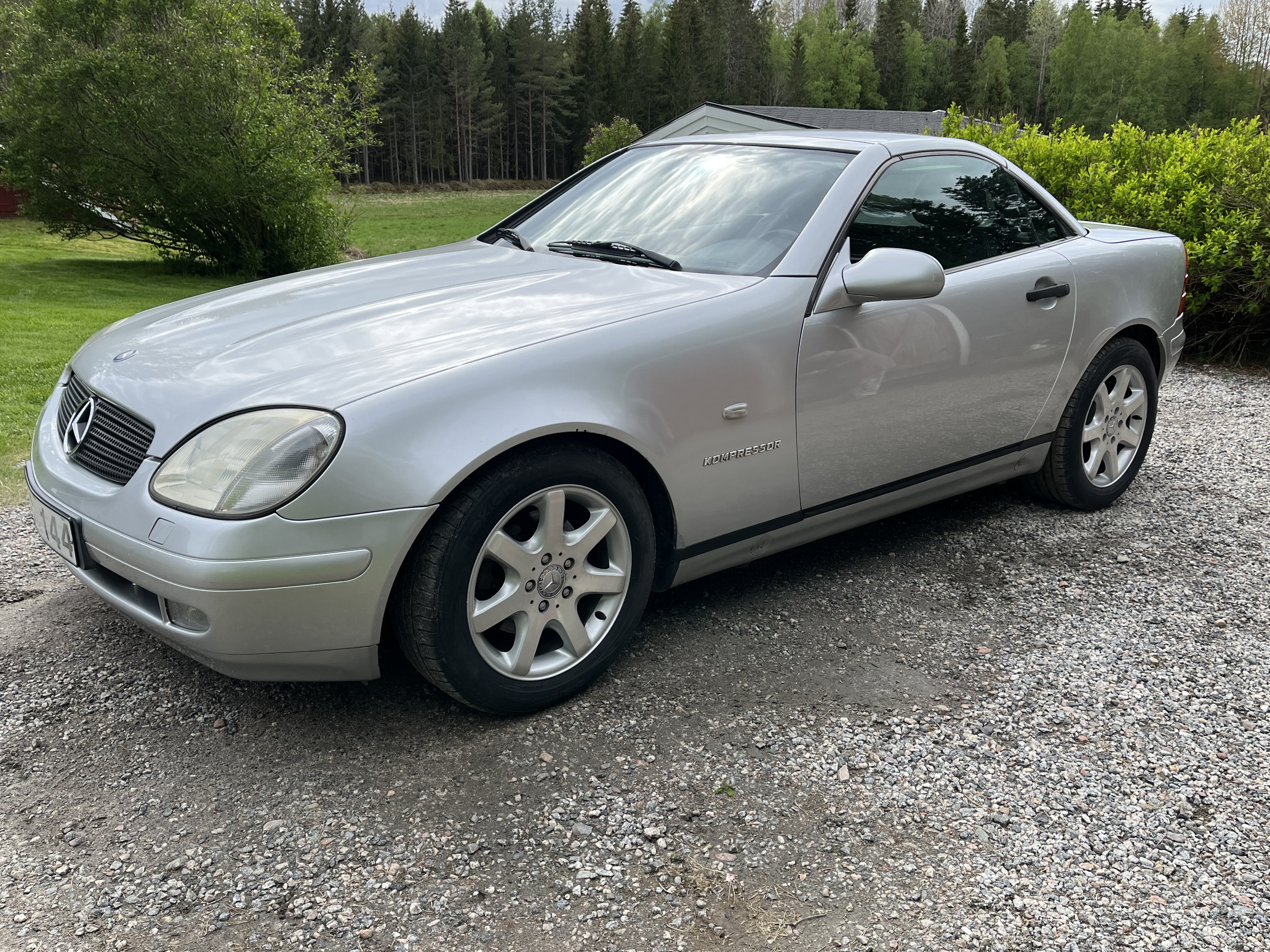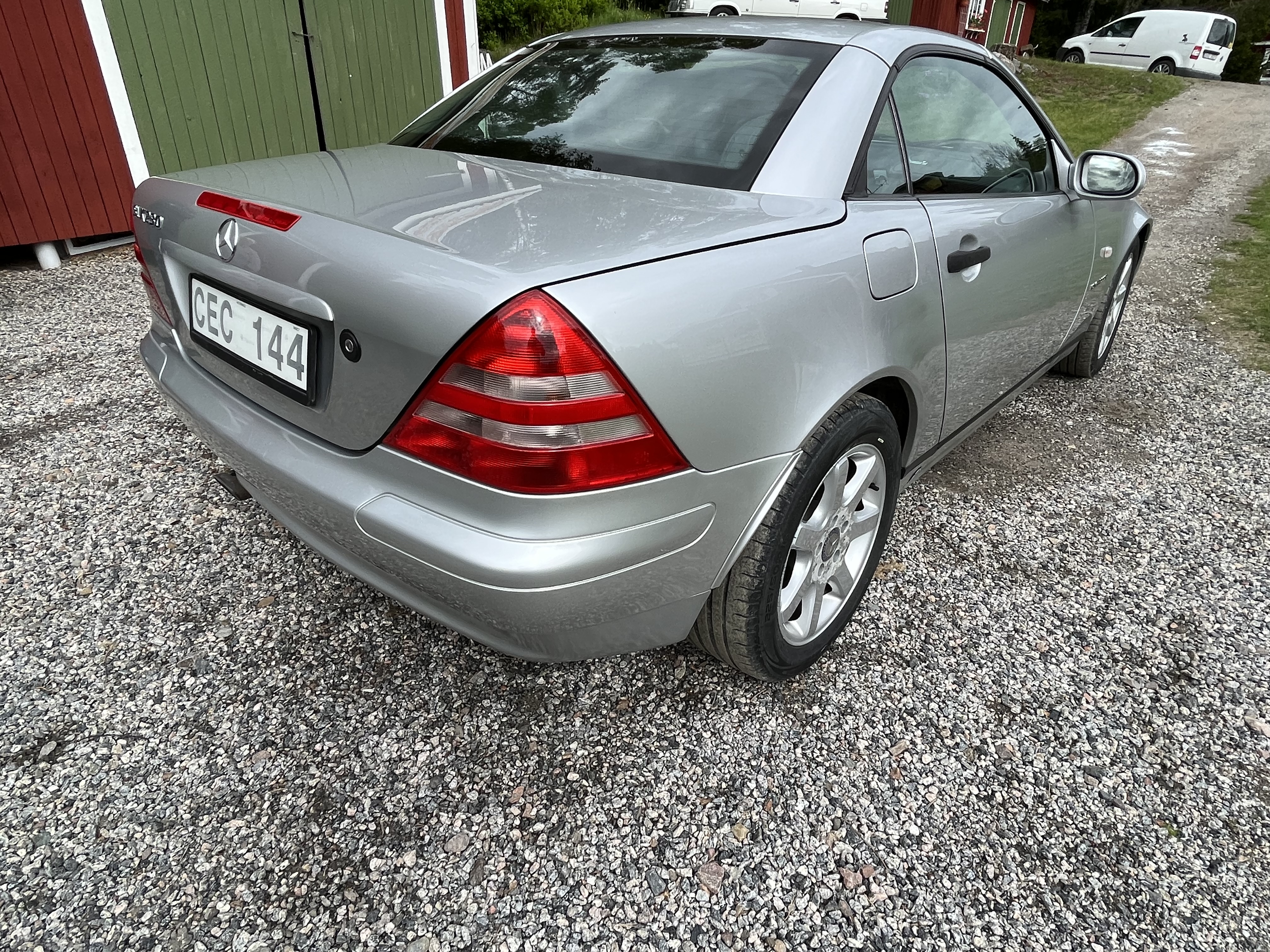 Mercedes SLK is a nice car with an electrically foldable roof. The engine is a 2.3 liter four-cylinder with a compressor that makes it really fun to drive.