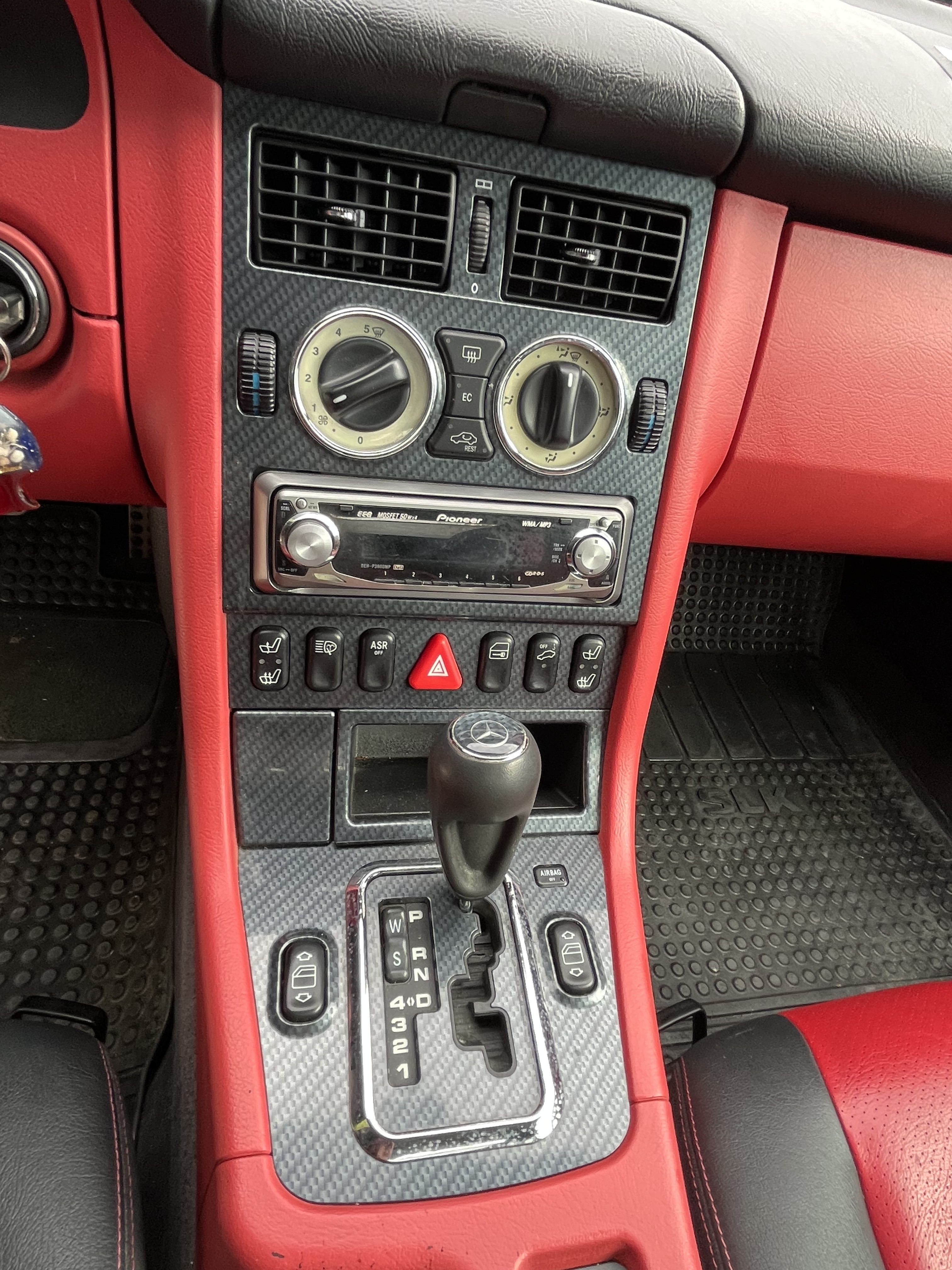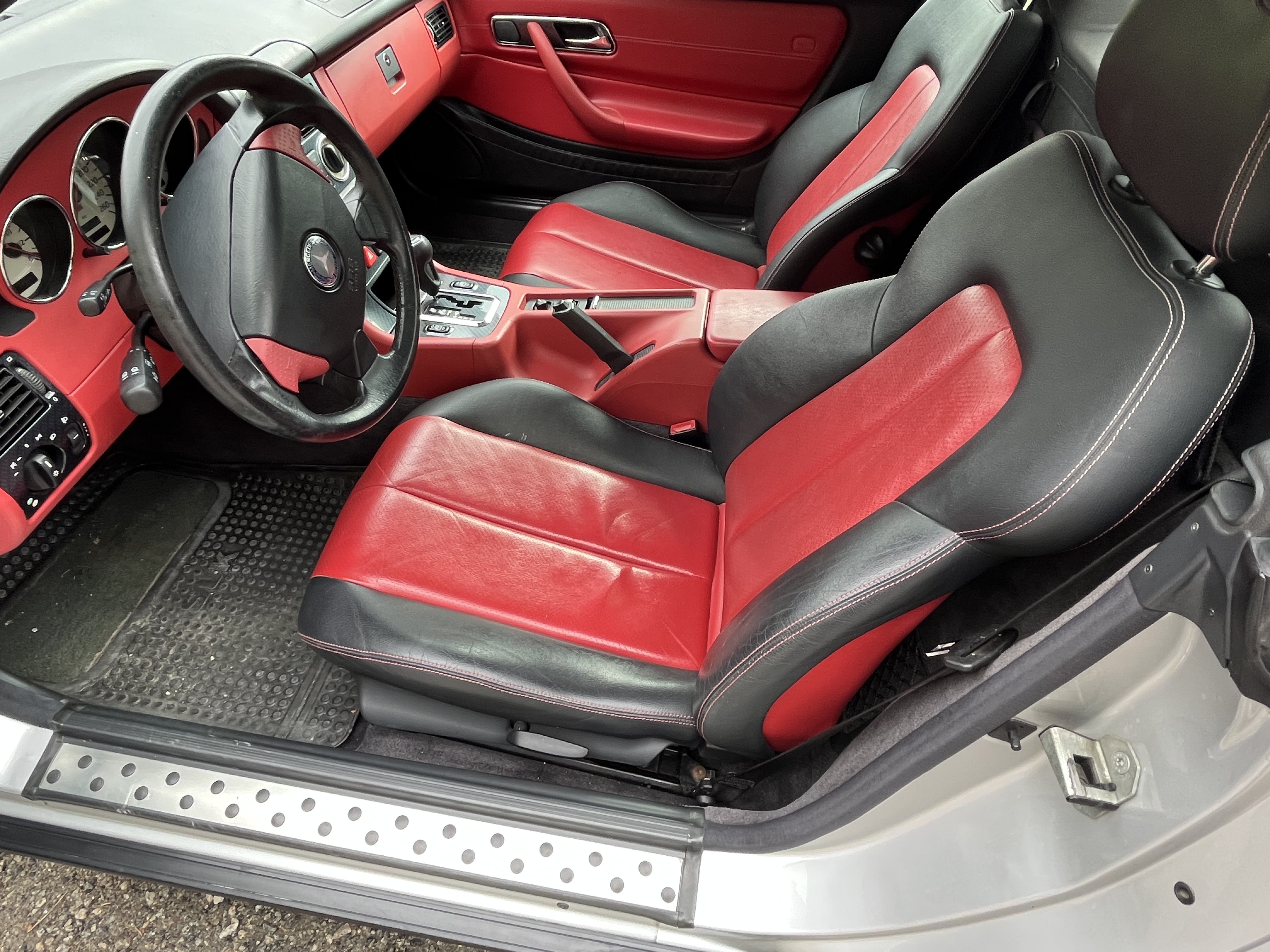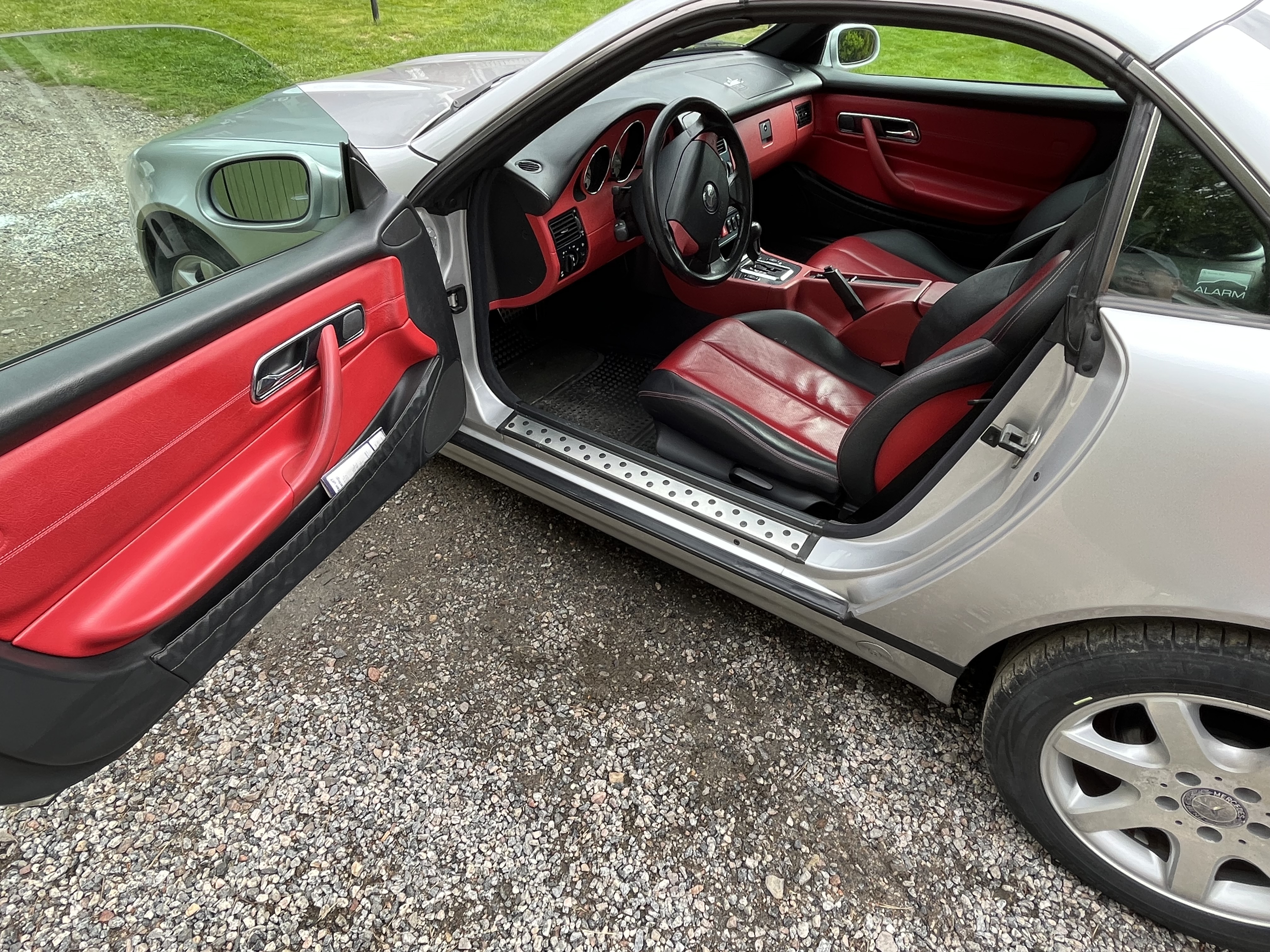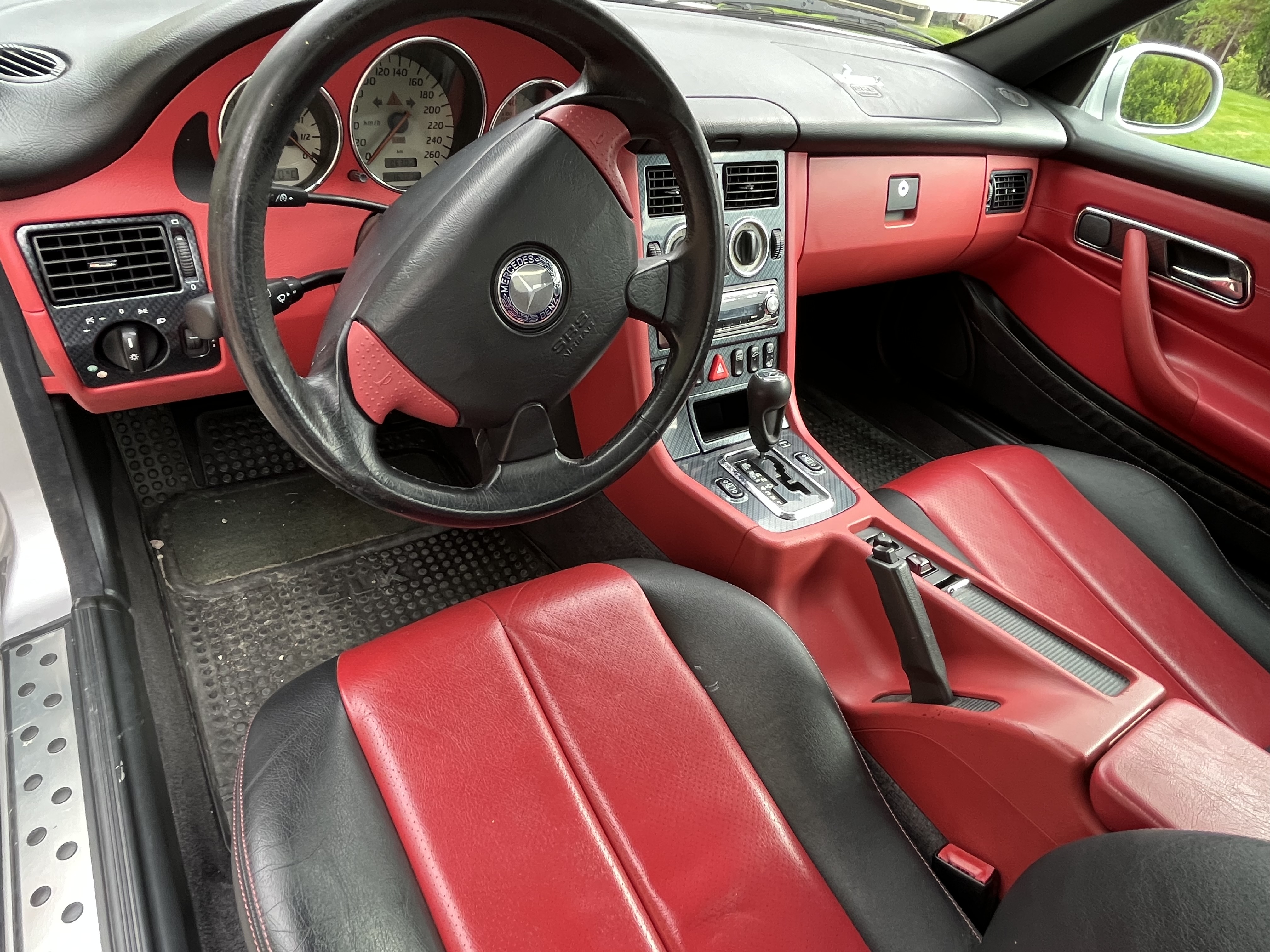 Mercedes SLK is a nice car with an electrically foldable roof. The engine is a 2.3 liter four-cylinder with a compressor that makes it really fun to drive.