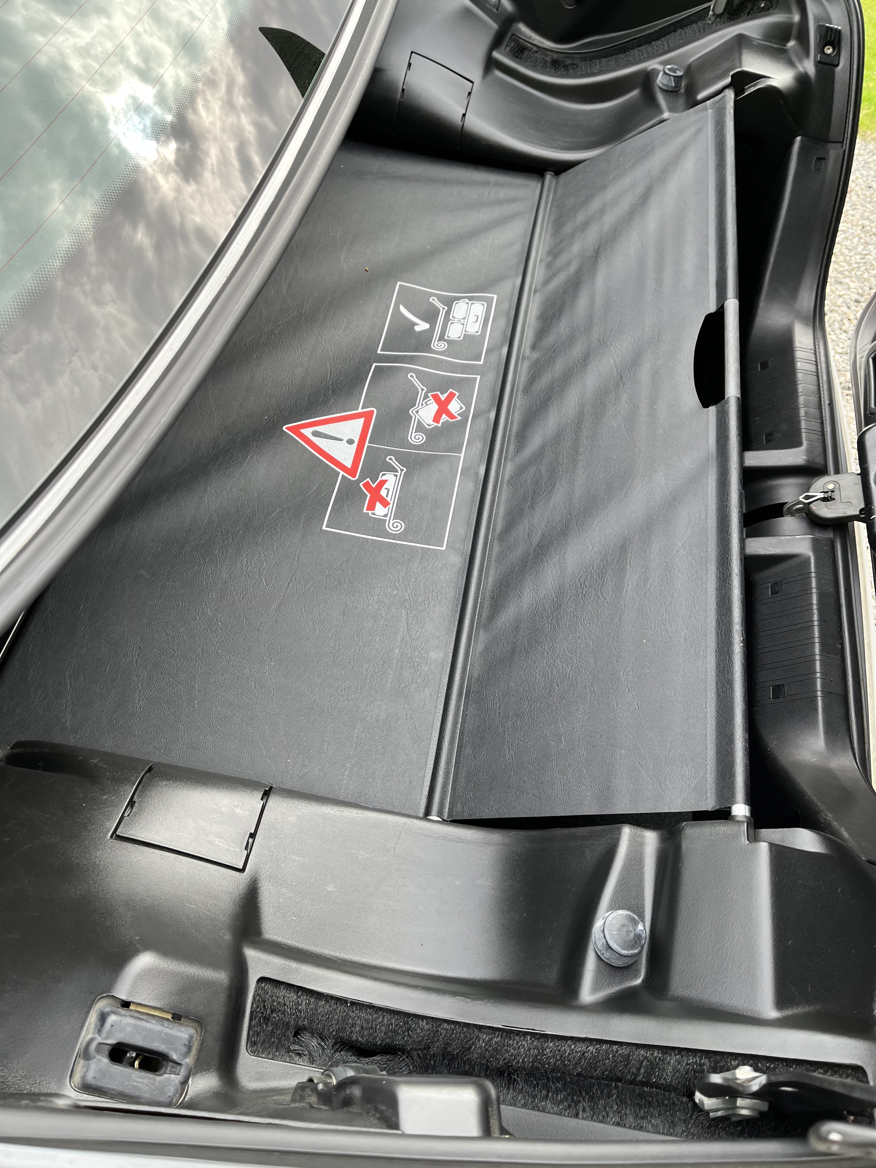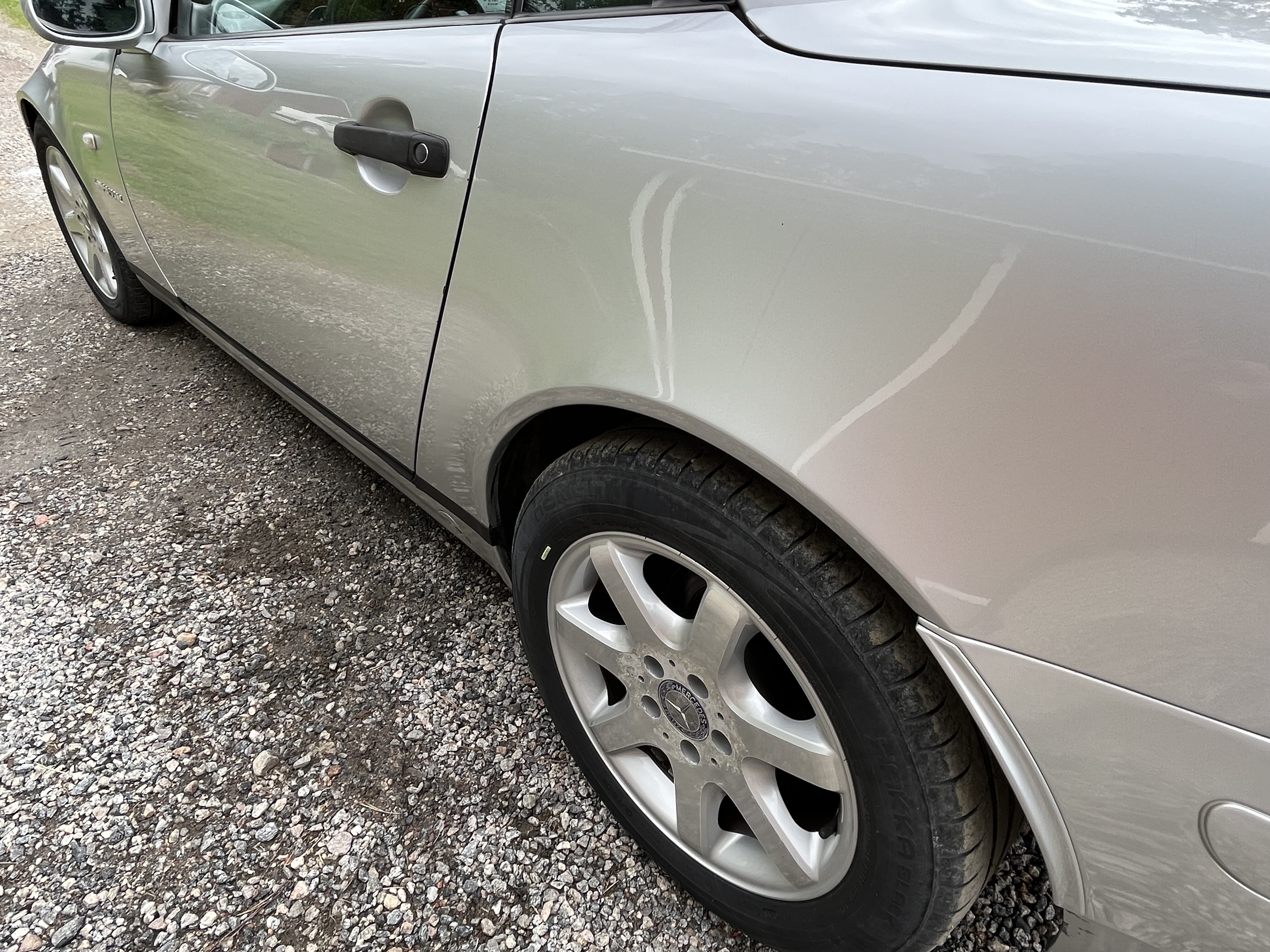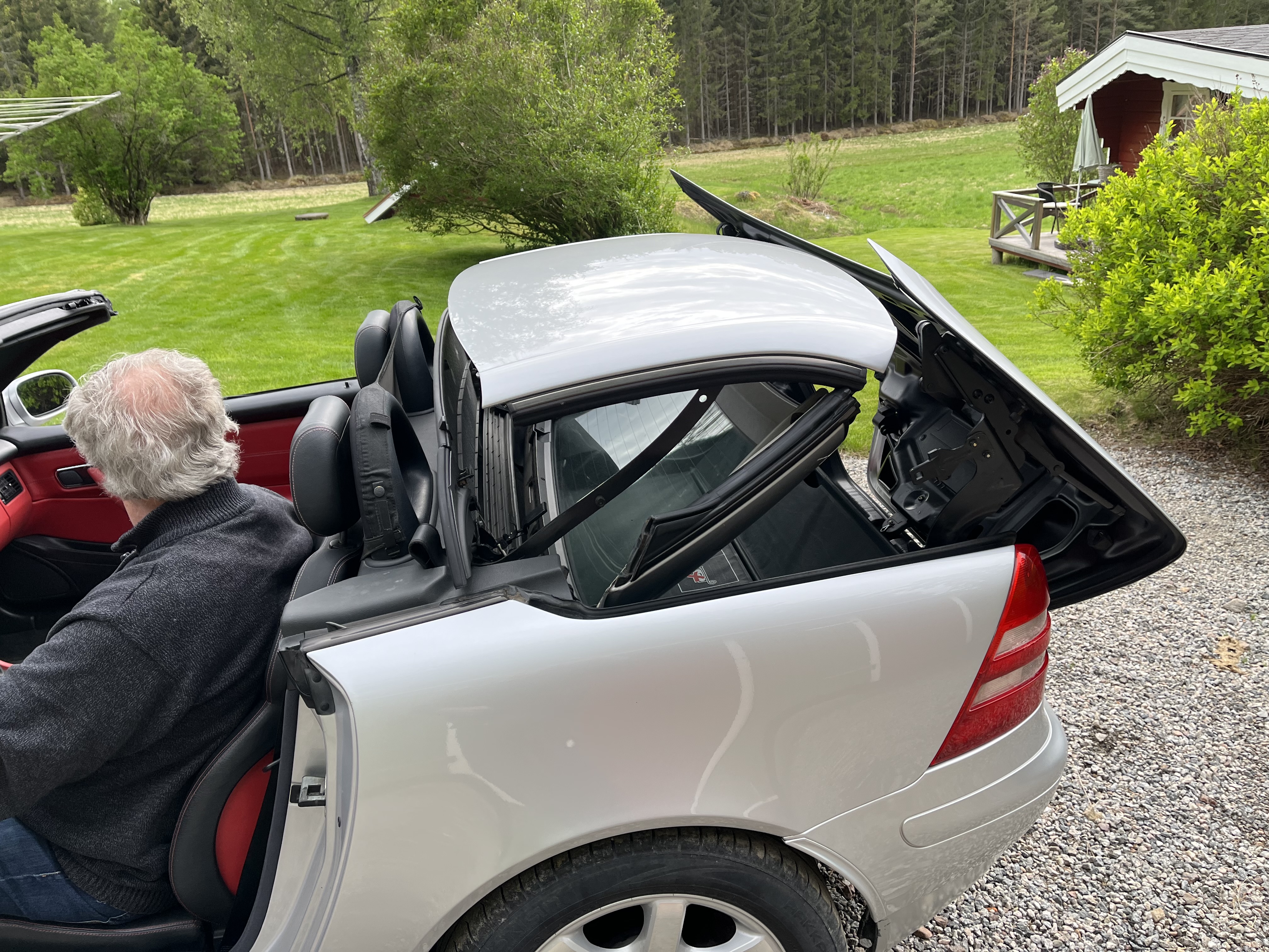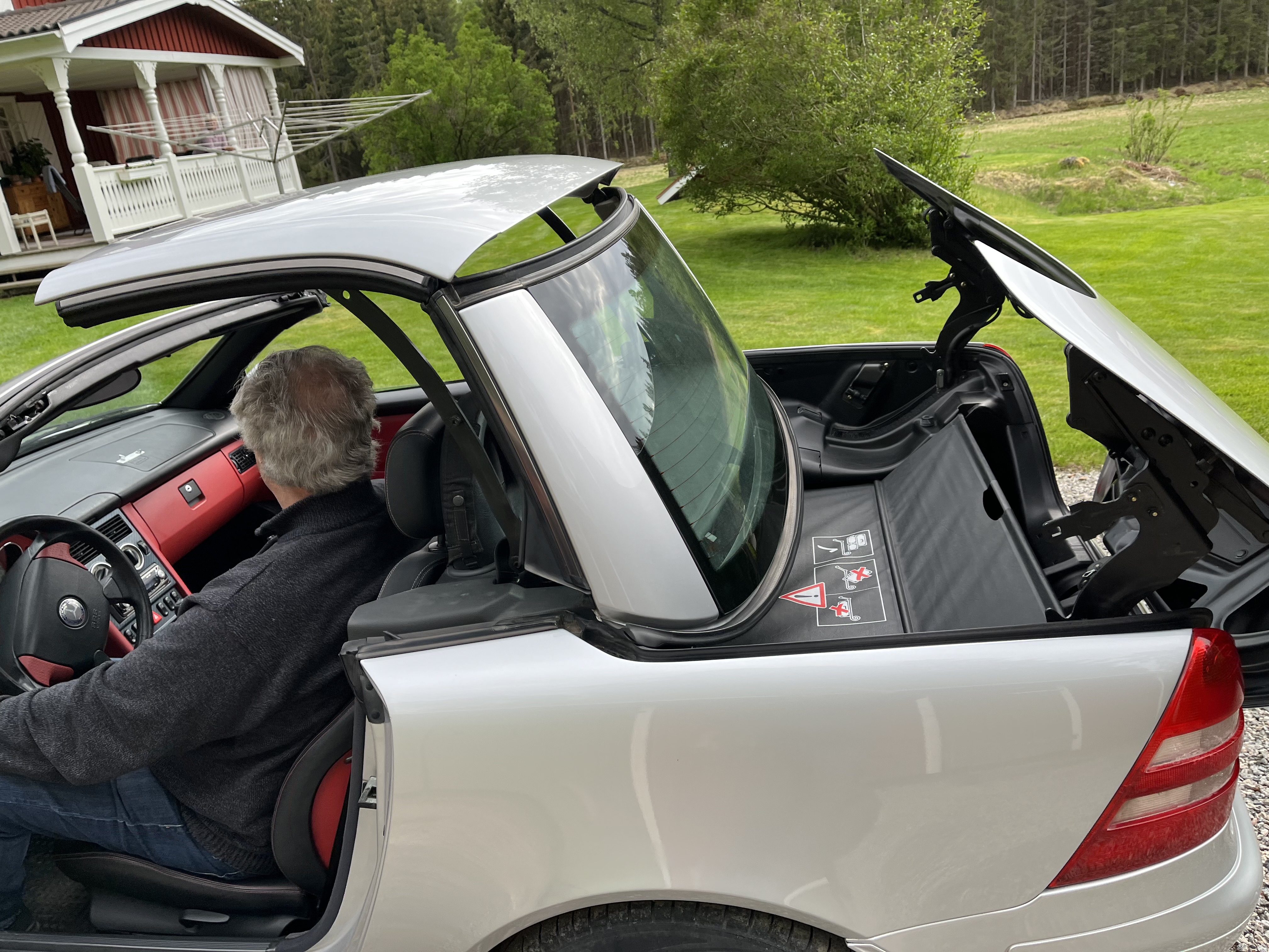 Body and paint are in good condition, there are some minor rust spreads on the lower edge of the front fenders (see photos) otherwise no major remarks. Inside in good condition. Original alloy wheels, the tires have a slightly worn pattern but went through inspection. The car runs and works fine and is recently inspected and approved. According to information, it has at some point jammed when the roof is to be lowered, but at the time of the photo, it worked flawlessly.