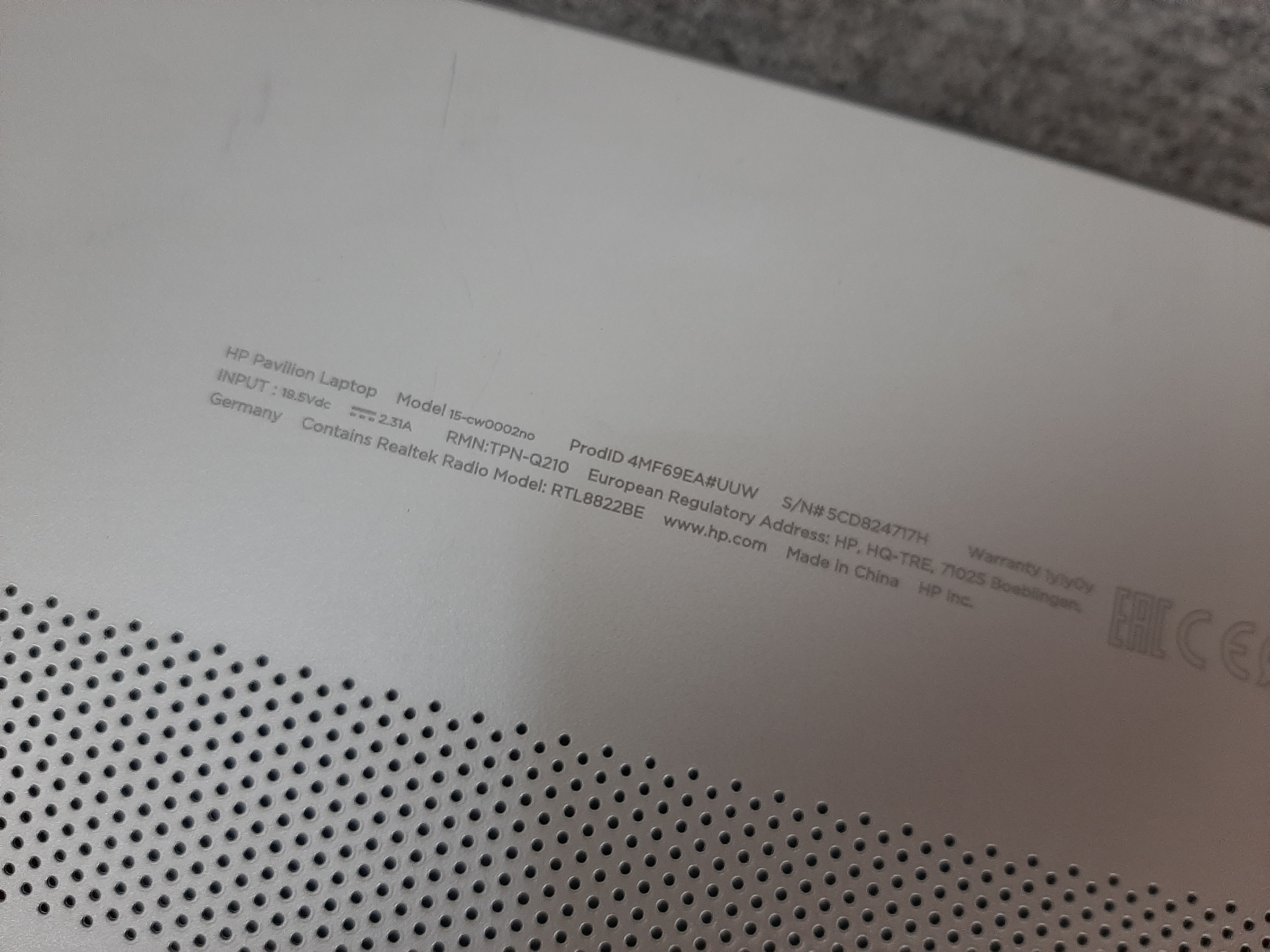| Model | 15-cw0002no (Pavillion) |