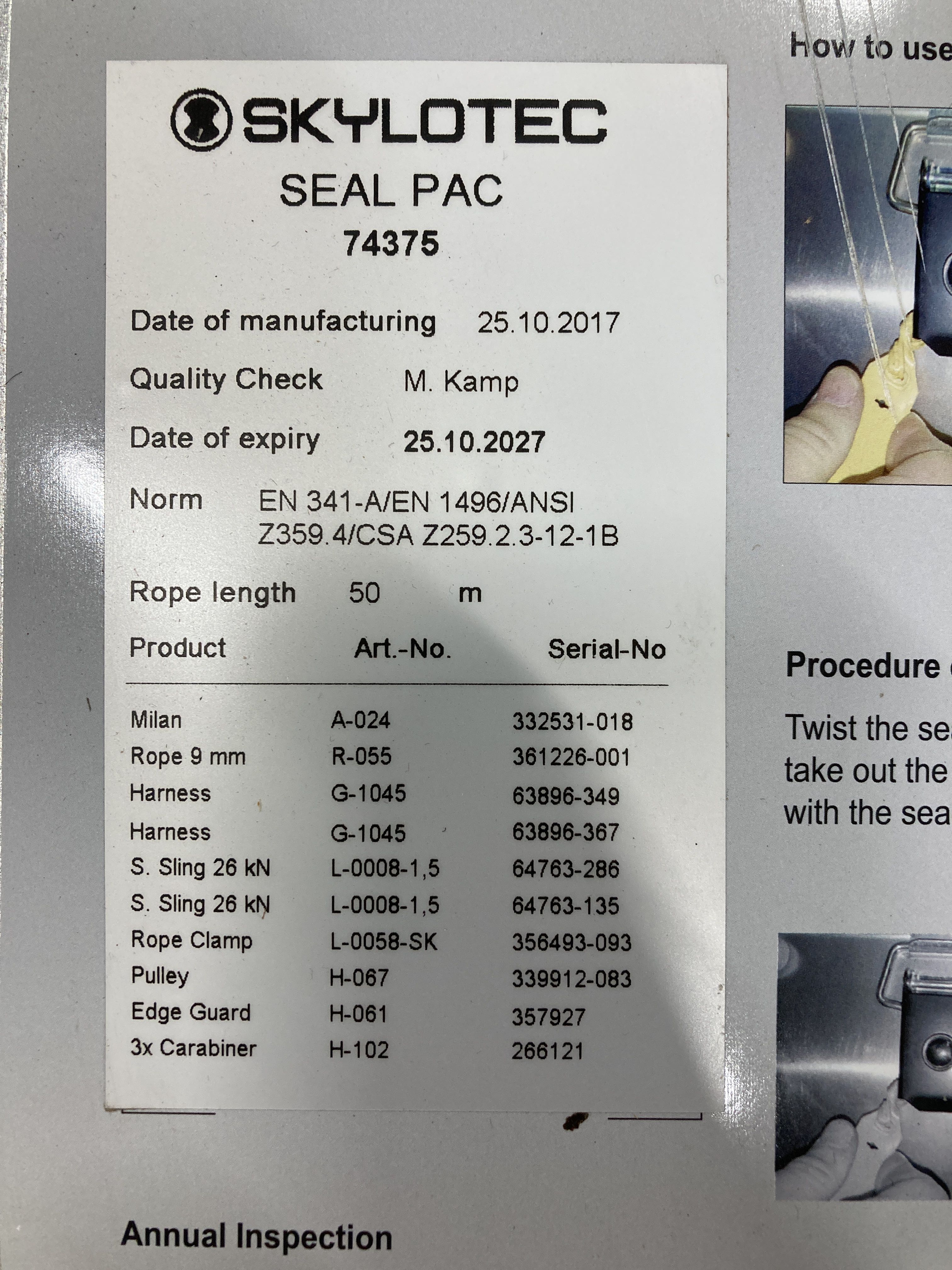 Fall protection package Skylotec Milan 2.0 - 50 meters