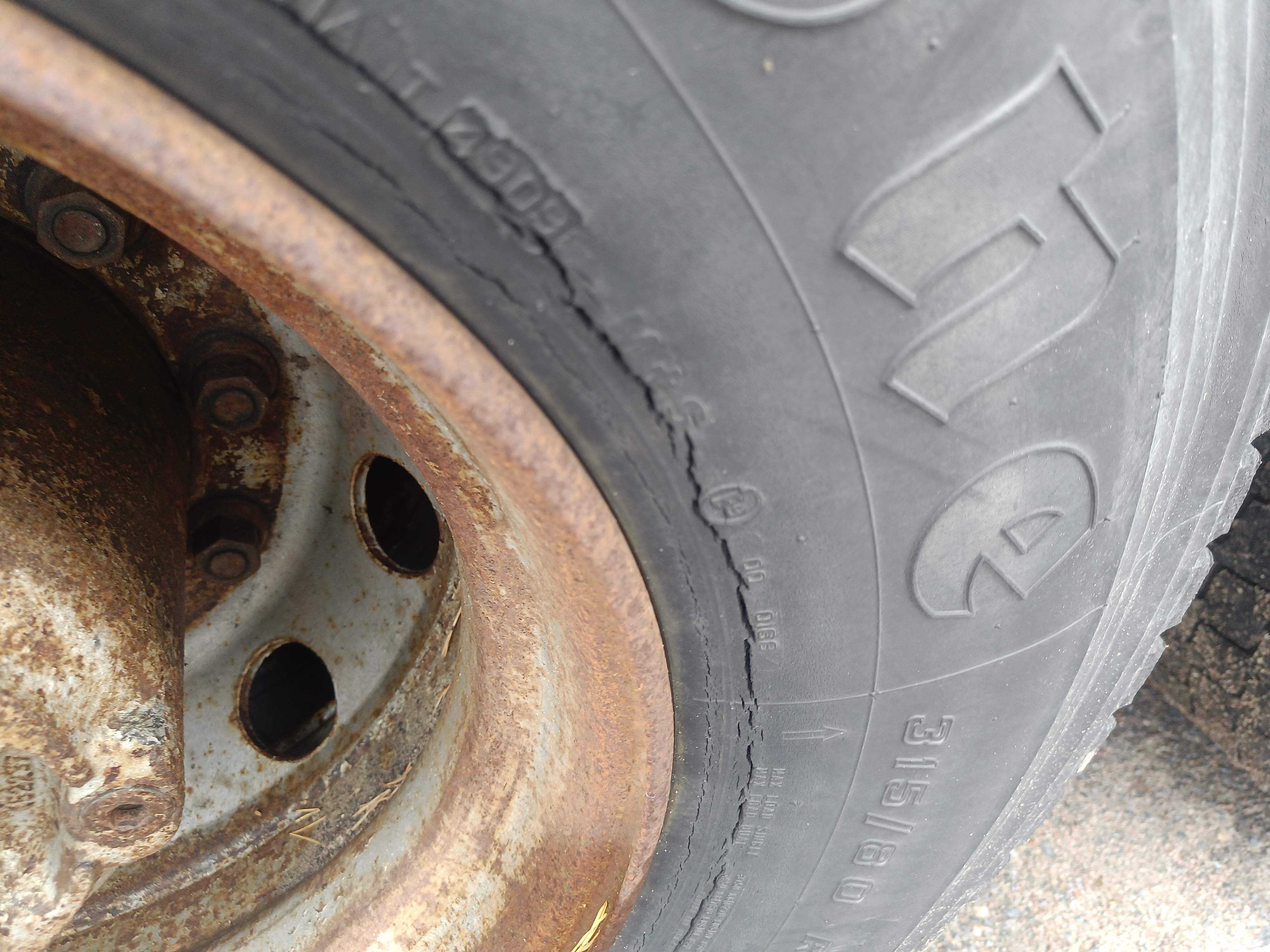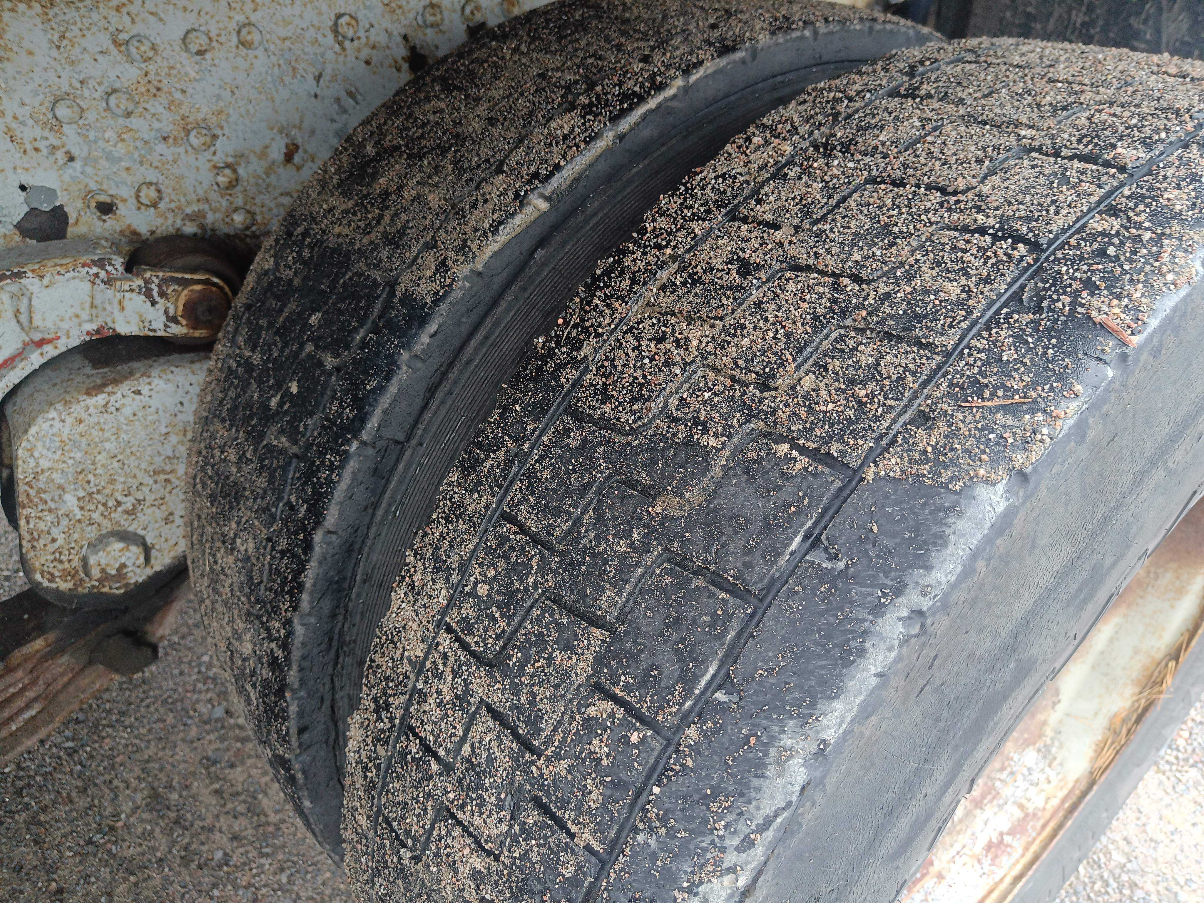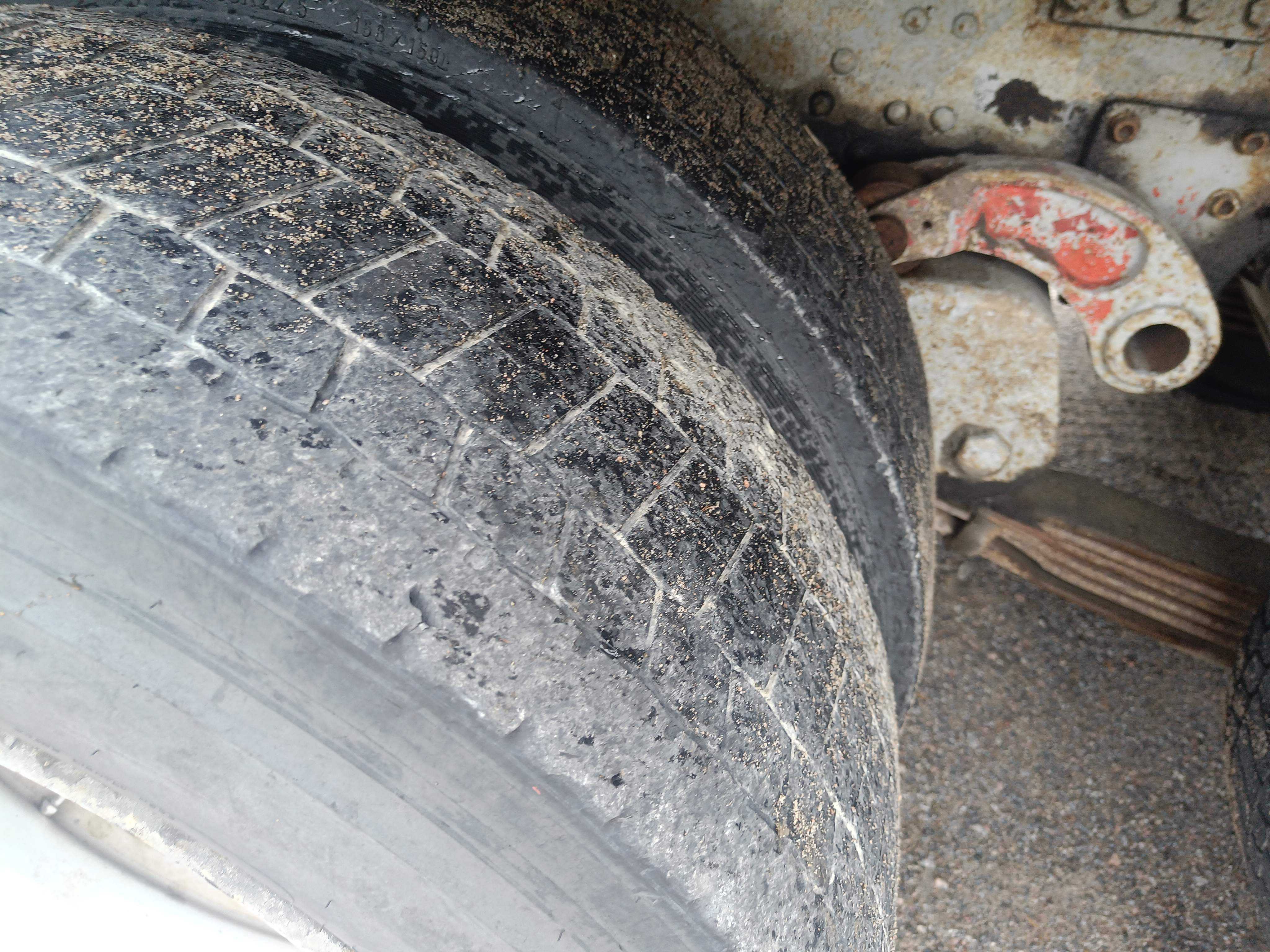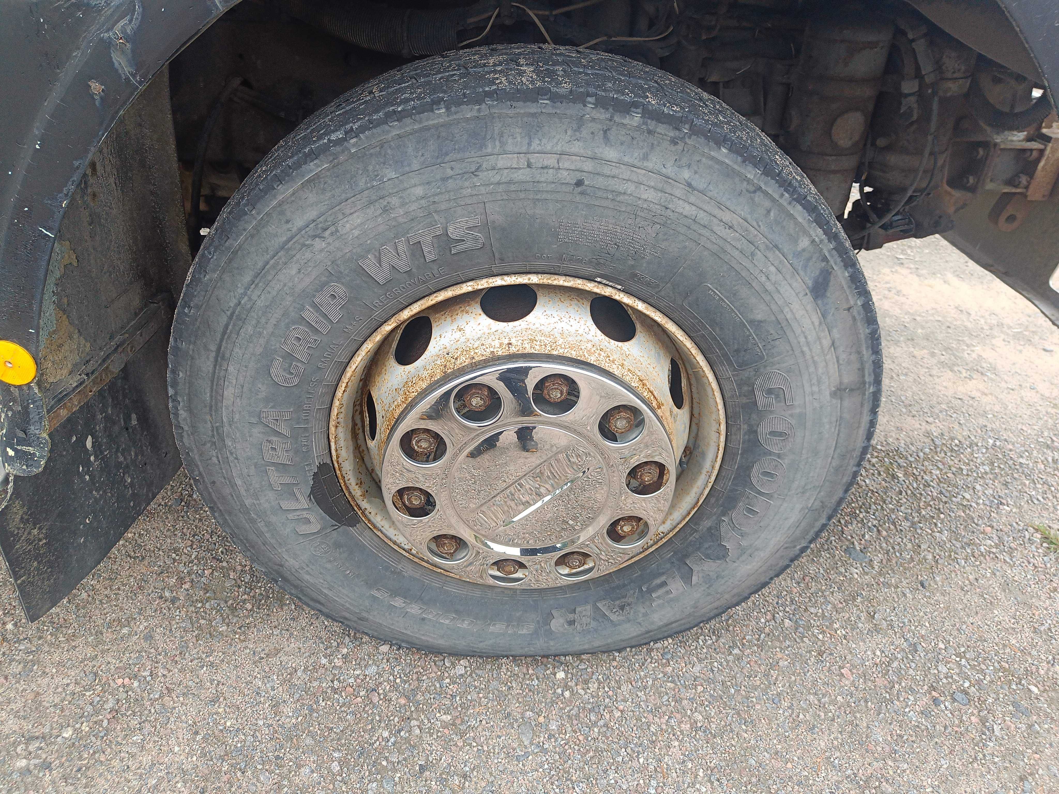 Steering tires: 315/80R22.5, About 60% of the tread depth remains.