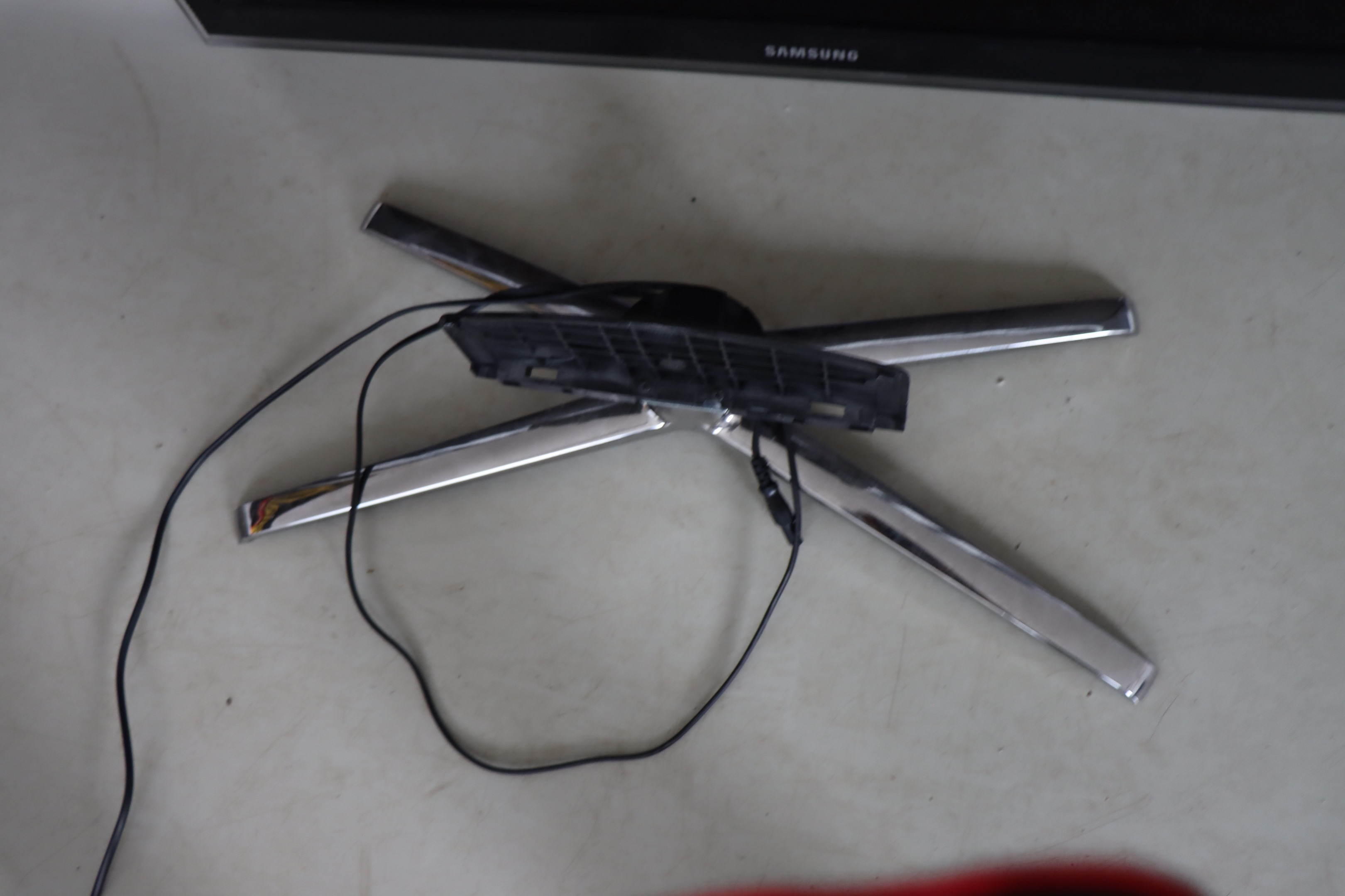 There is a stand. Missing remote control.