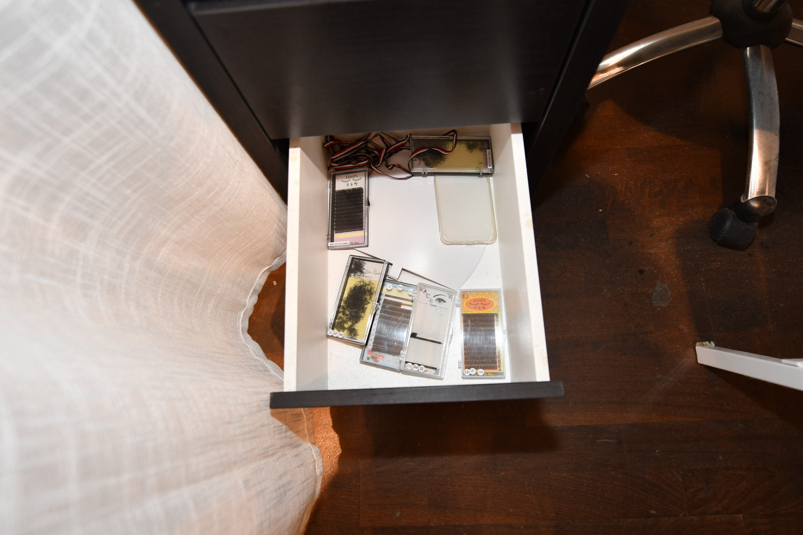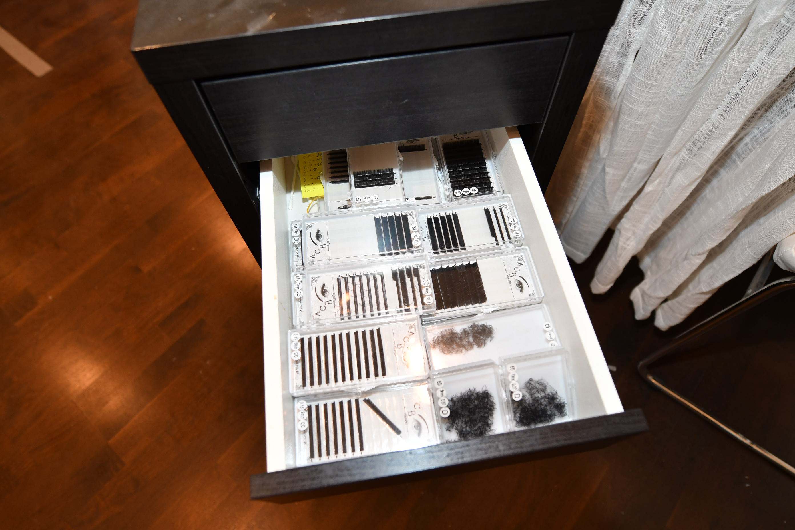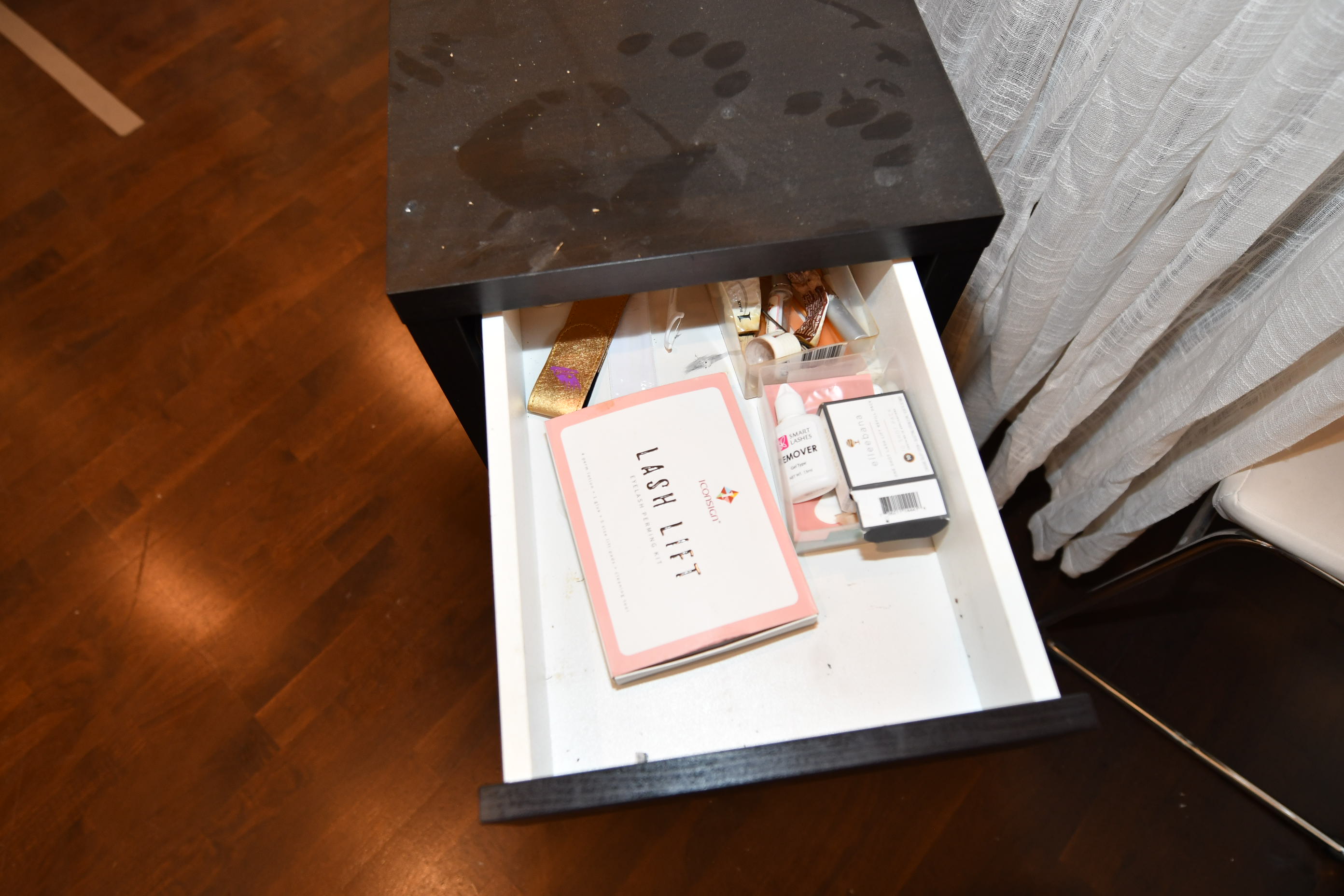 Nail sculpting equipment, eyelash extensions, pedicure equipment, treatment benches, treatment chairs, fairly large stock of lashes, towels, furniture, signs, chairs, etc.