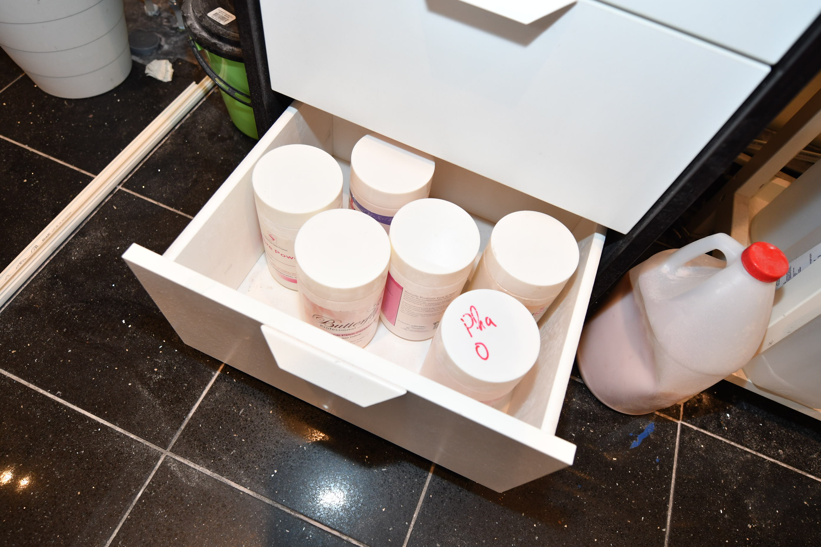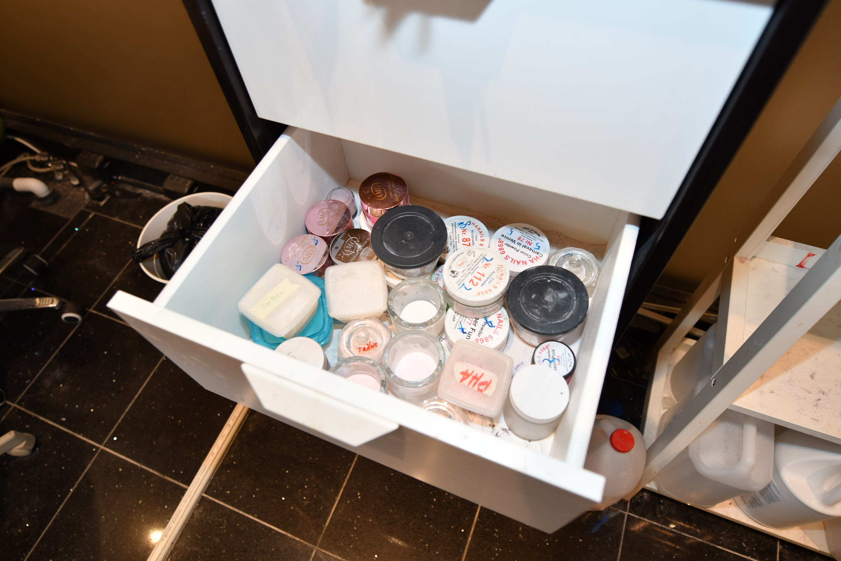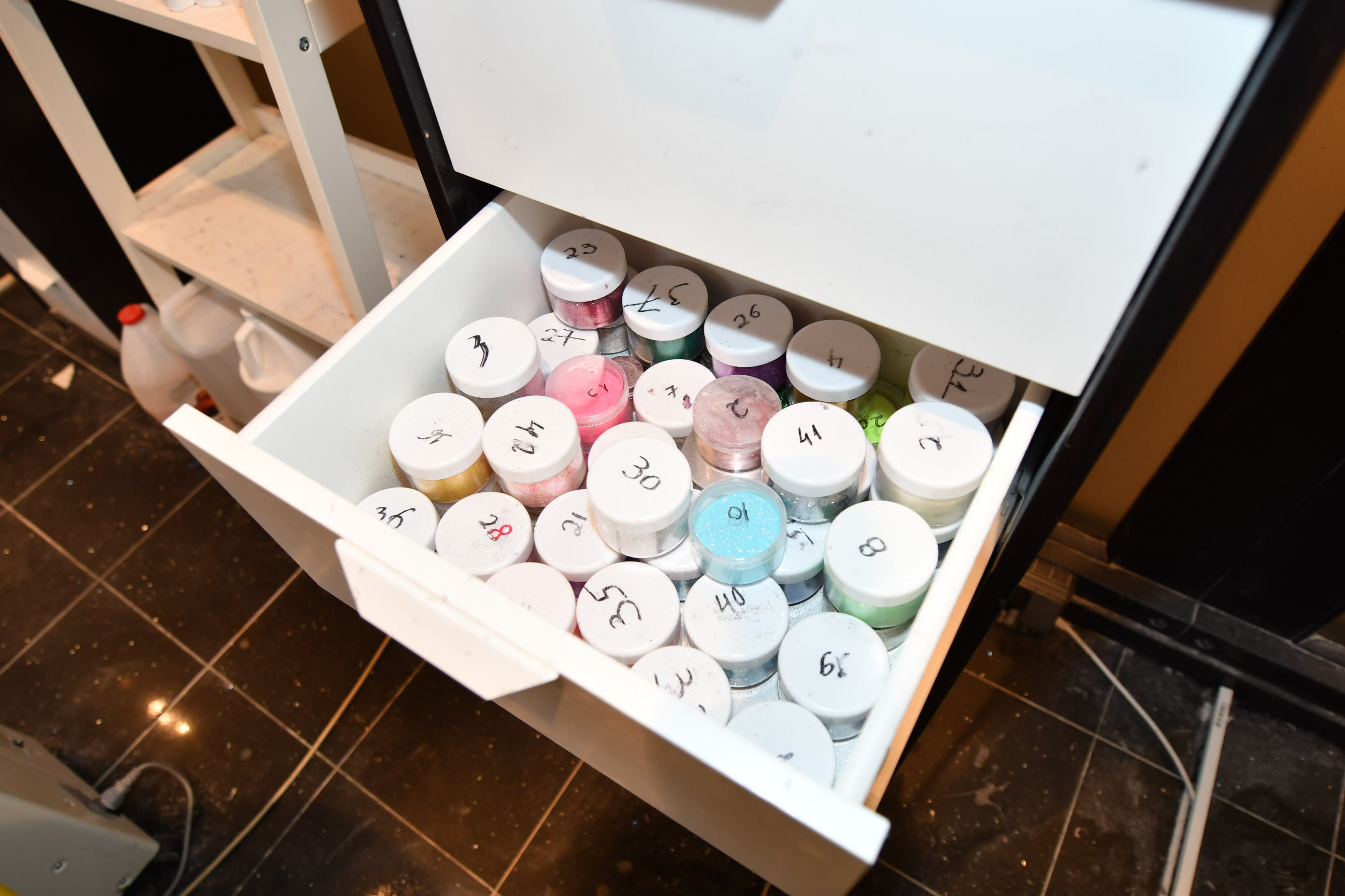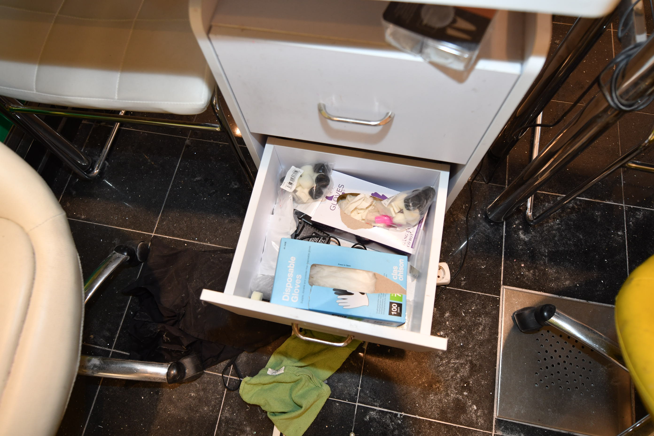 Nail sculpting equipment, eyelash extensions, pedicure equipment, treatment benches, treatment chairs, fairly large stock of lashes, towels, furniture, signs, chairs, etc.