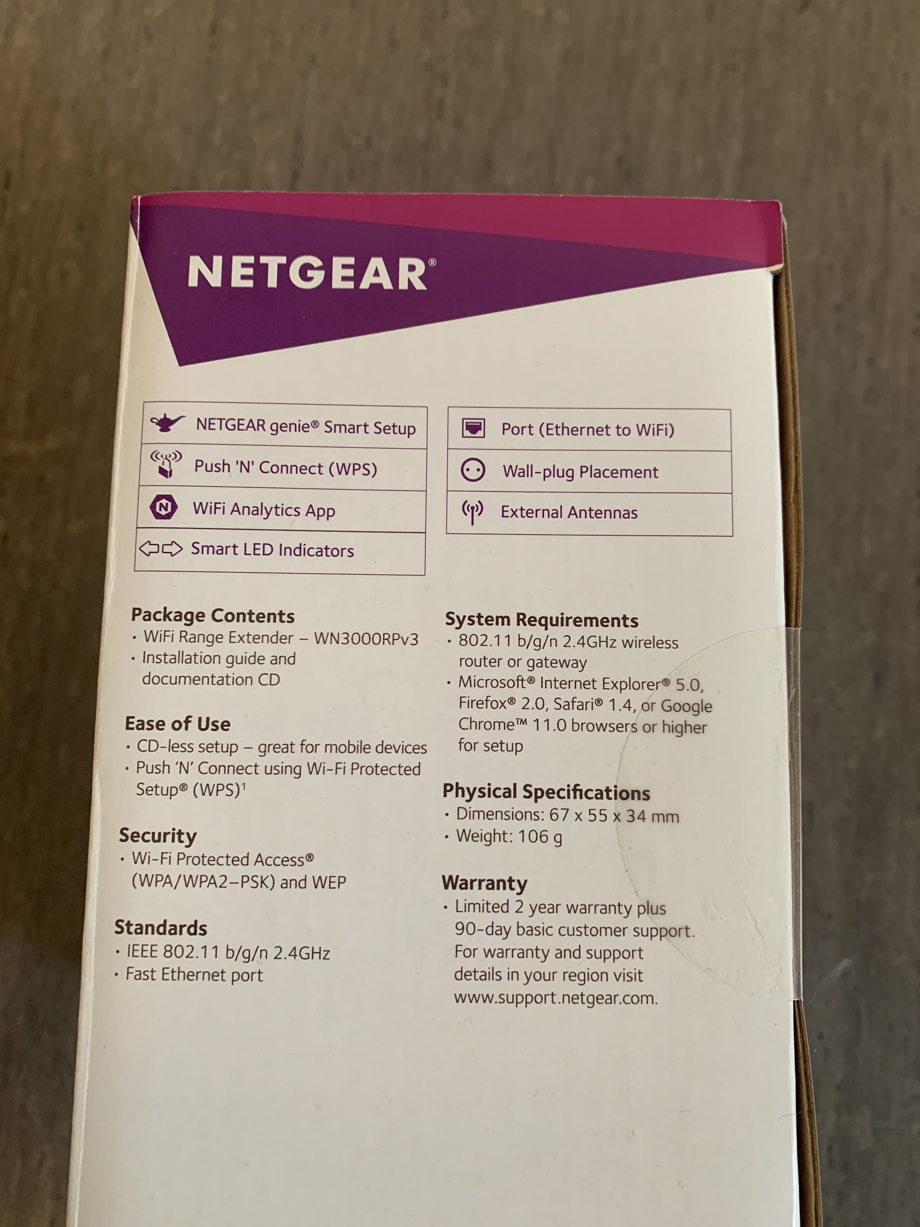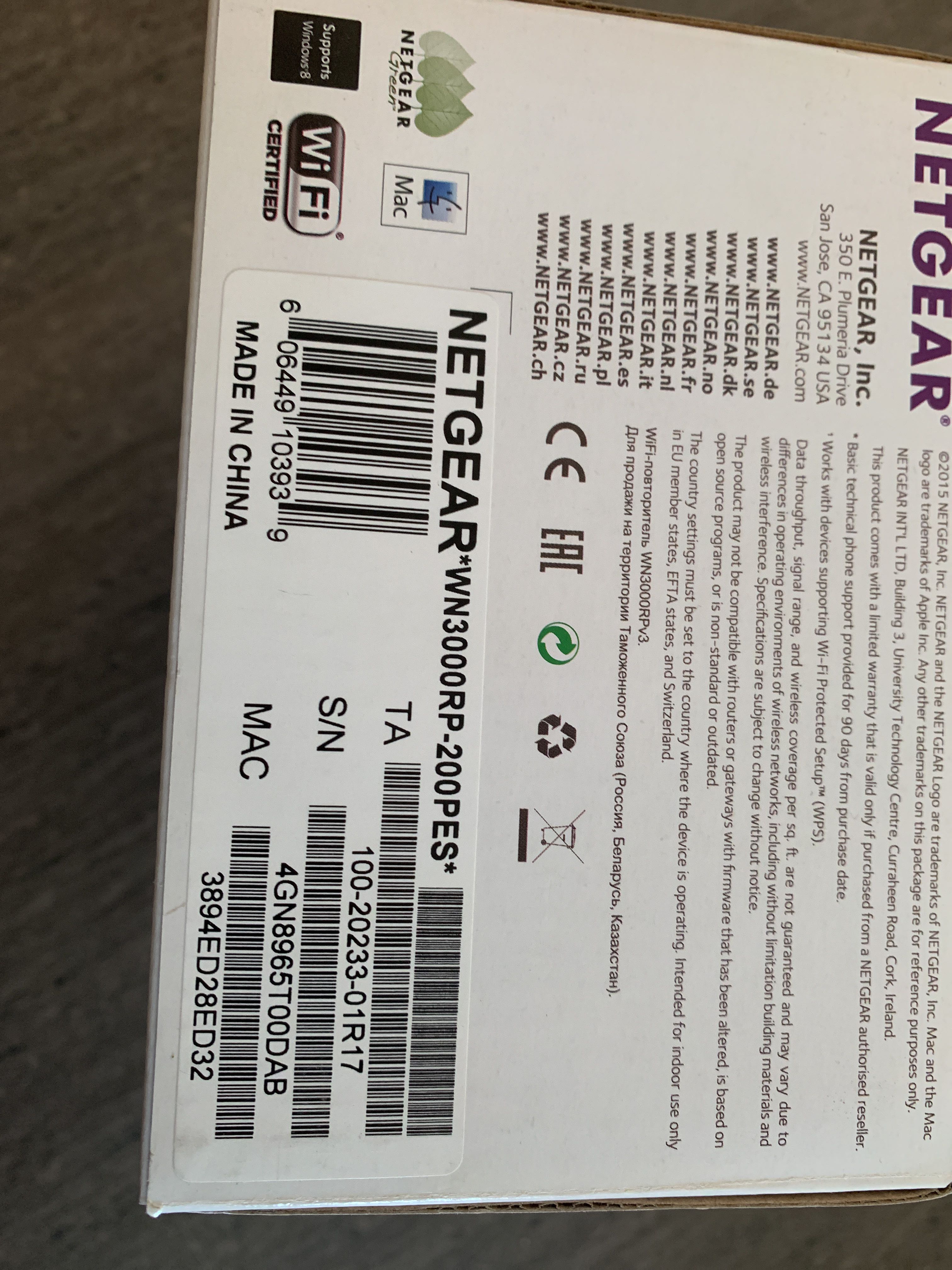 WiFi amplifier NetGear, incl. cardboard.