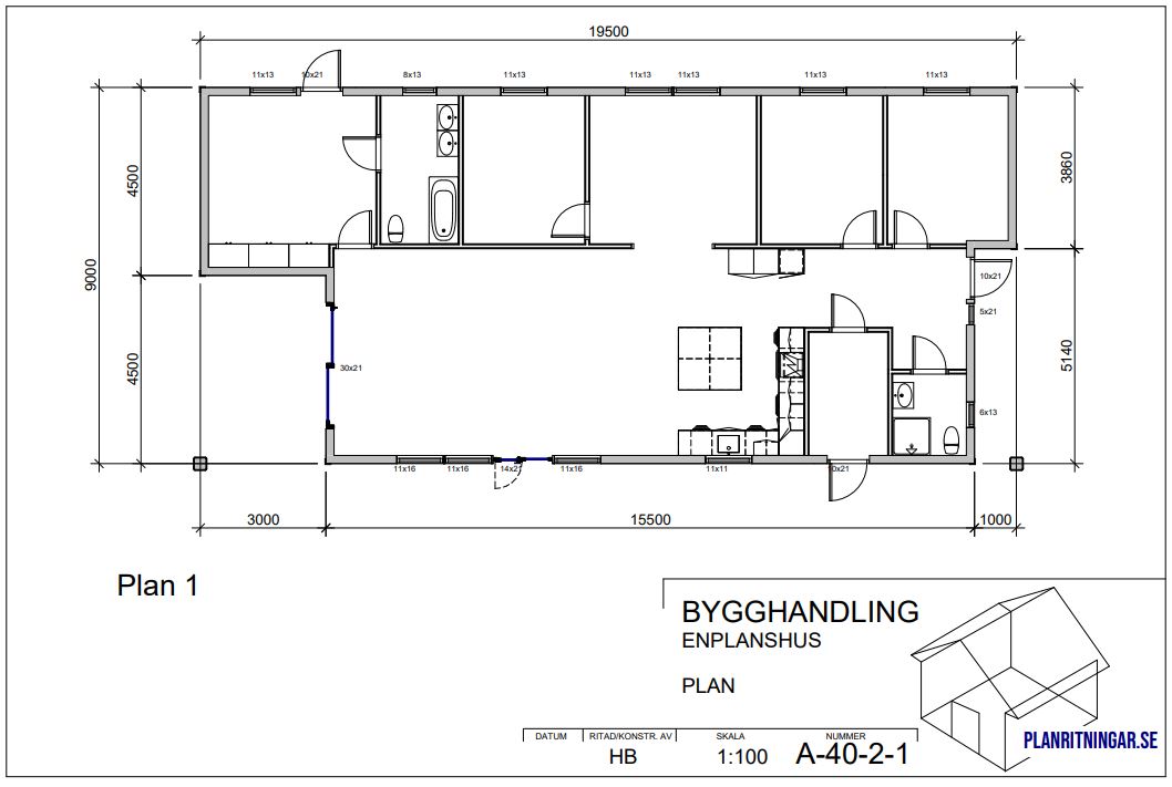 Frame for a single-storey villa of approximately 157 square meters of living space. Sturdy frame with passive house standard built according to Swedish building code. Open to the ceiling in the living room/kitchen.