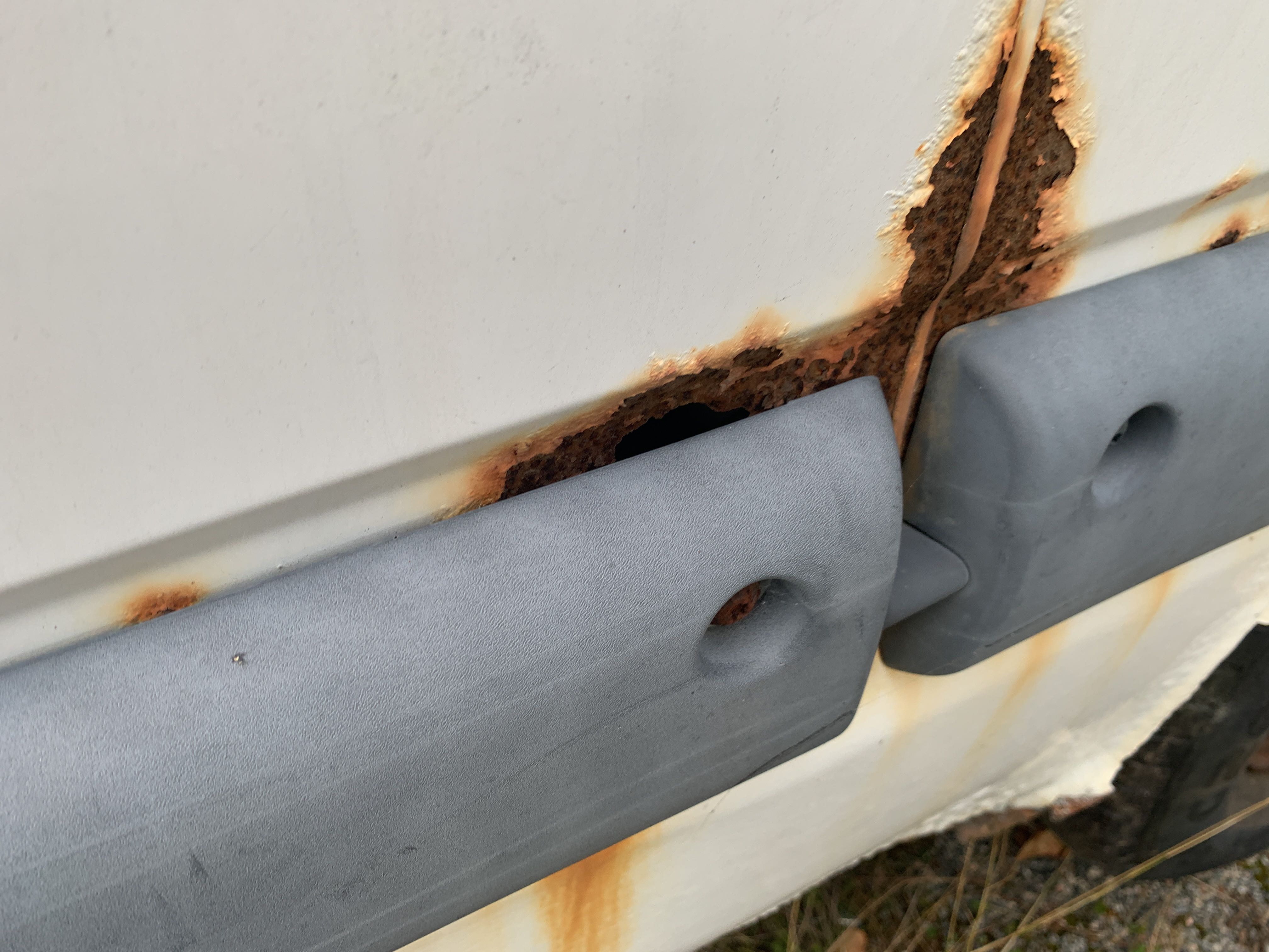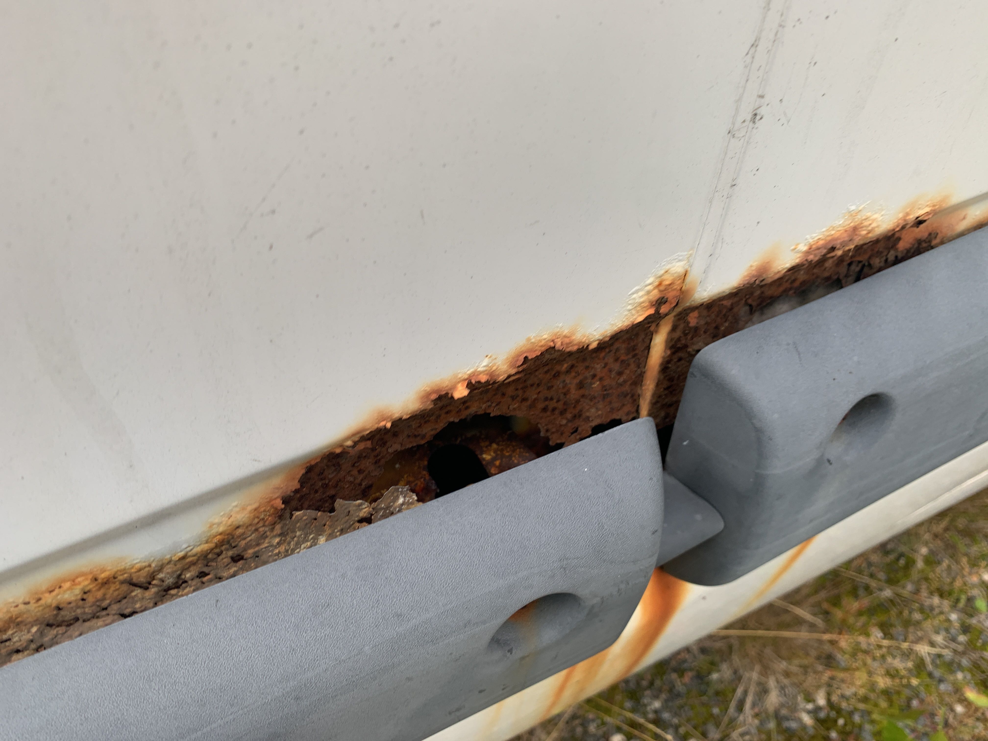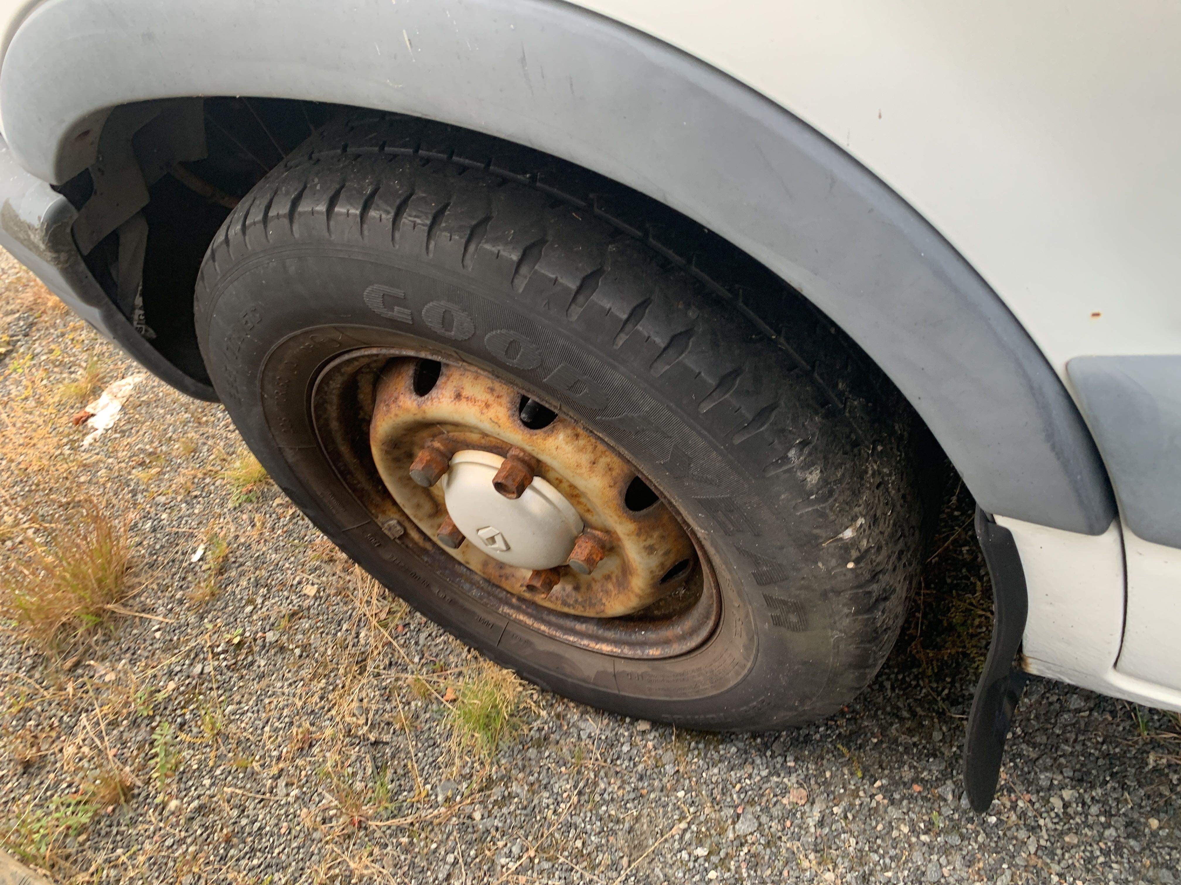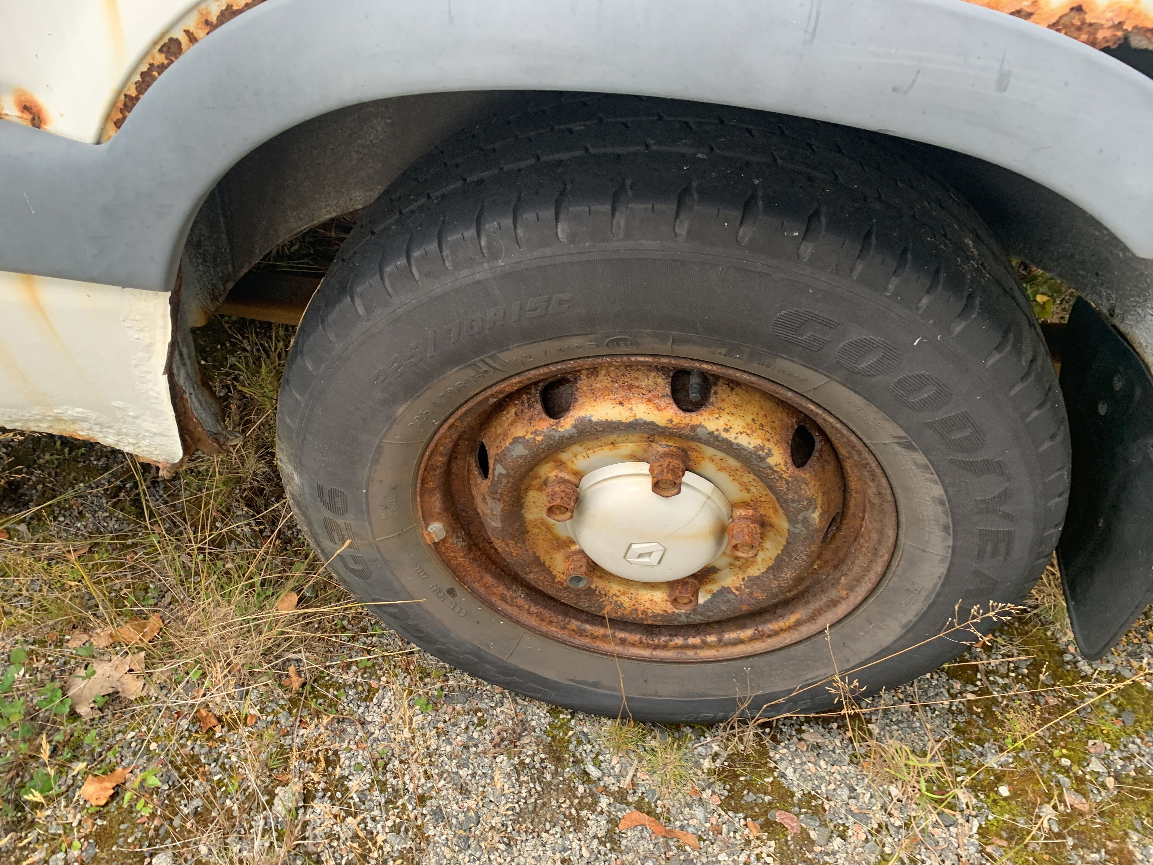 Driving ban due to missing inspection. Last approved in 2017. Large amount of rust all around. According to information, the fuel pump is broken. The vehicle also lacks a battery and no functions have been tested.