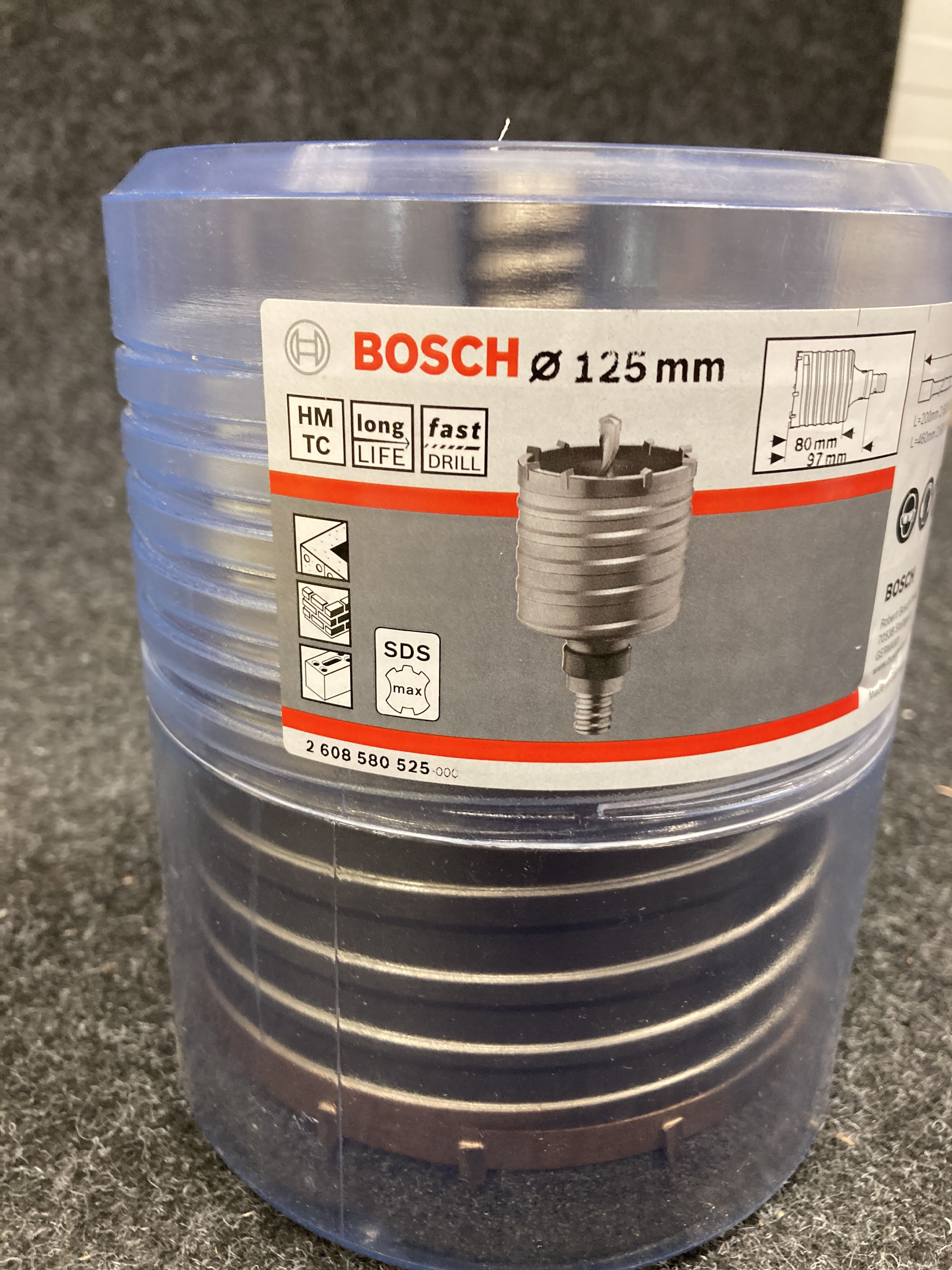 Drill bit of 125x80x97mm for concrete, masonry and limestone.