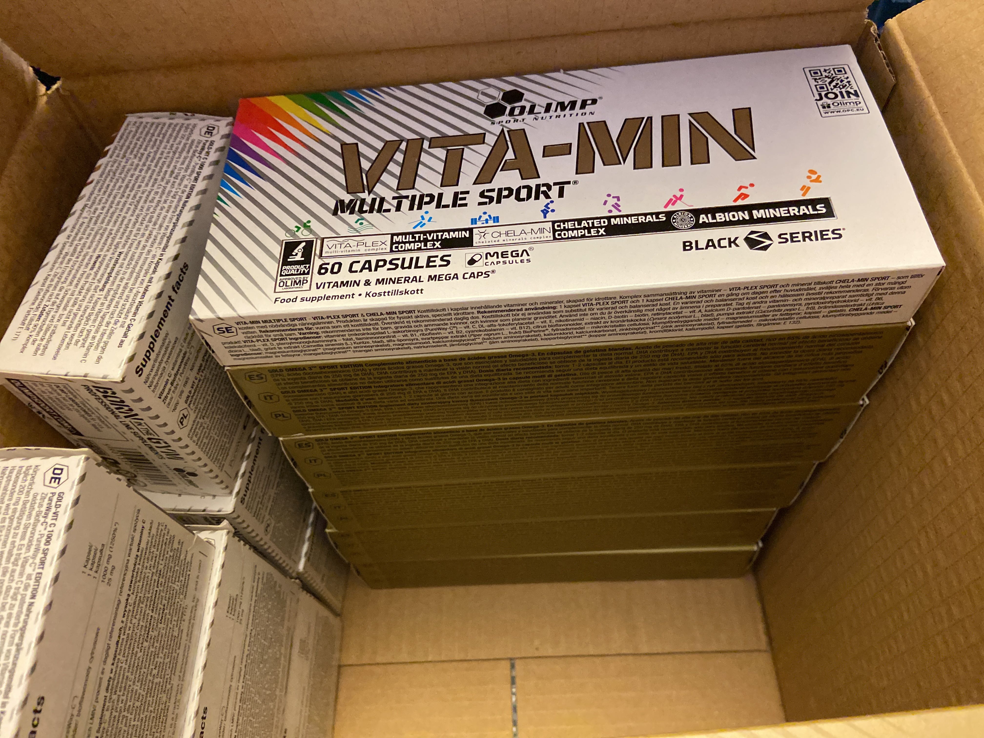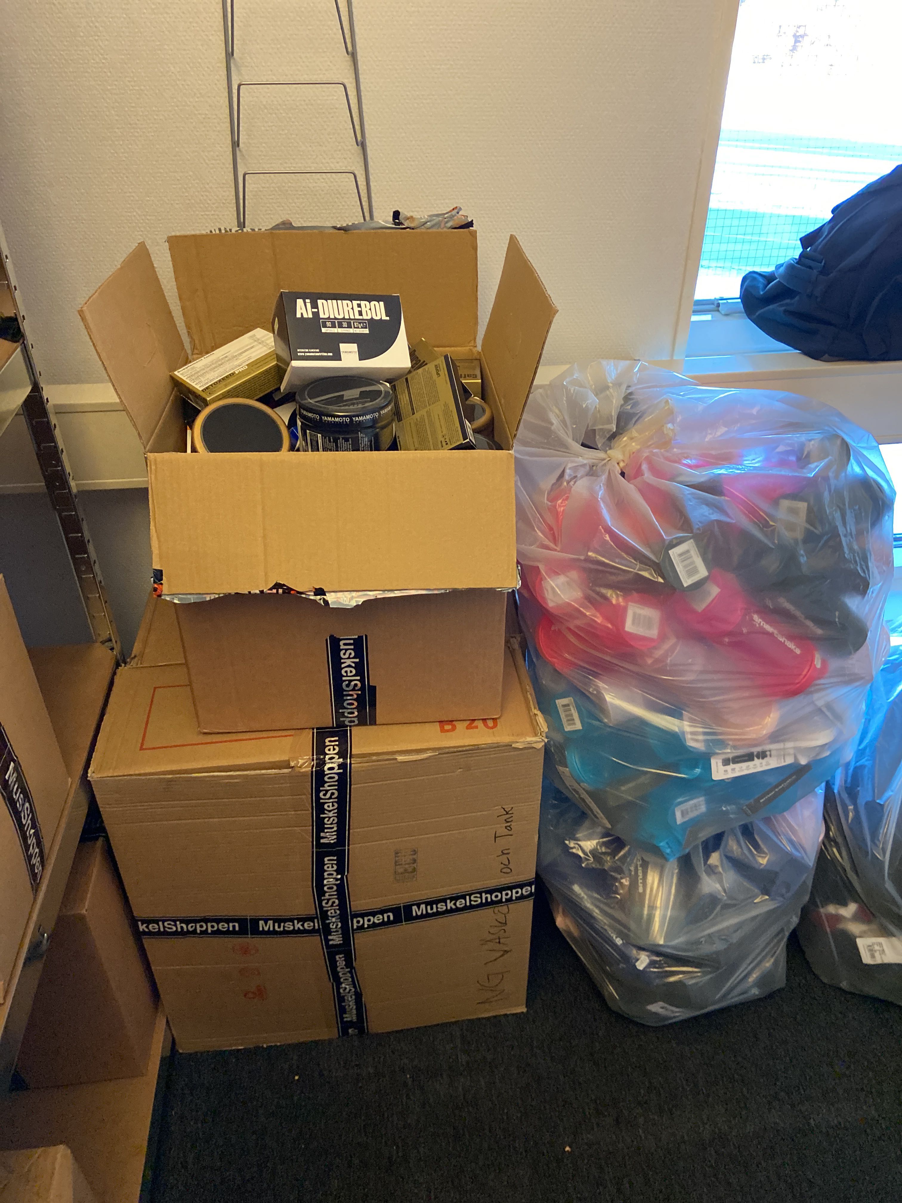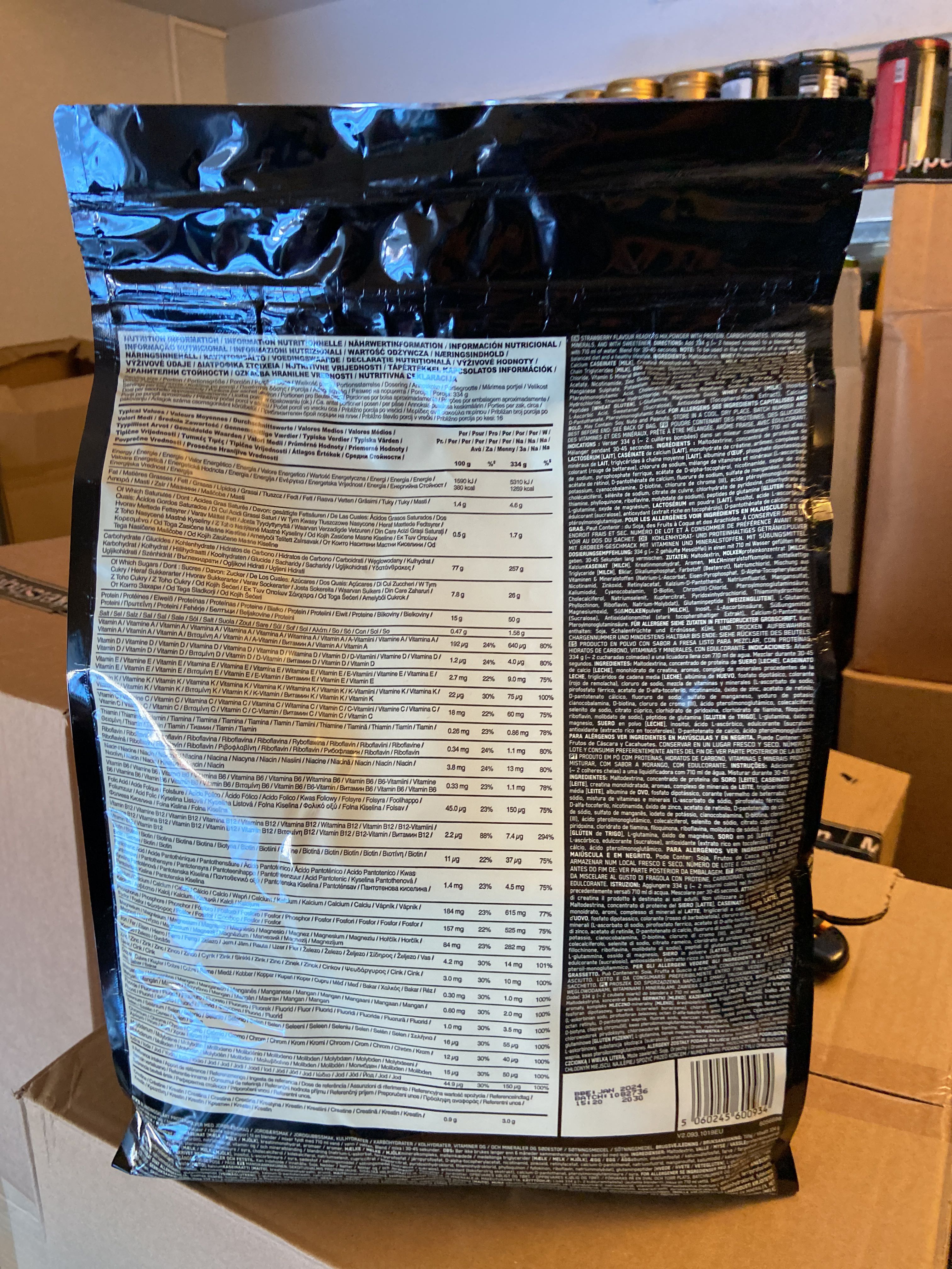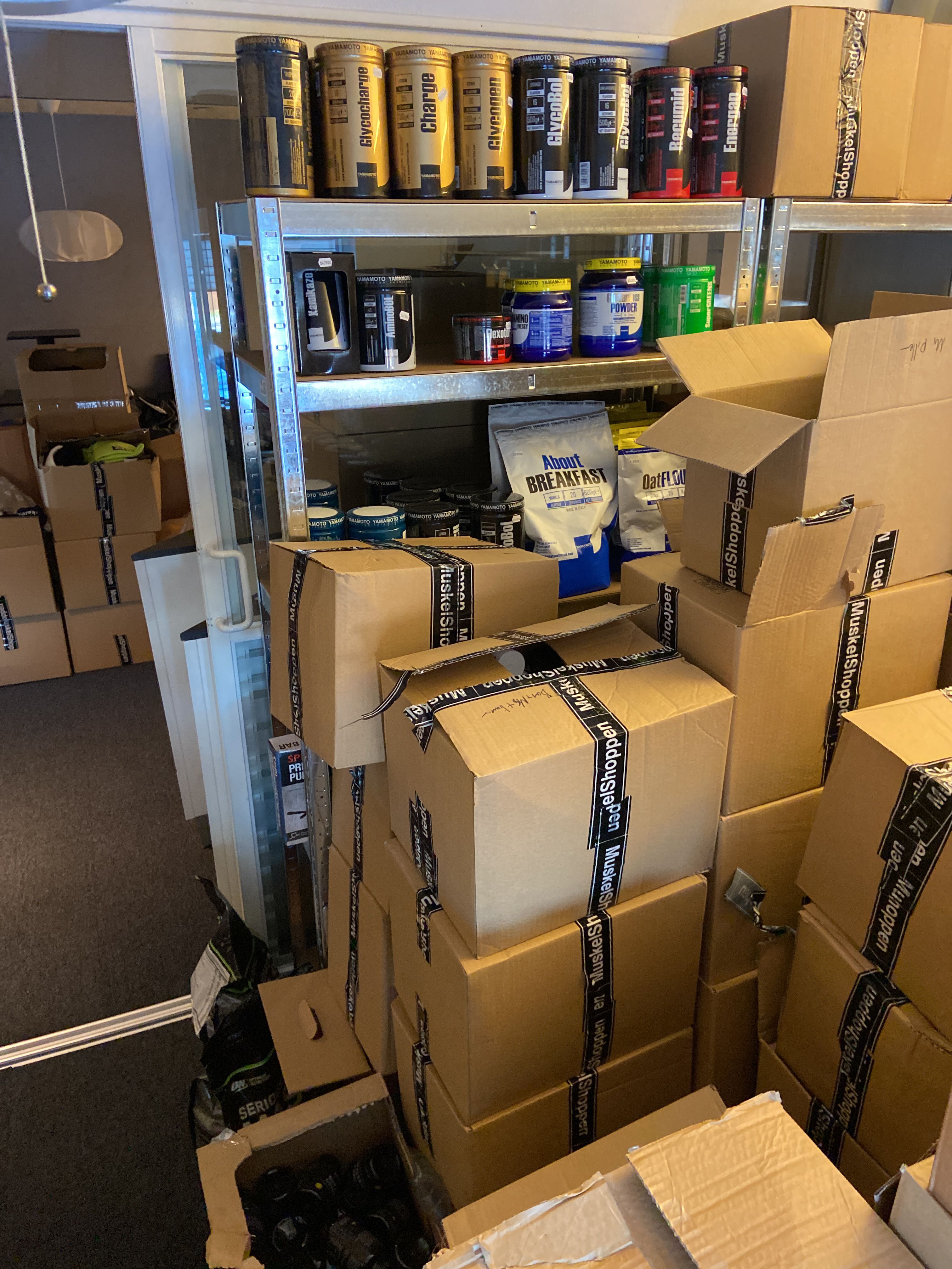 The lot contains, among other things, BCAA, EAA, Protein powder, PWO, Glycocharge, Gainers, Glutamine, Casein, Vitamins & minerals, Carbohydrate, CLA, HMB etc.