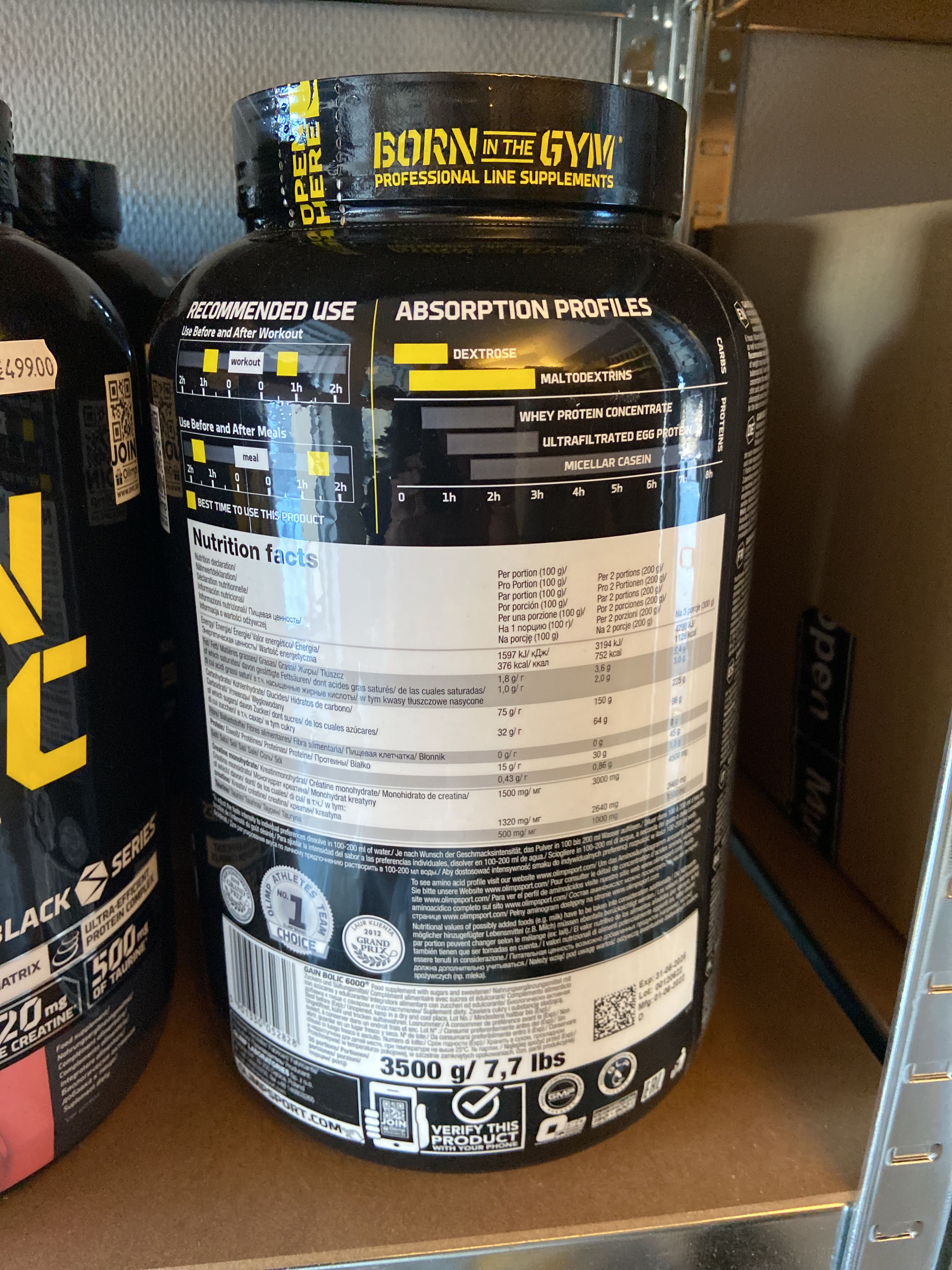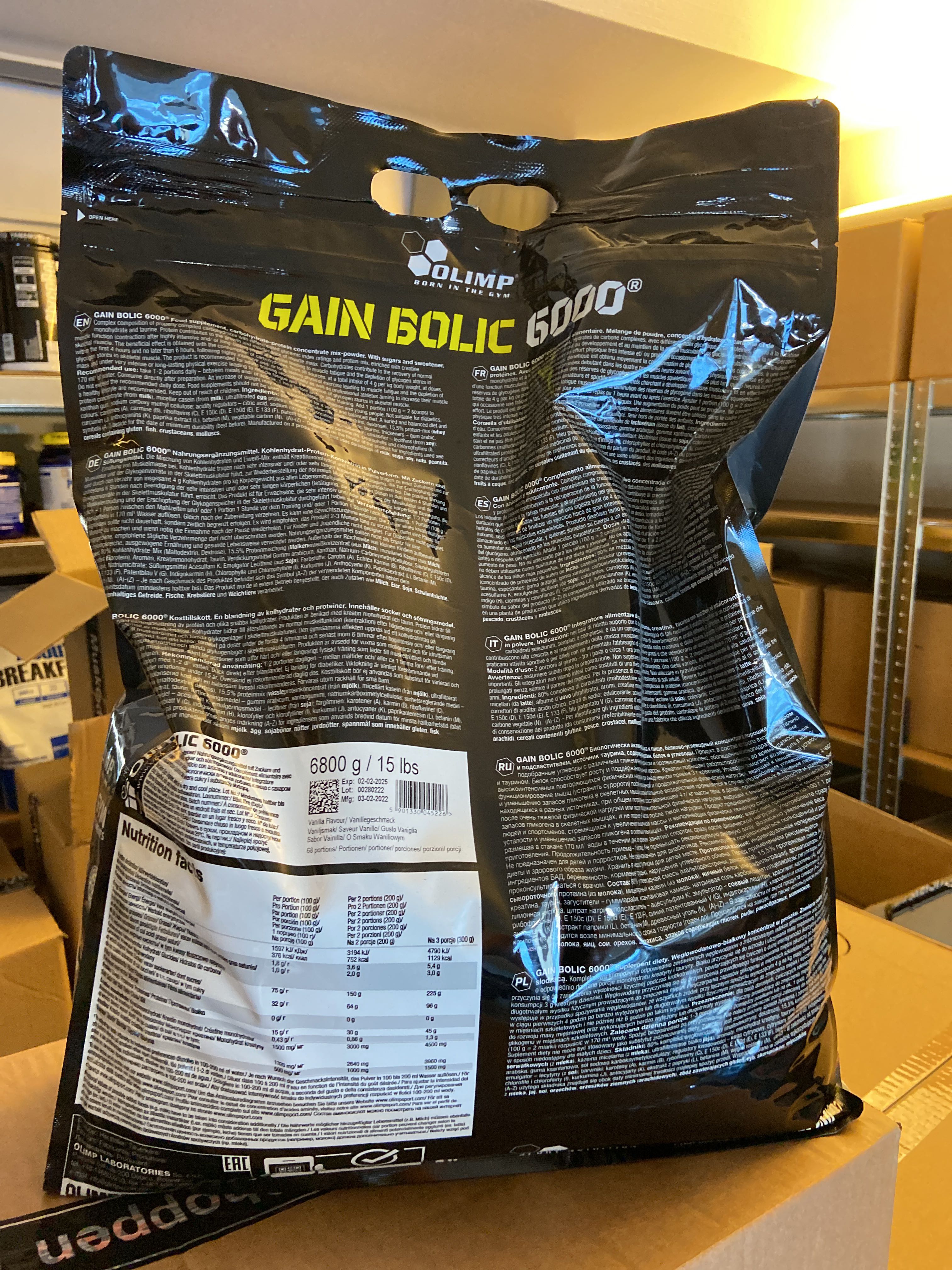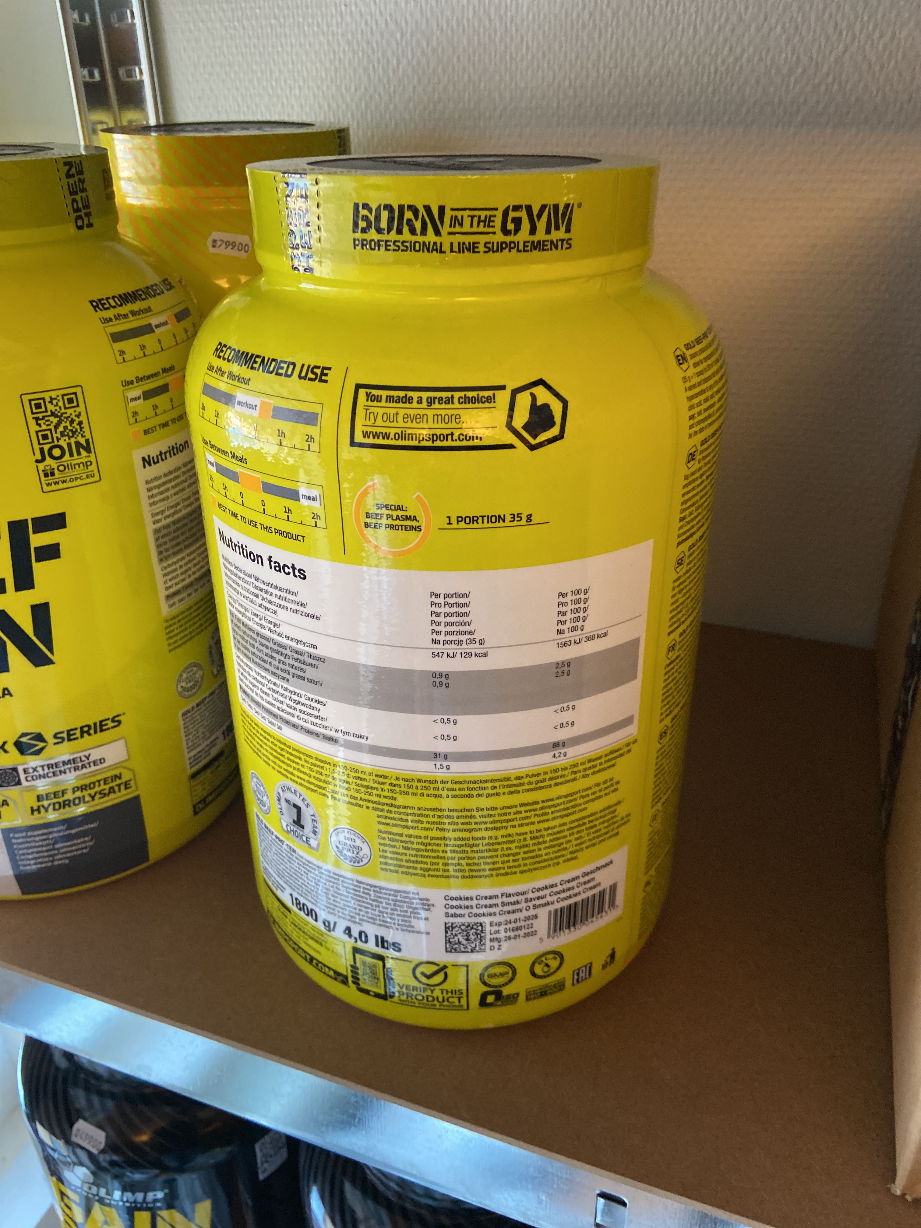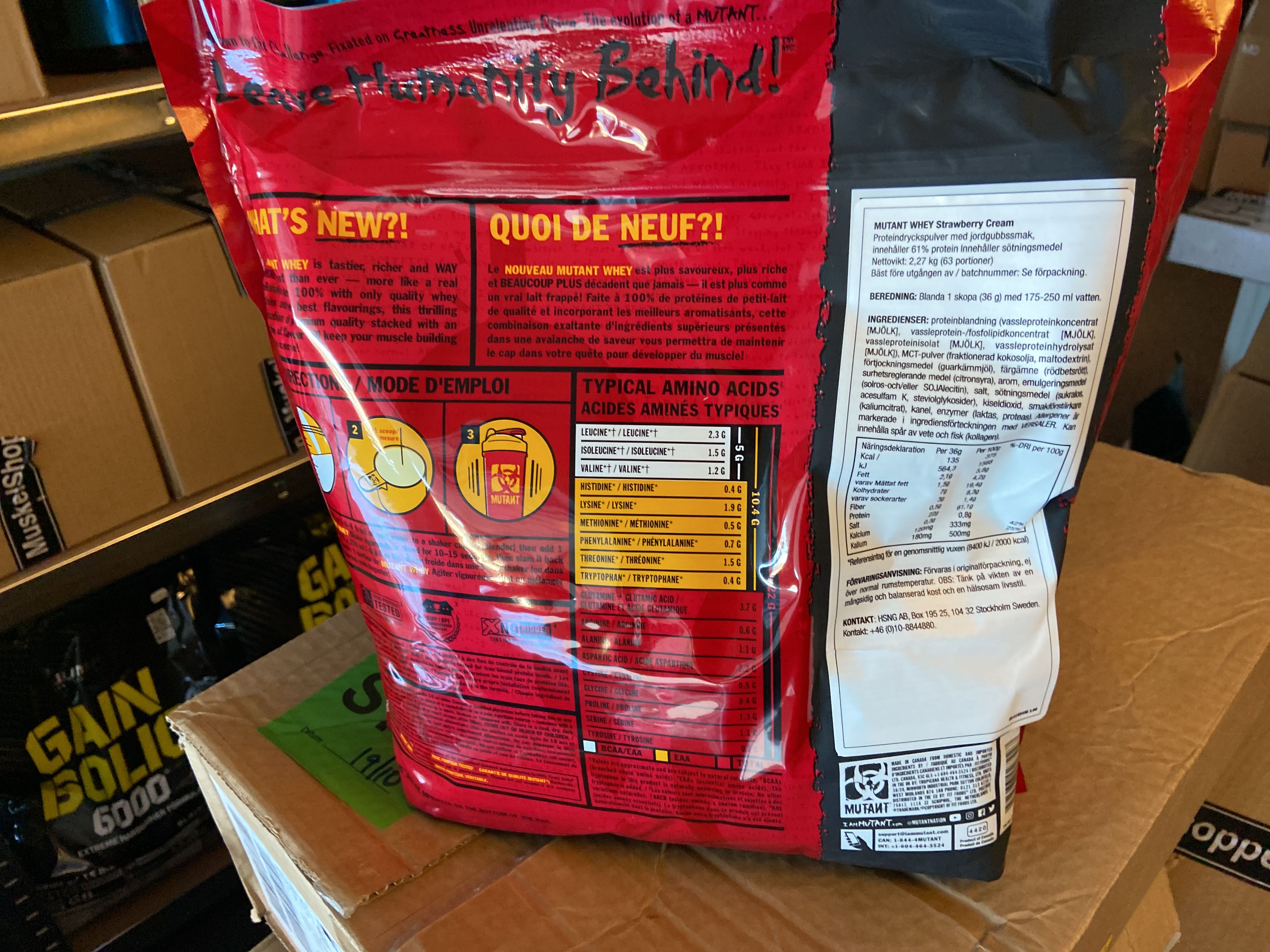 The lot contains, among other things, BCAA, EAA, Protein powder, PWO, Glycocharge, Gainers, Glutamine, Casein, Vitamins & minerals, Carbohydrate, CLA, HMB etc.