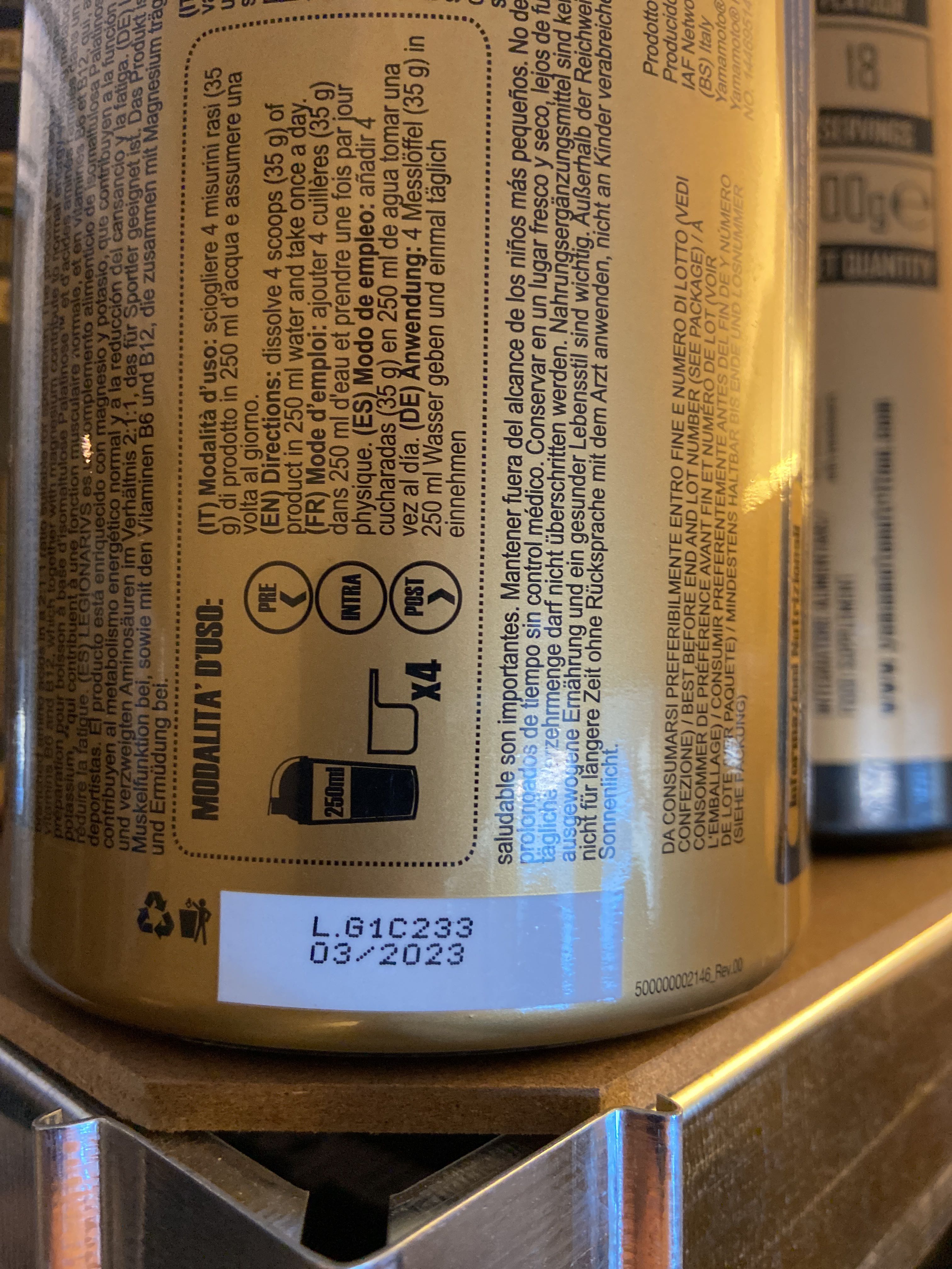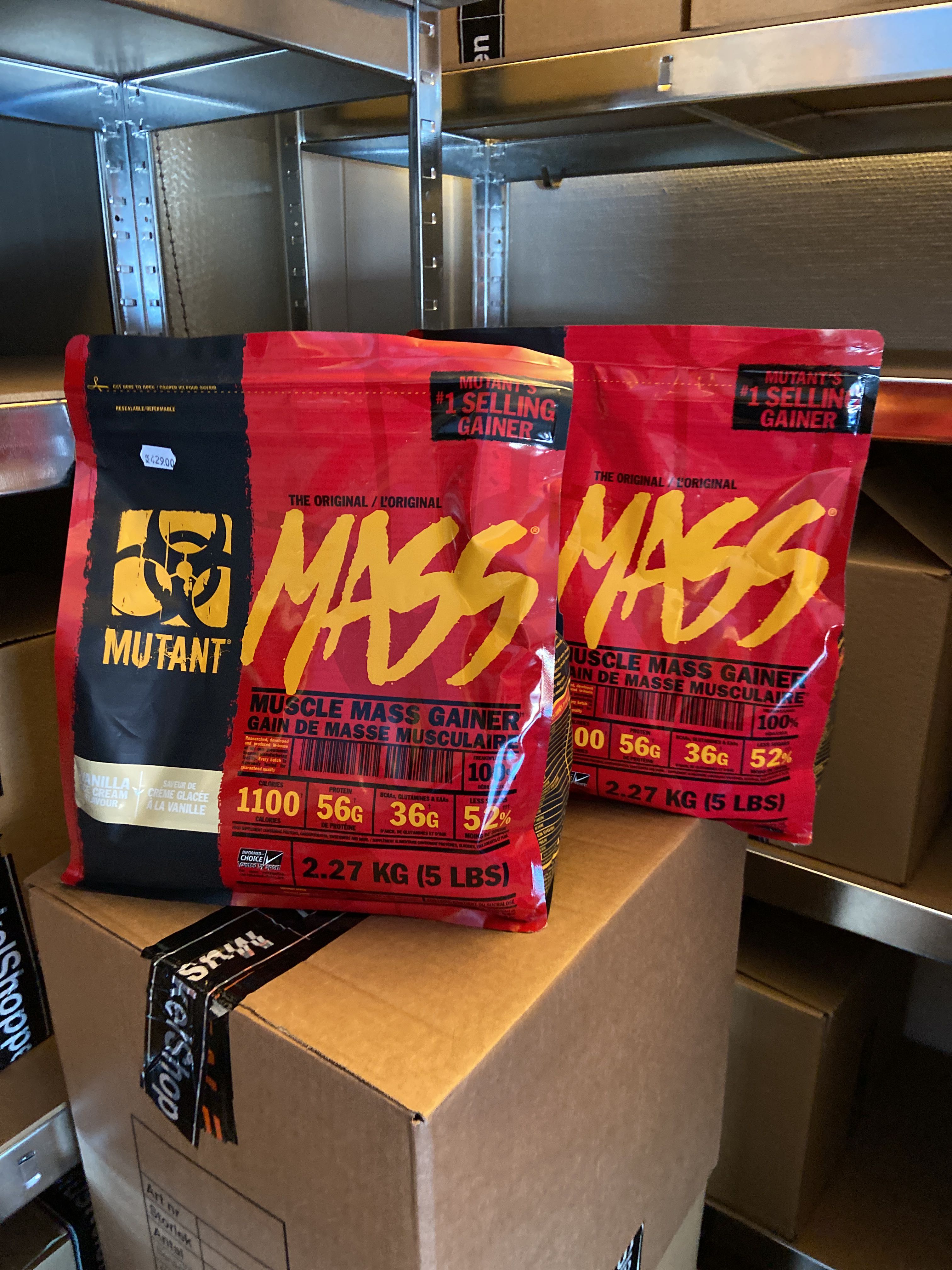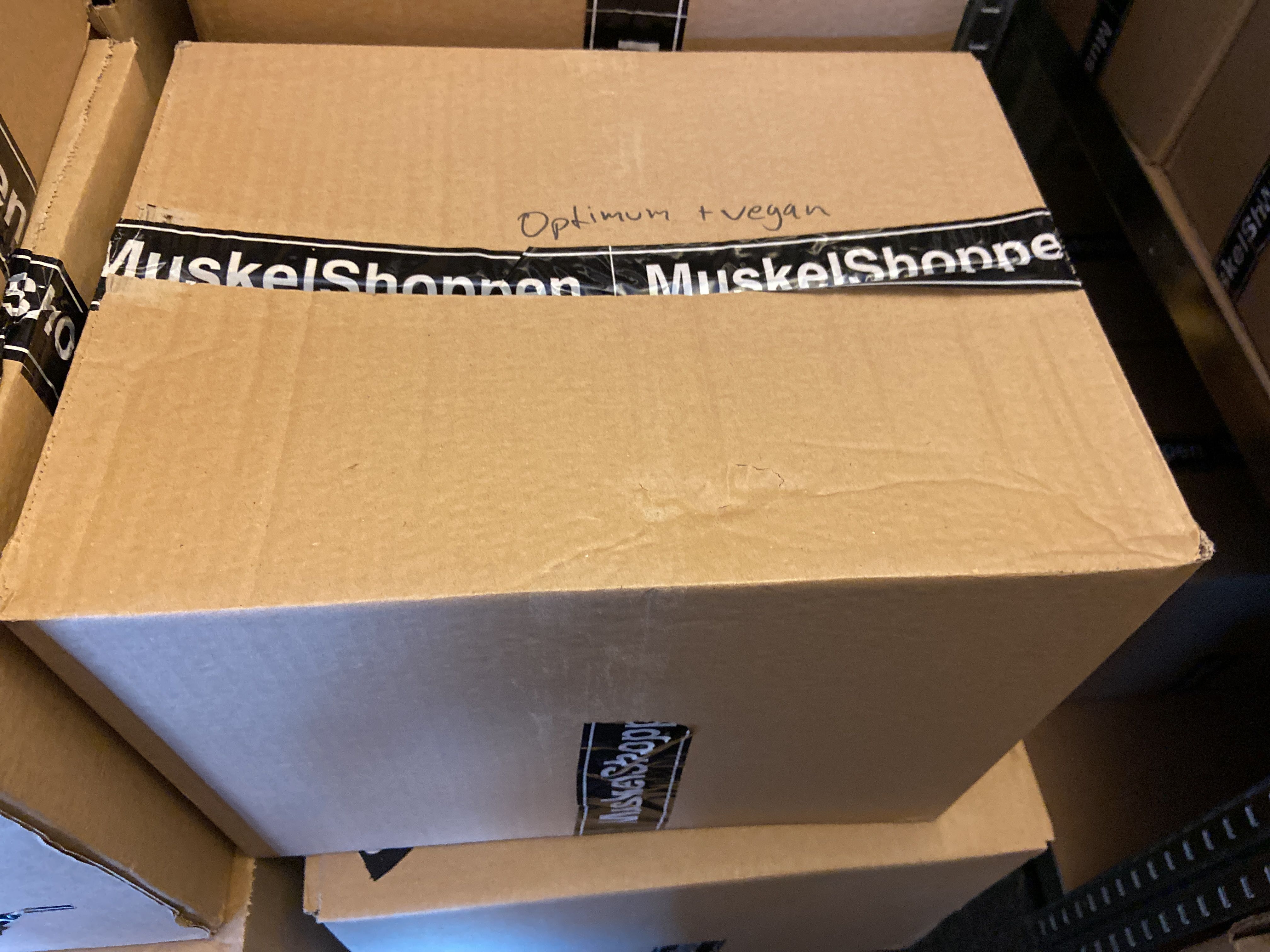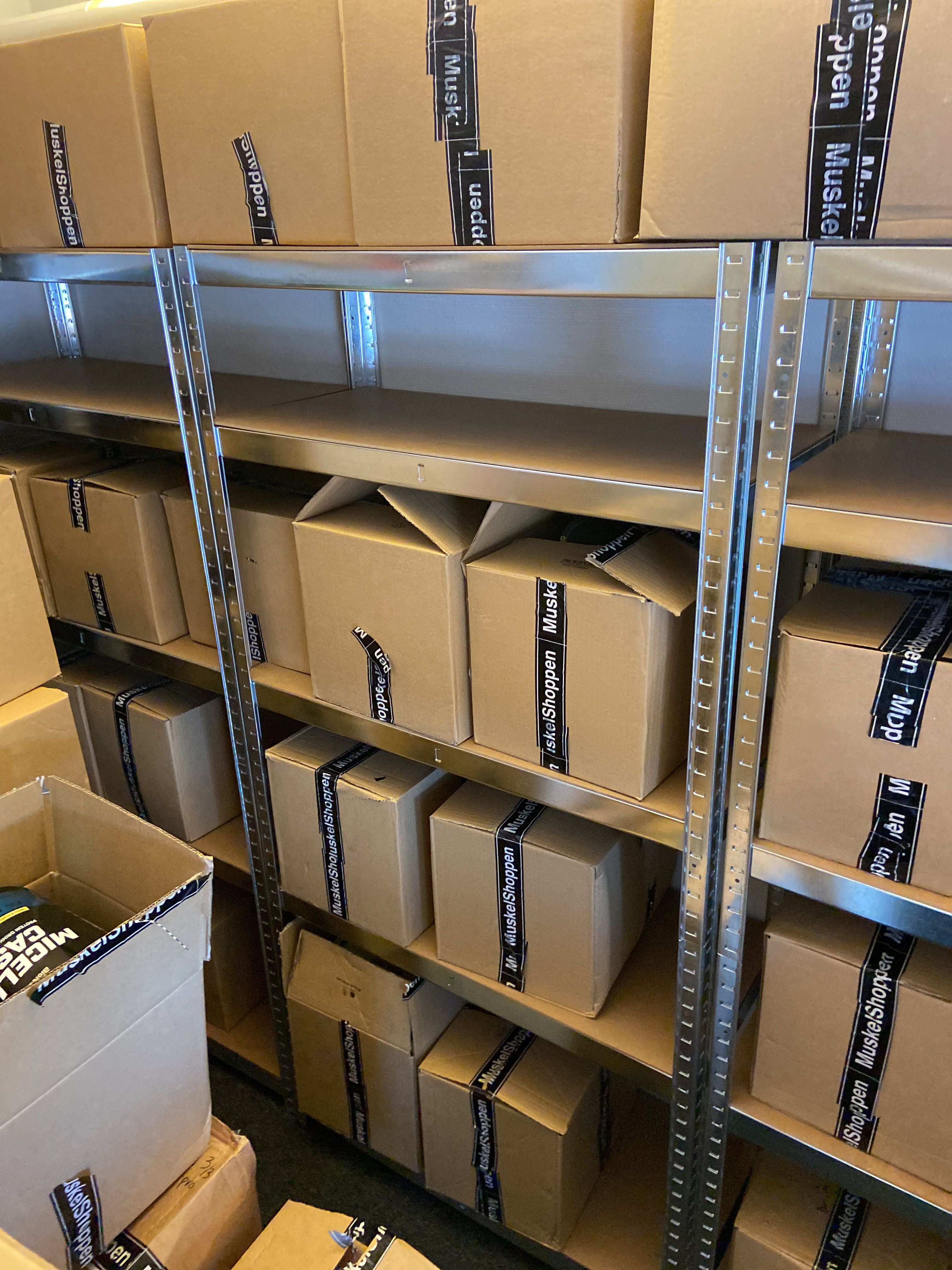 Large batch of nutritional supplements for strength-oriented sports.