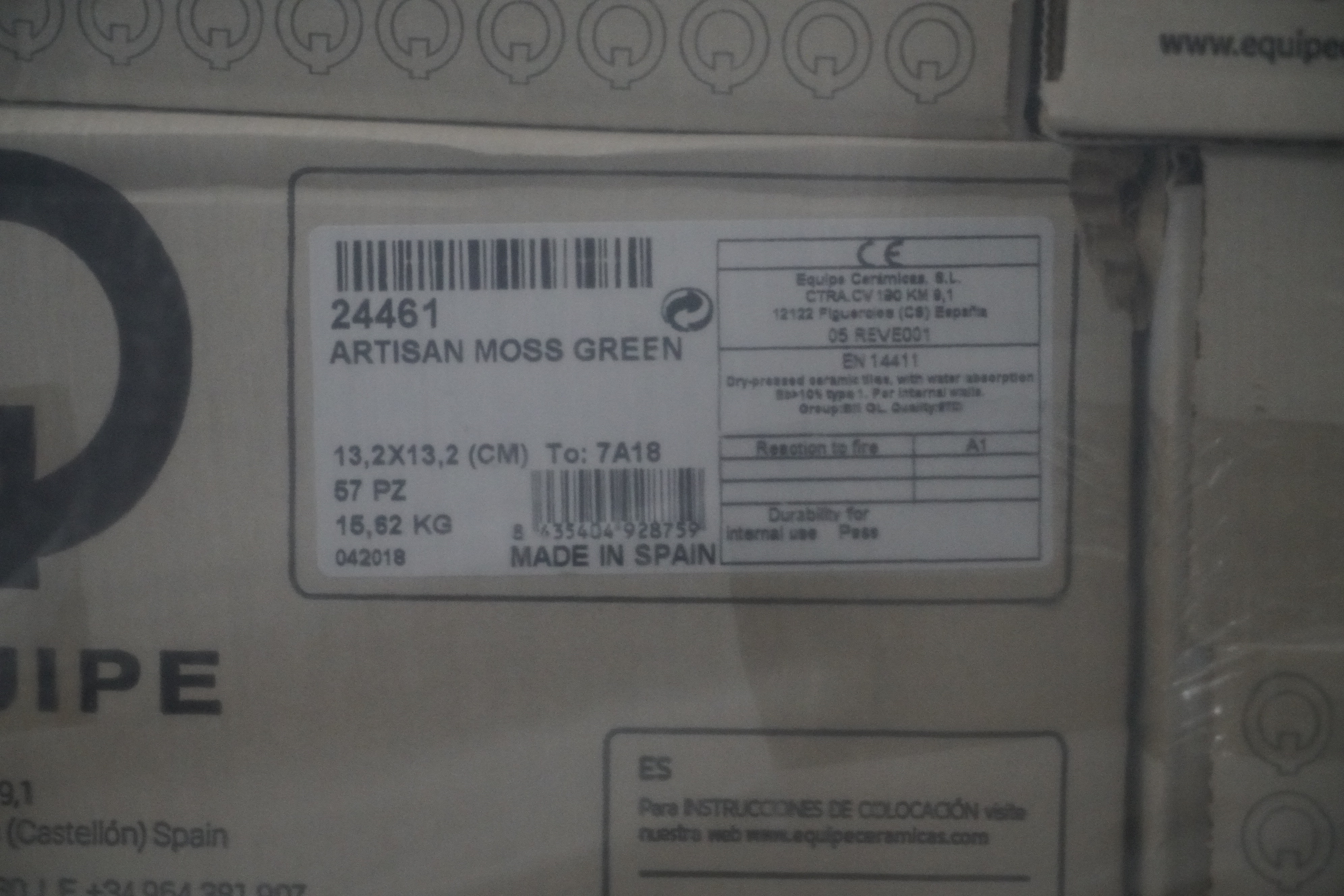60 cartons of tile artisan moss green 13.2x13.2cm