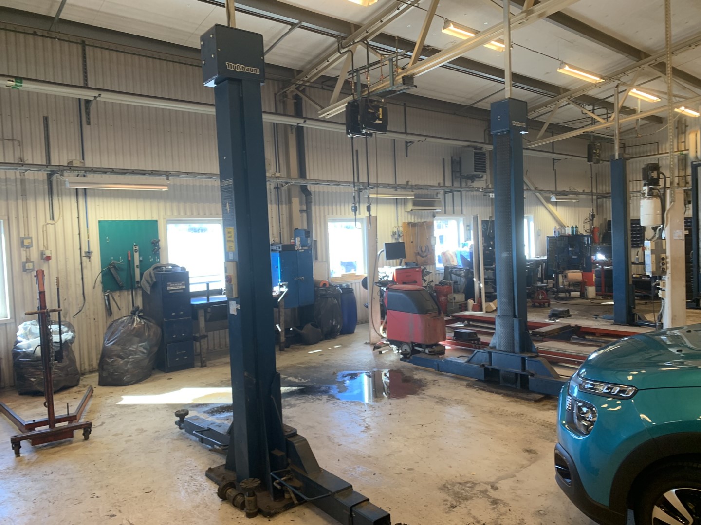 Drive in through the post office's gate, the workshop is at the far end of the yard
