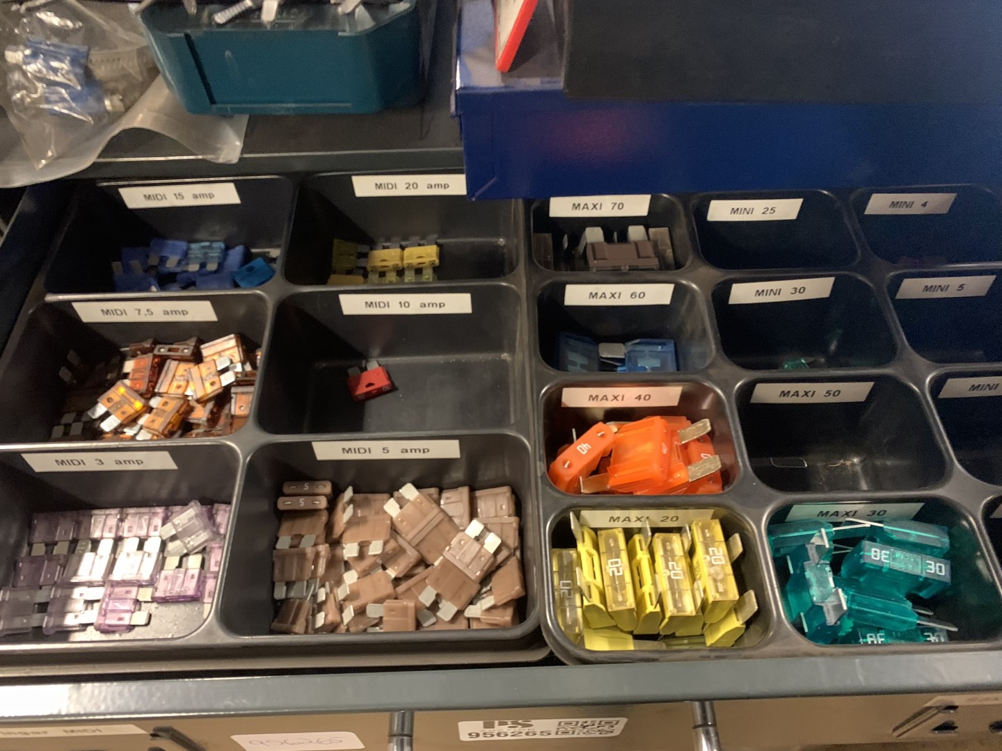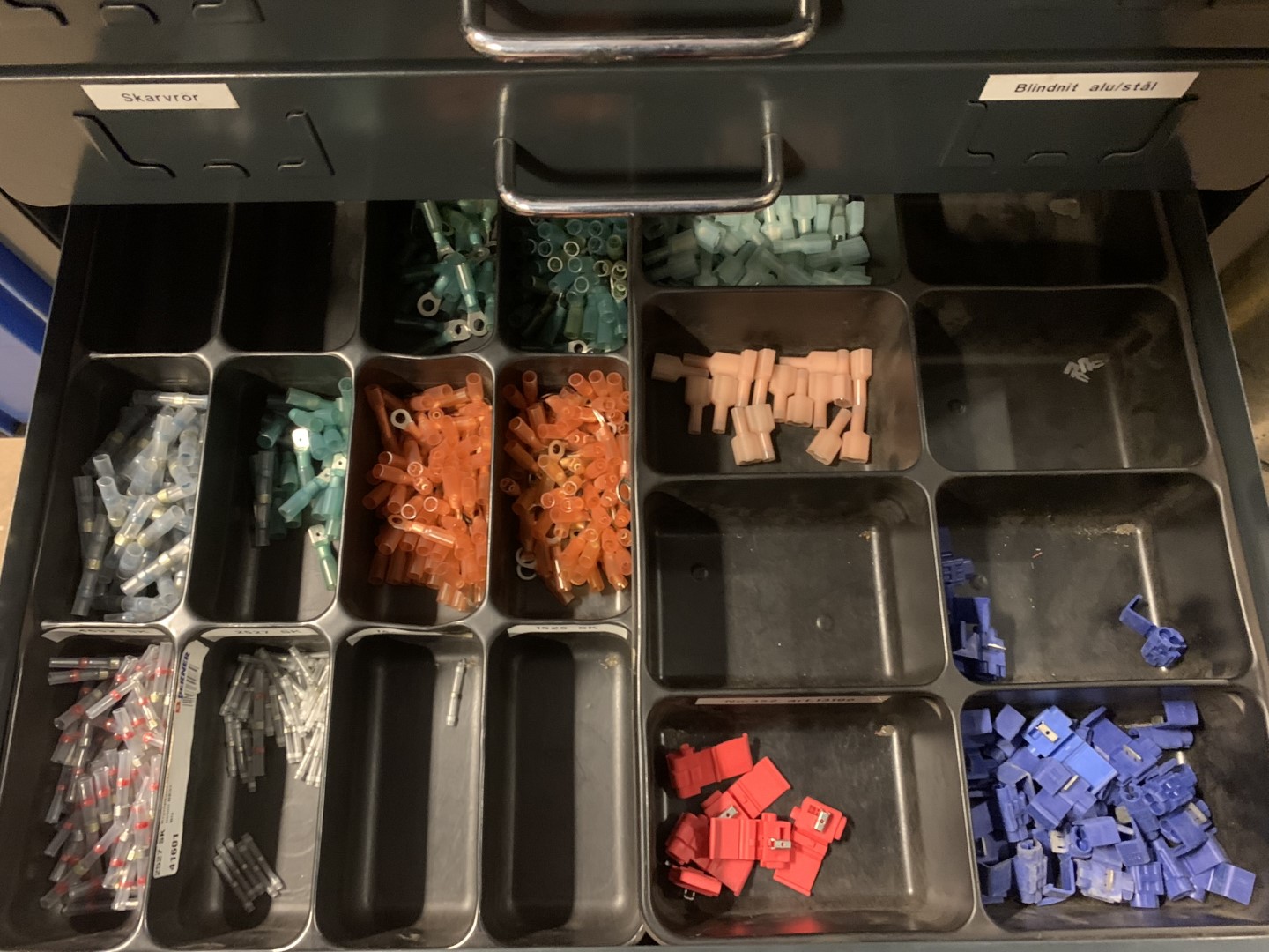 Assortment cabinet Berner with fuses, drills, cable lugs etc. (new pictures)