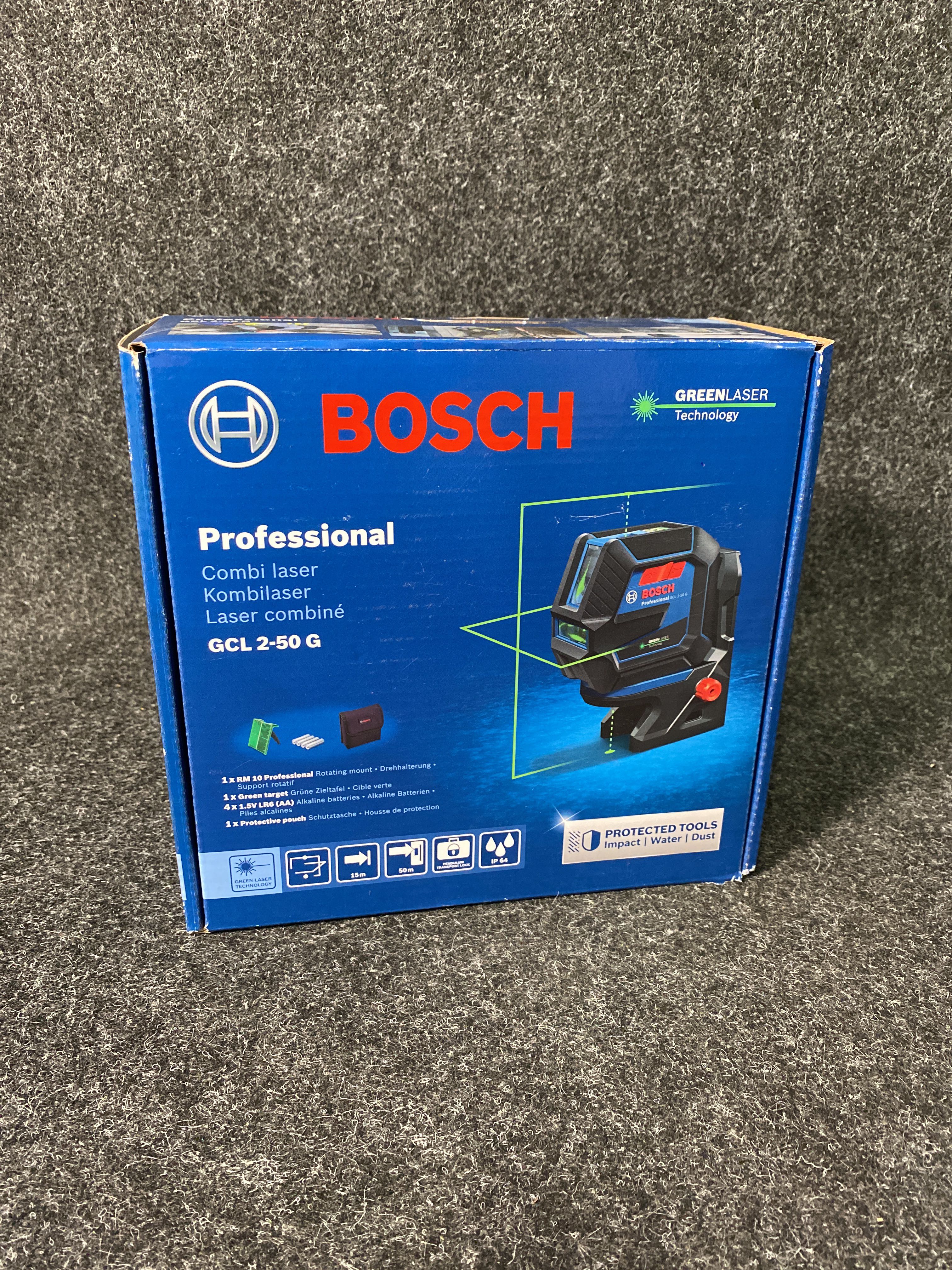 Combi laser for the construction site. With a working range of up to 15 meters, can be extended up to 50 m with the optional laser receiver LR 7 Professional. The green laser beam has laser class 2.