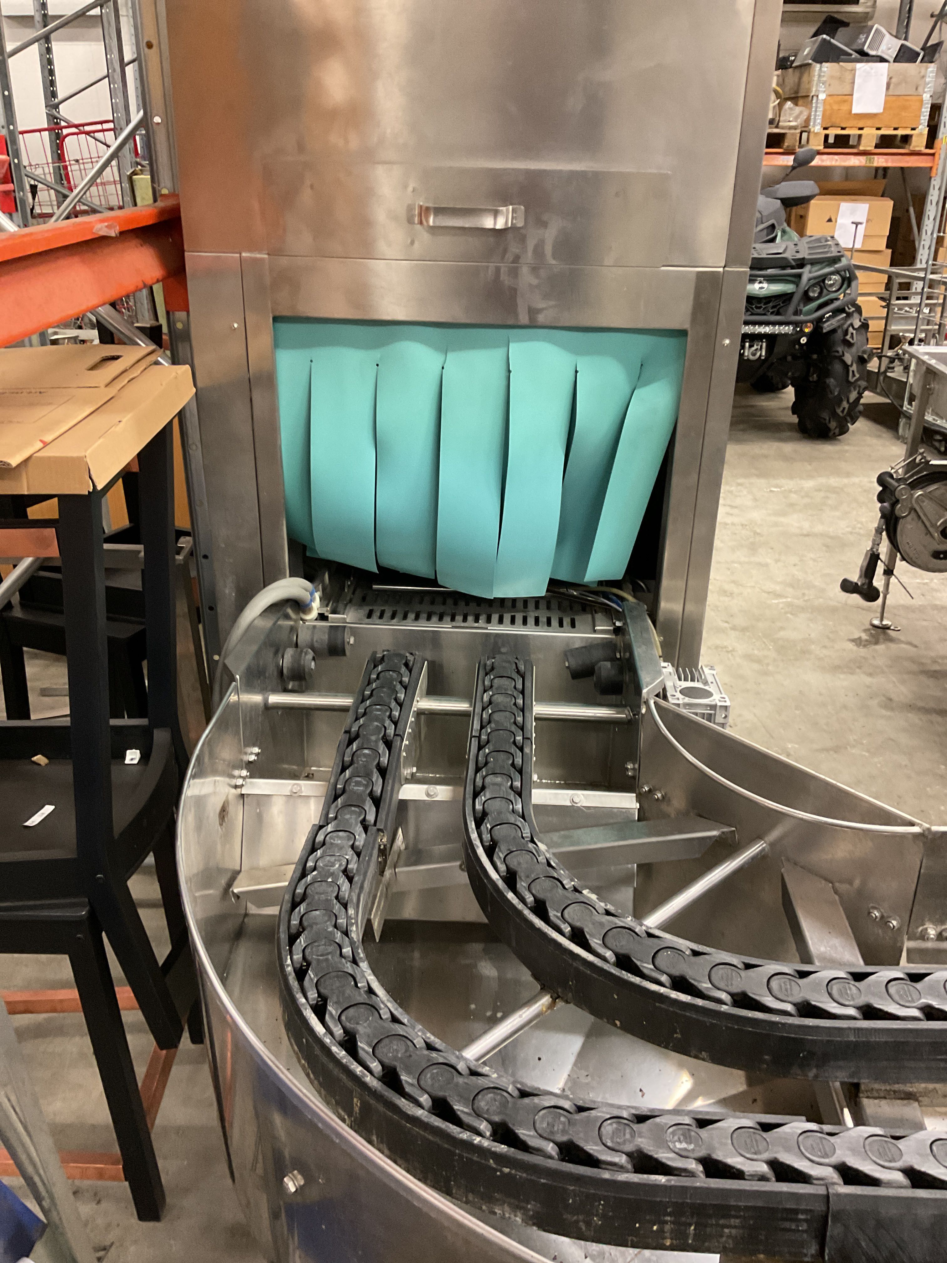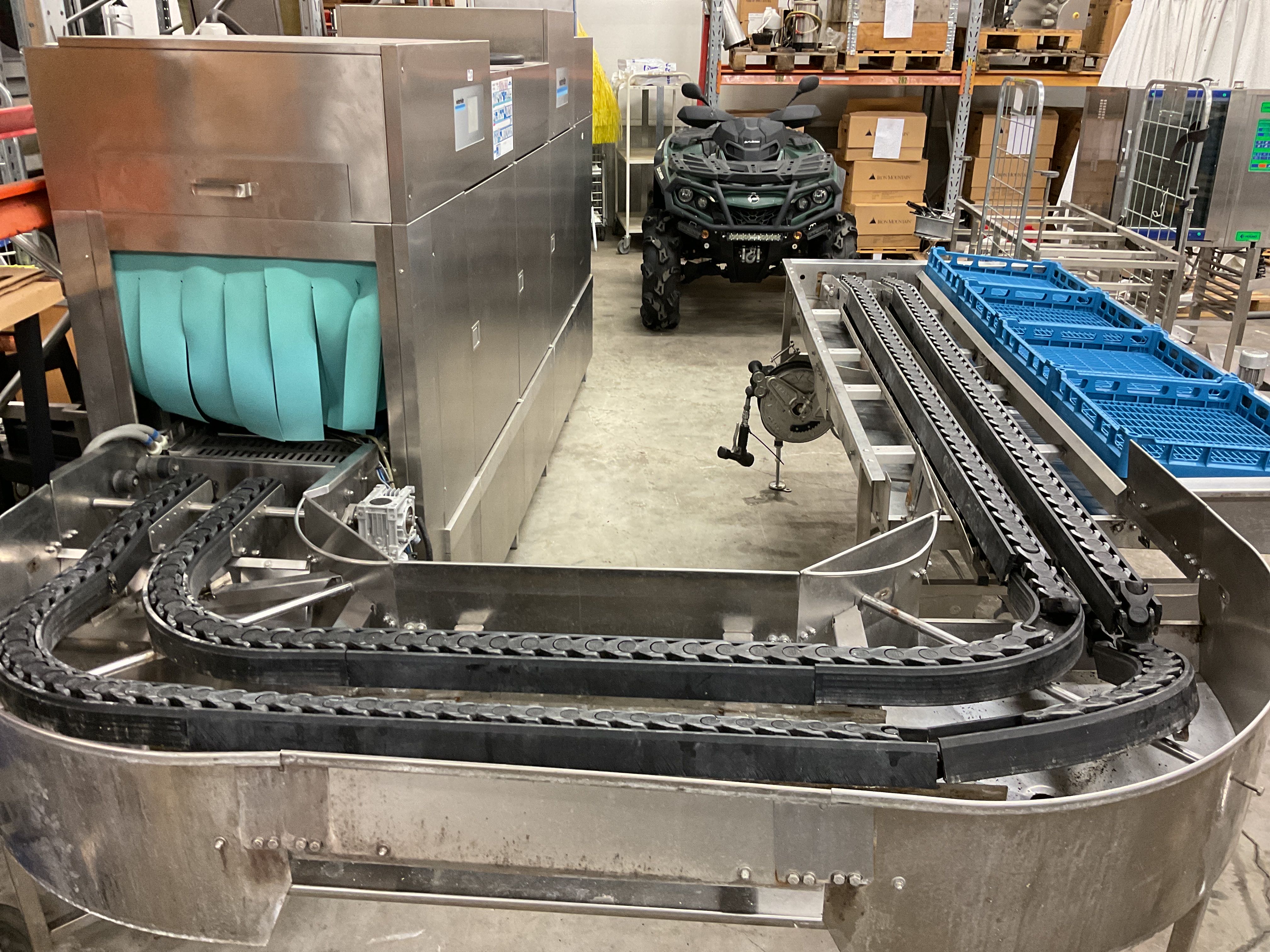 Tunnel dishwasher with large drying bench industrial sink complete dishwashing system 180 degree curve Max power 35.8 kw.