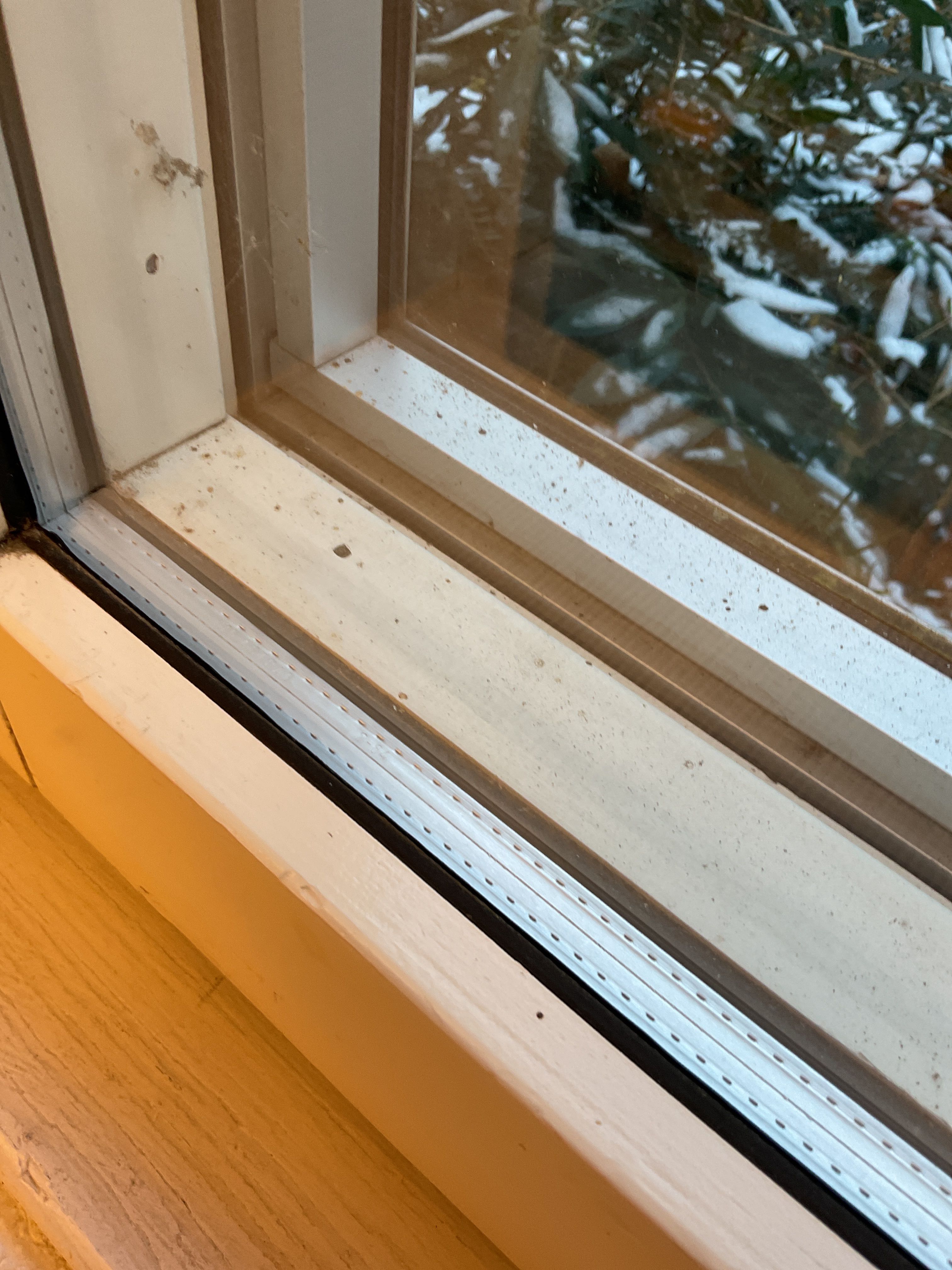 White wooden interior and gray aluminum exterior