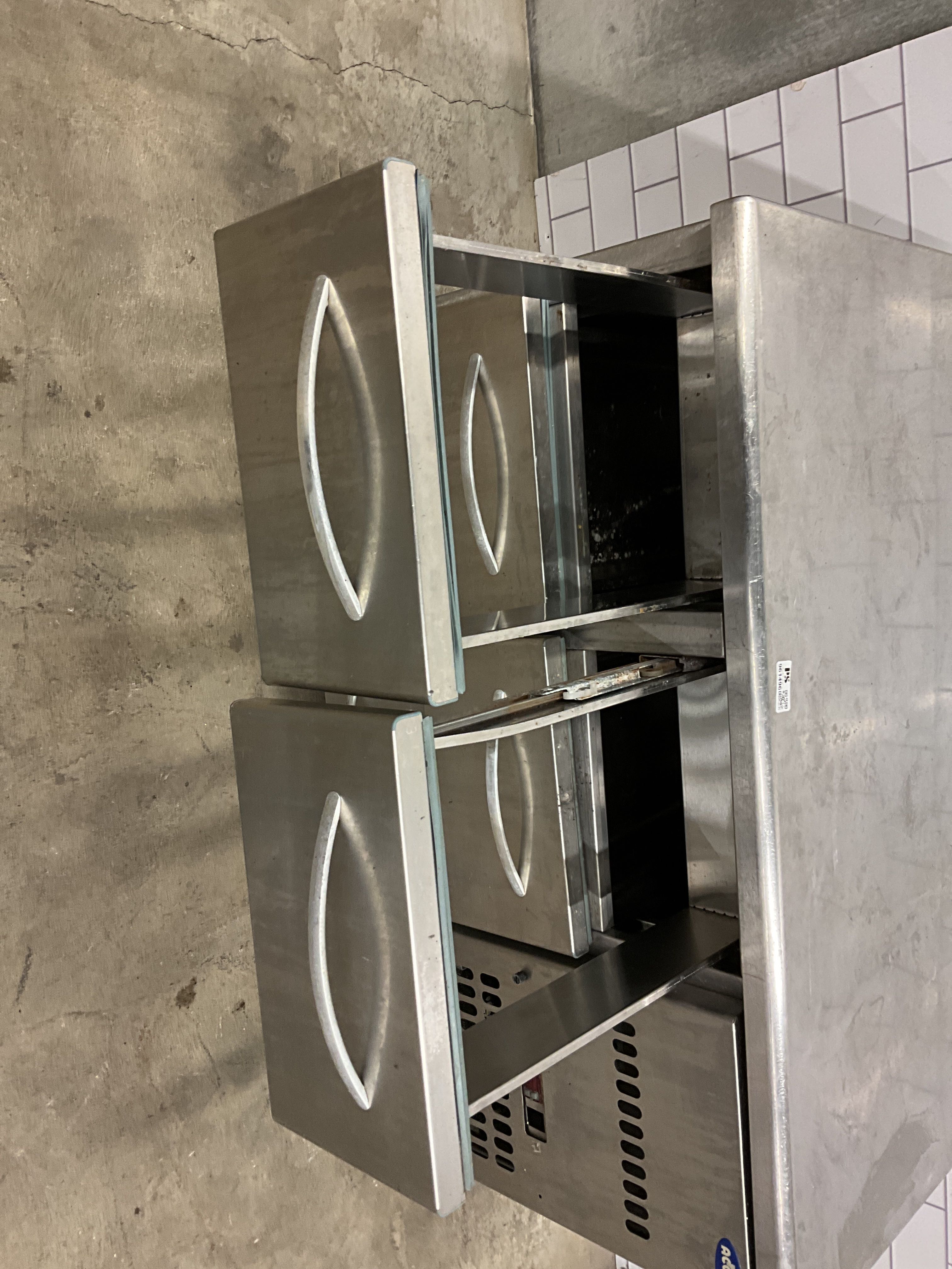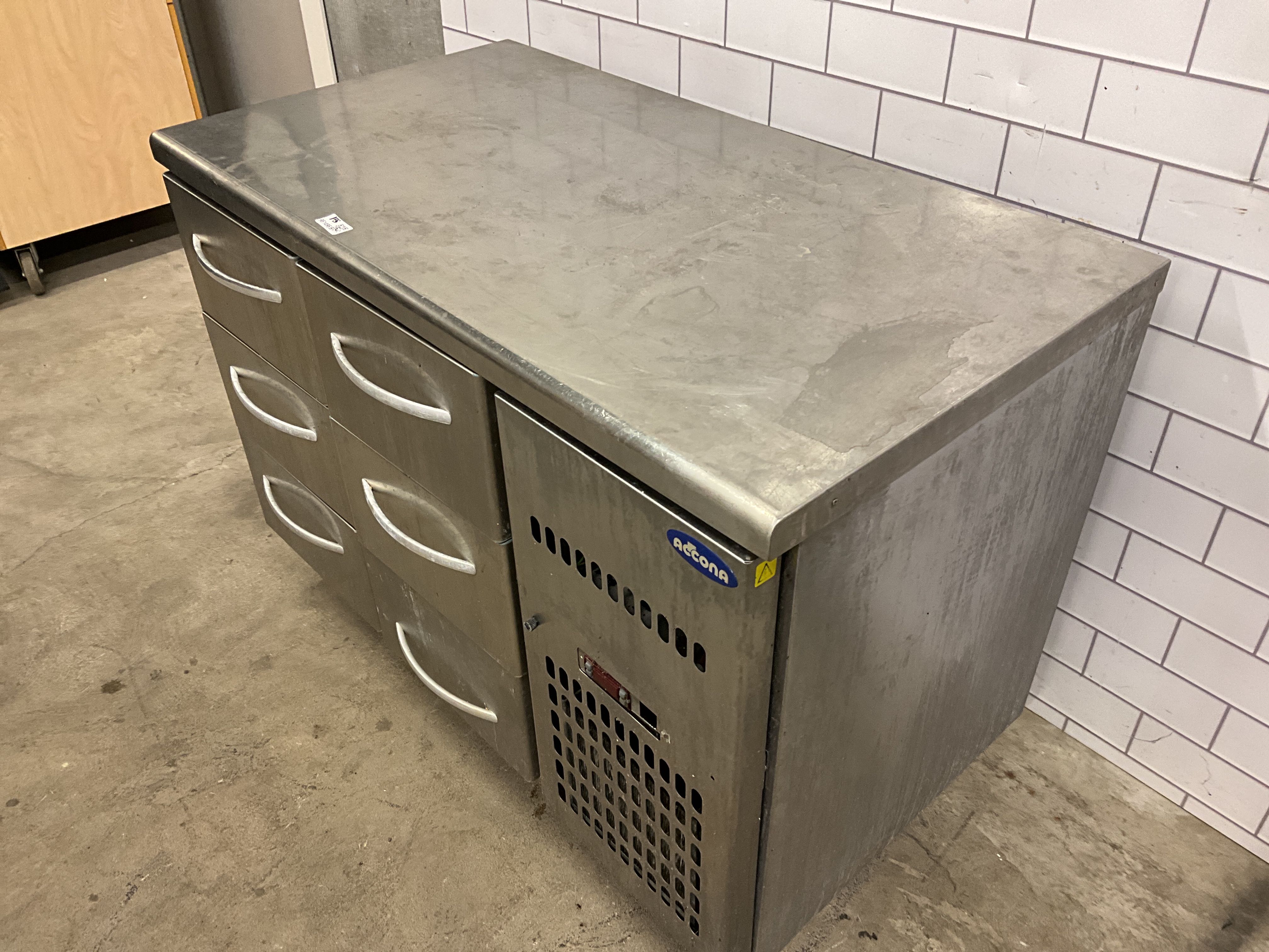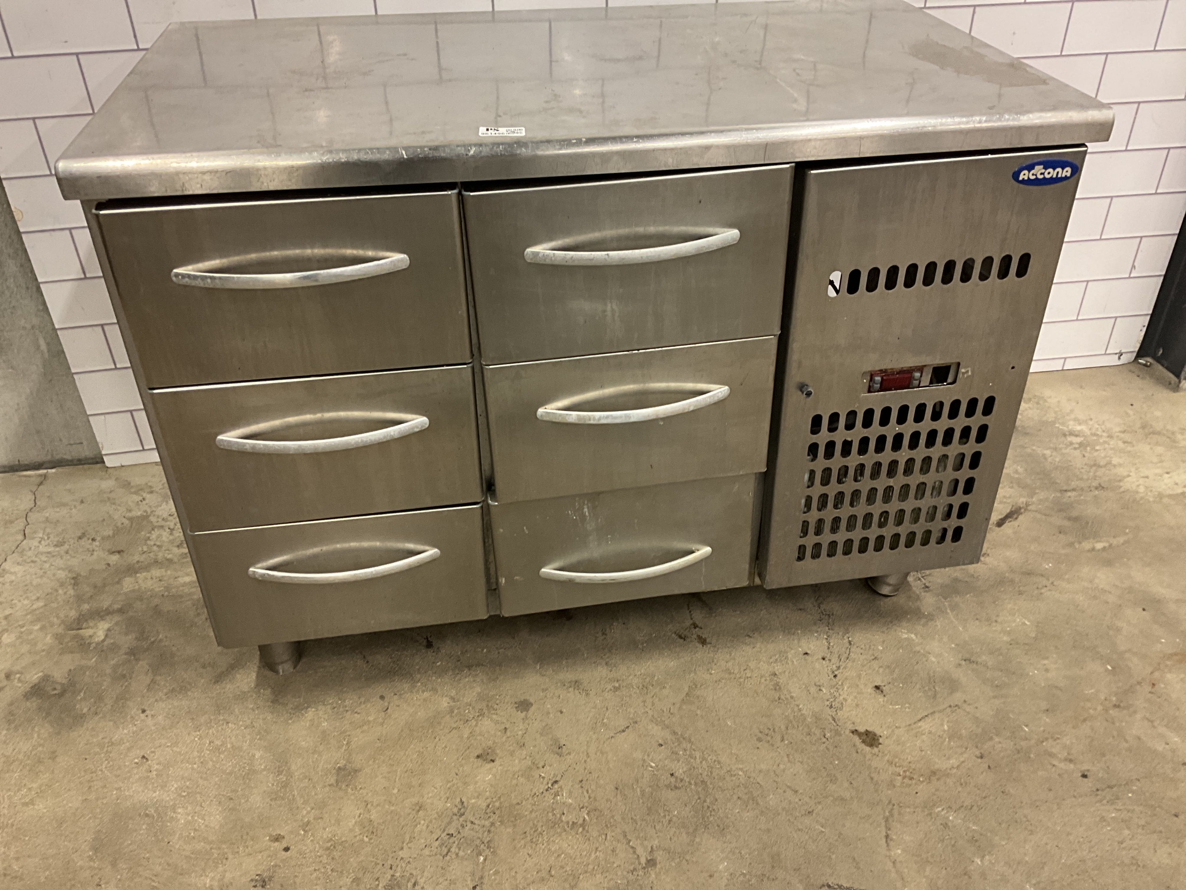 Refrigerator with six drawers ACONA Dimensions 65Dx120W cm. Not tested by the promotional company. "Note" A drawer is crooked.