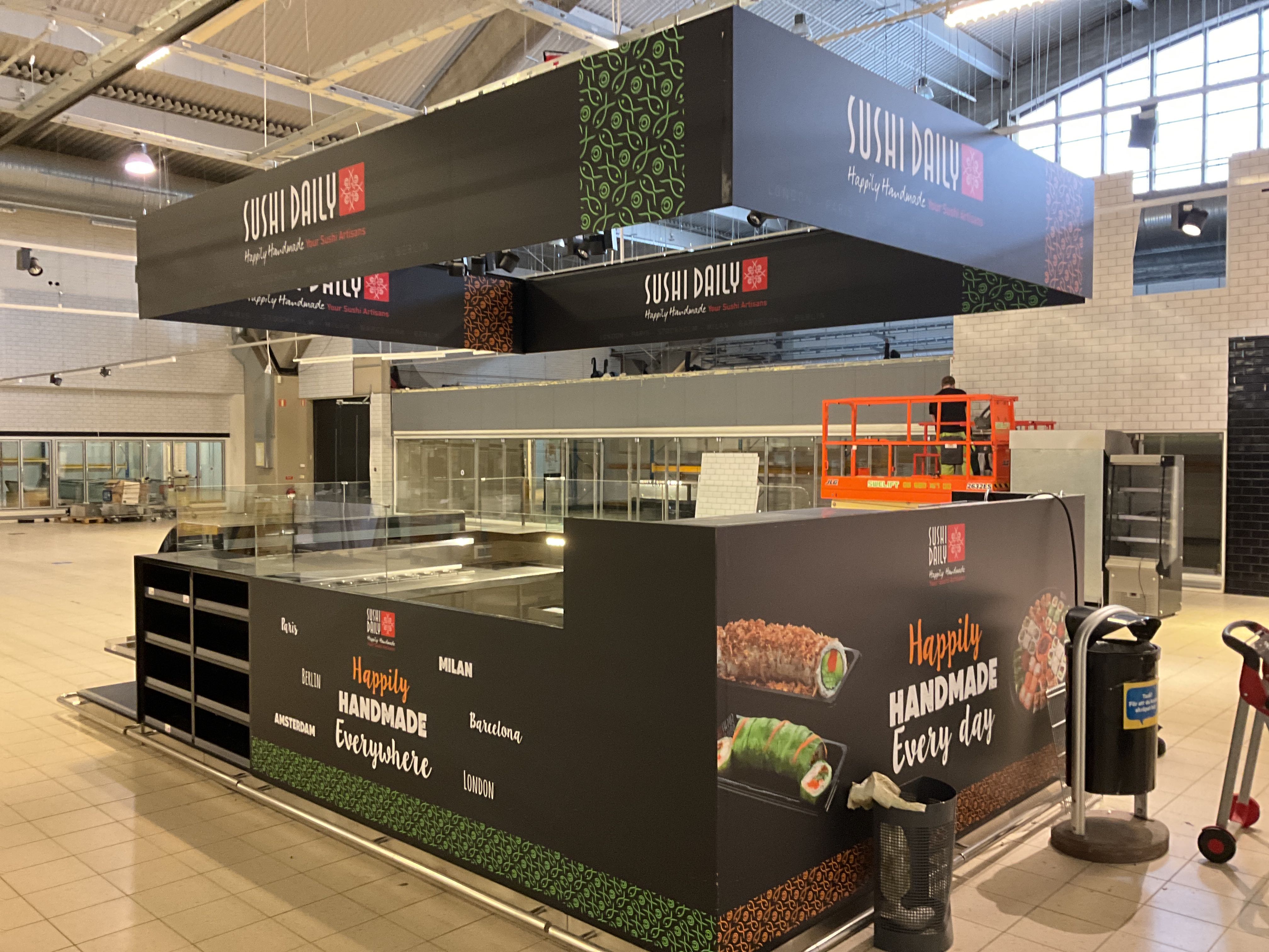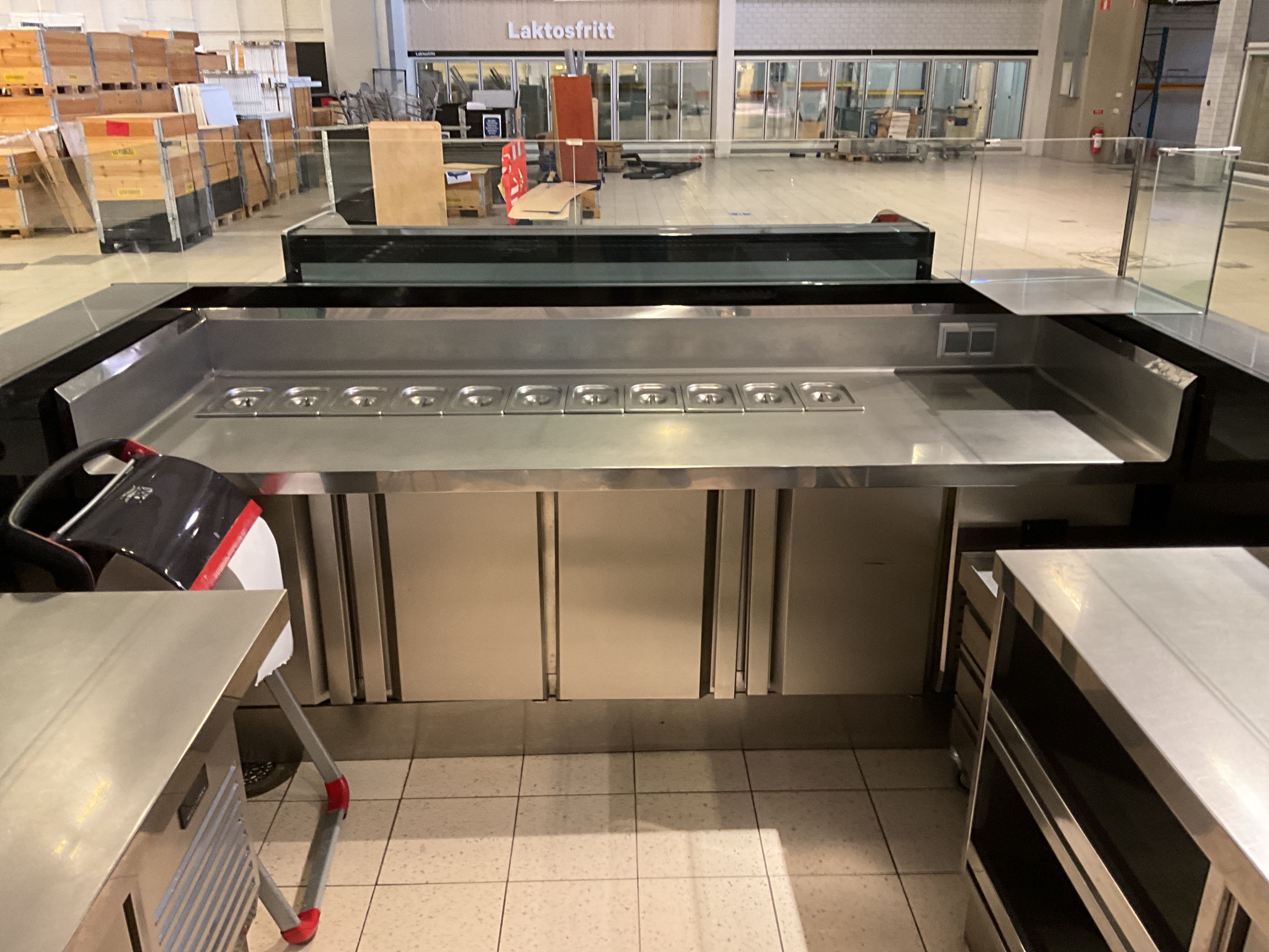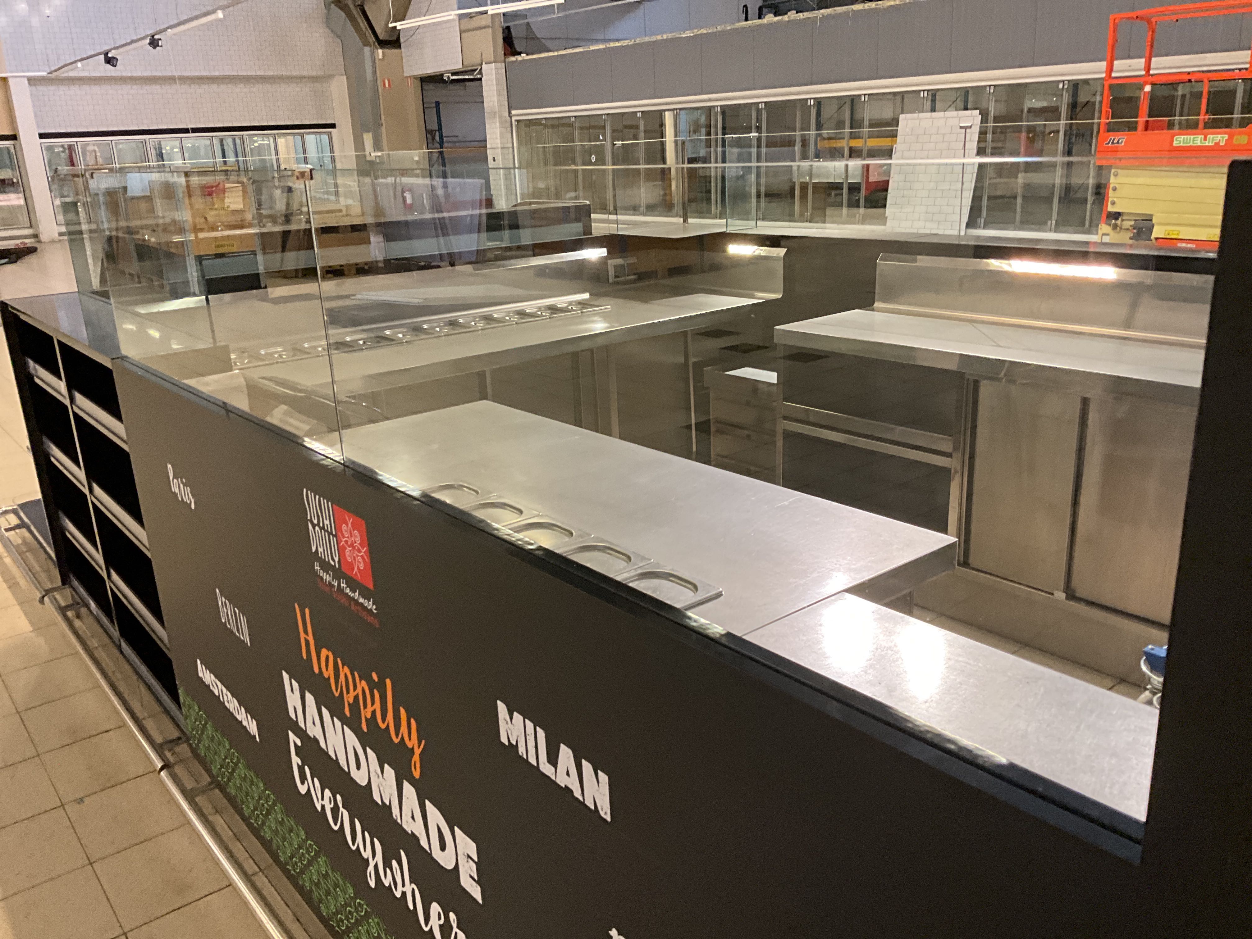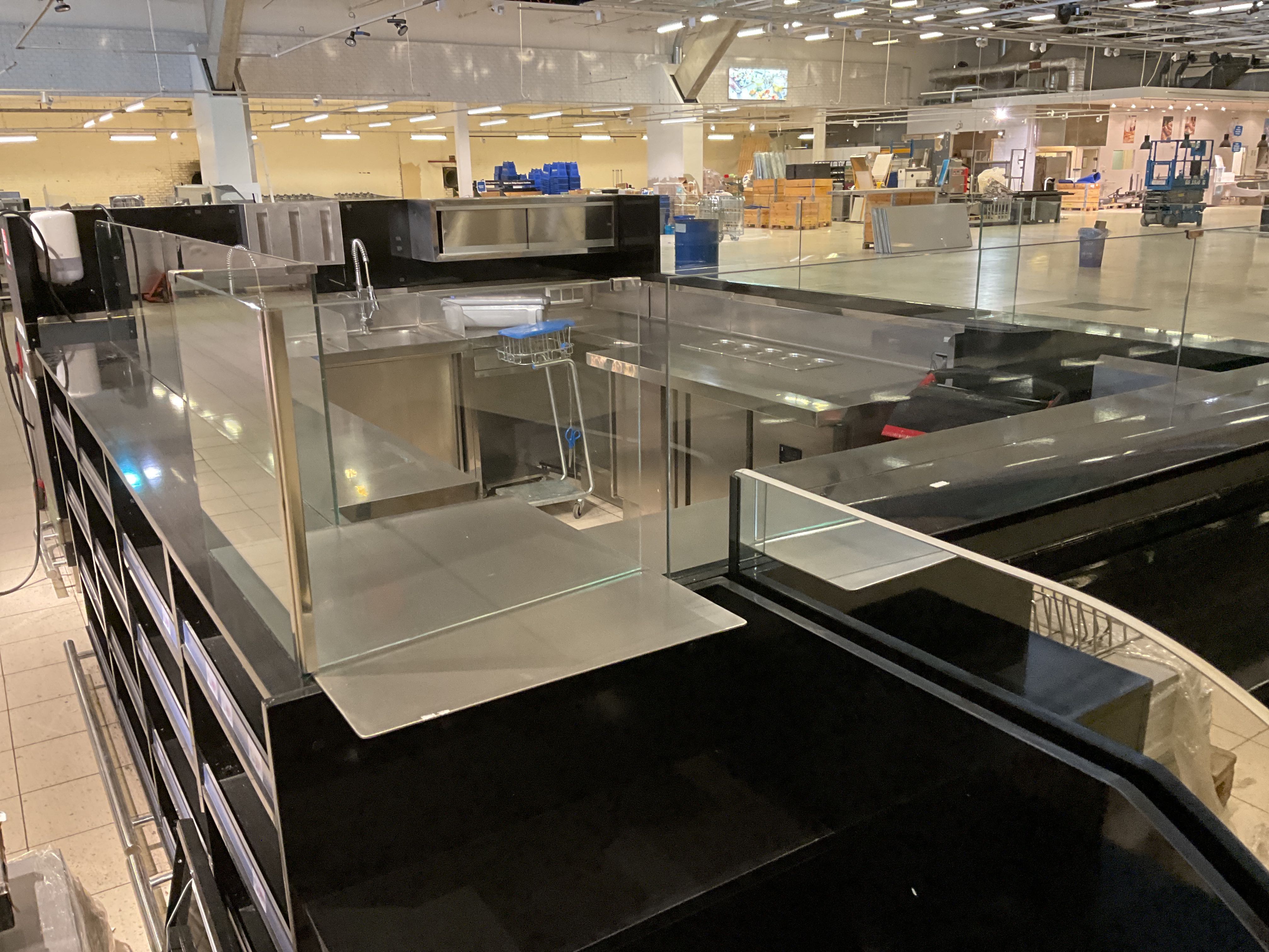 Complete Sushi bar that is built on site in several modules, all furnishings included, refrigerators/refrigerators, sink and shelves, workbench, walls with glass, etc. see pictures