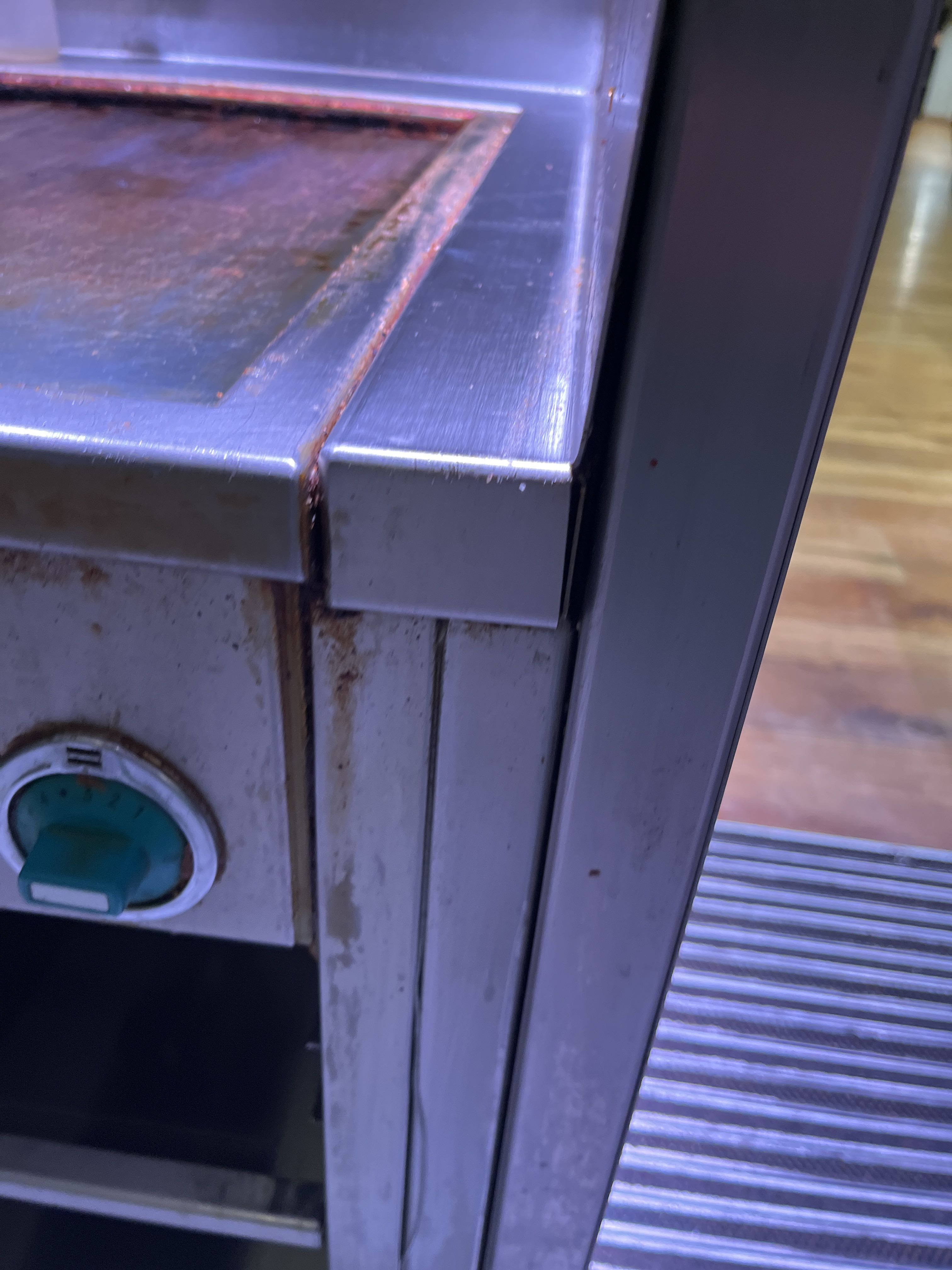 Work surface with cooling compartment, cooling bench with drawers, grill table with two grill plates