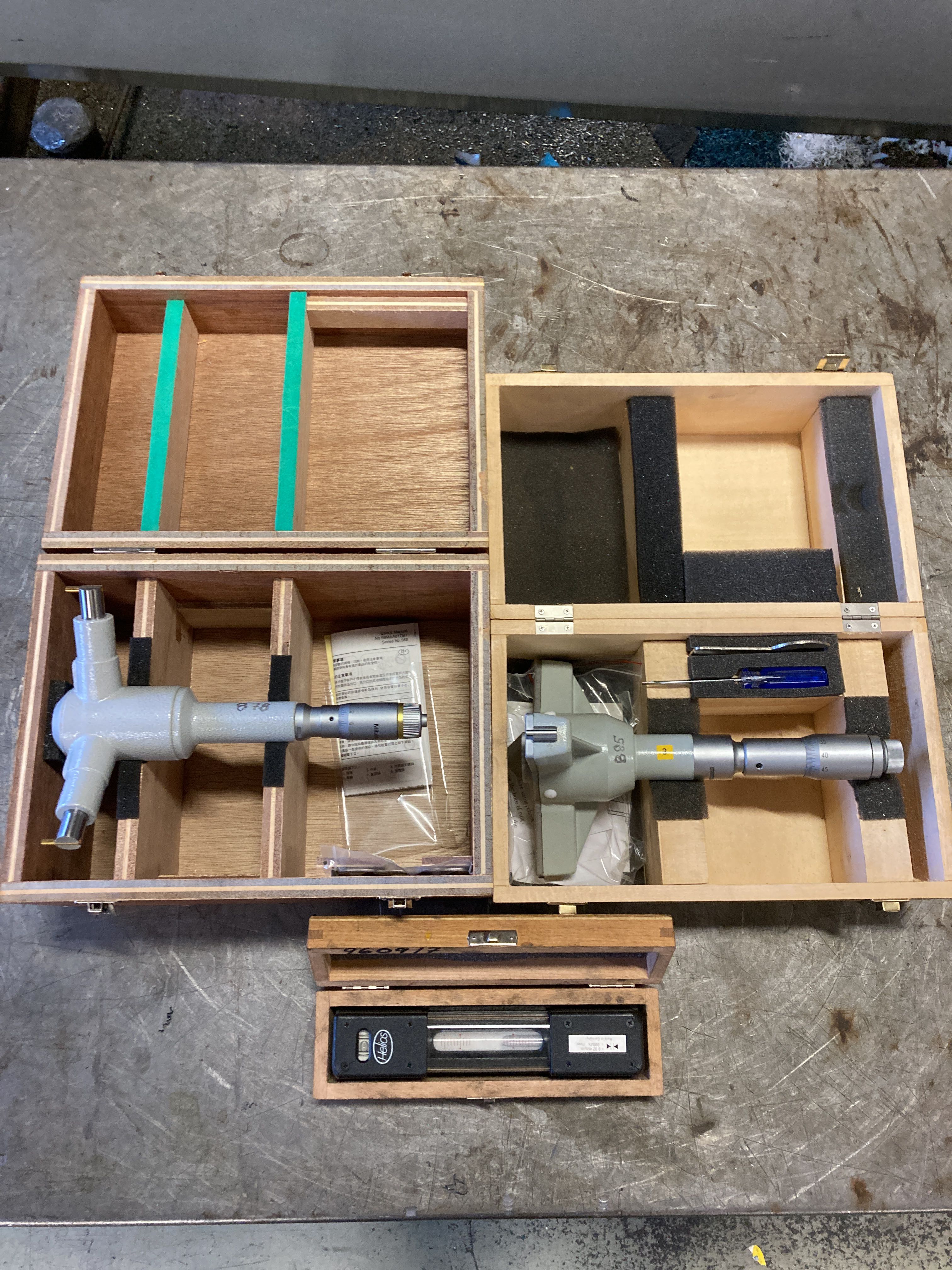 2 pcs 3-point micrometers and machine level