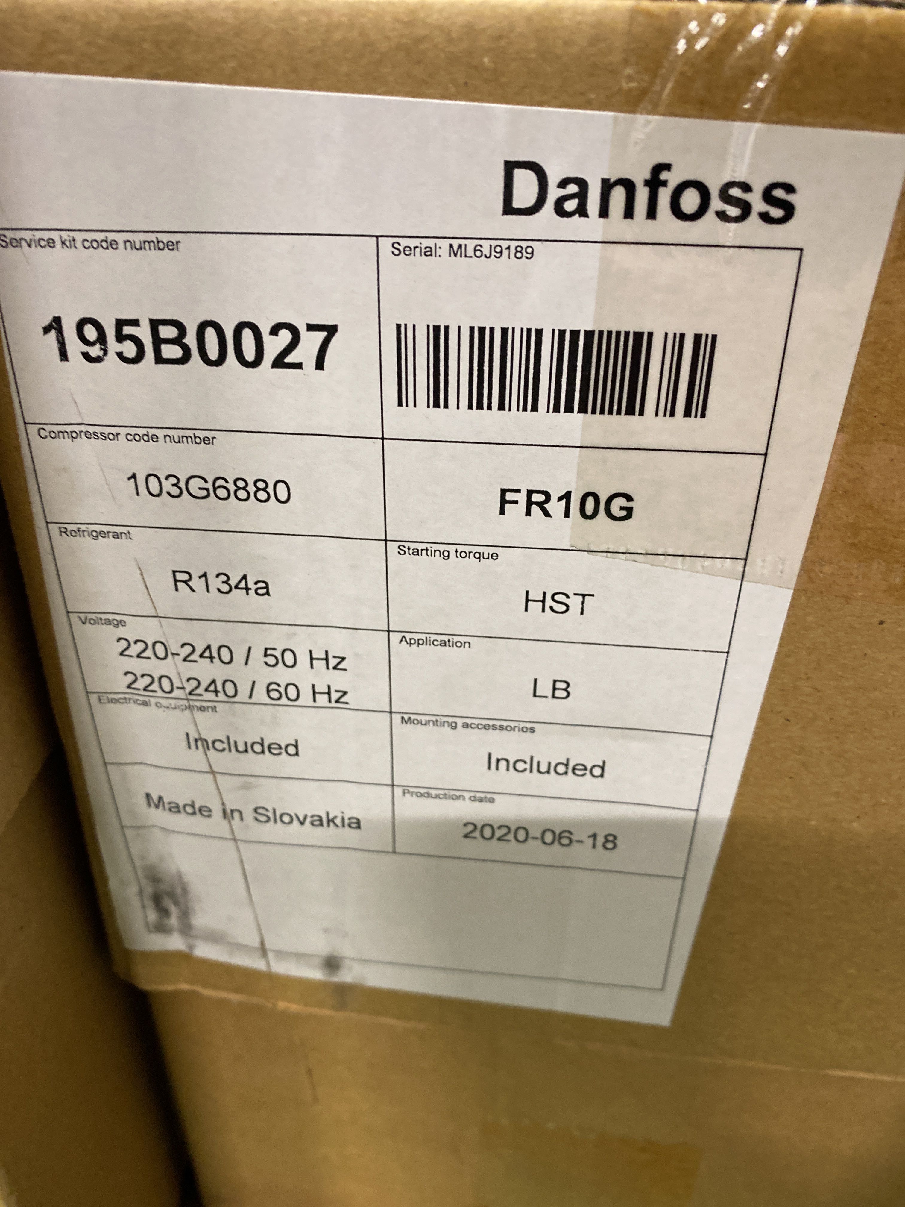 Compressor Danfoss R134a FR10GX 230V 195B0027