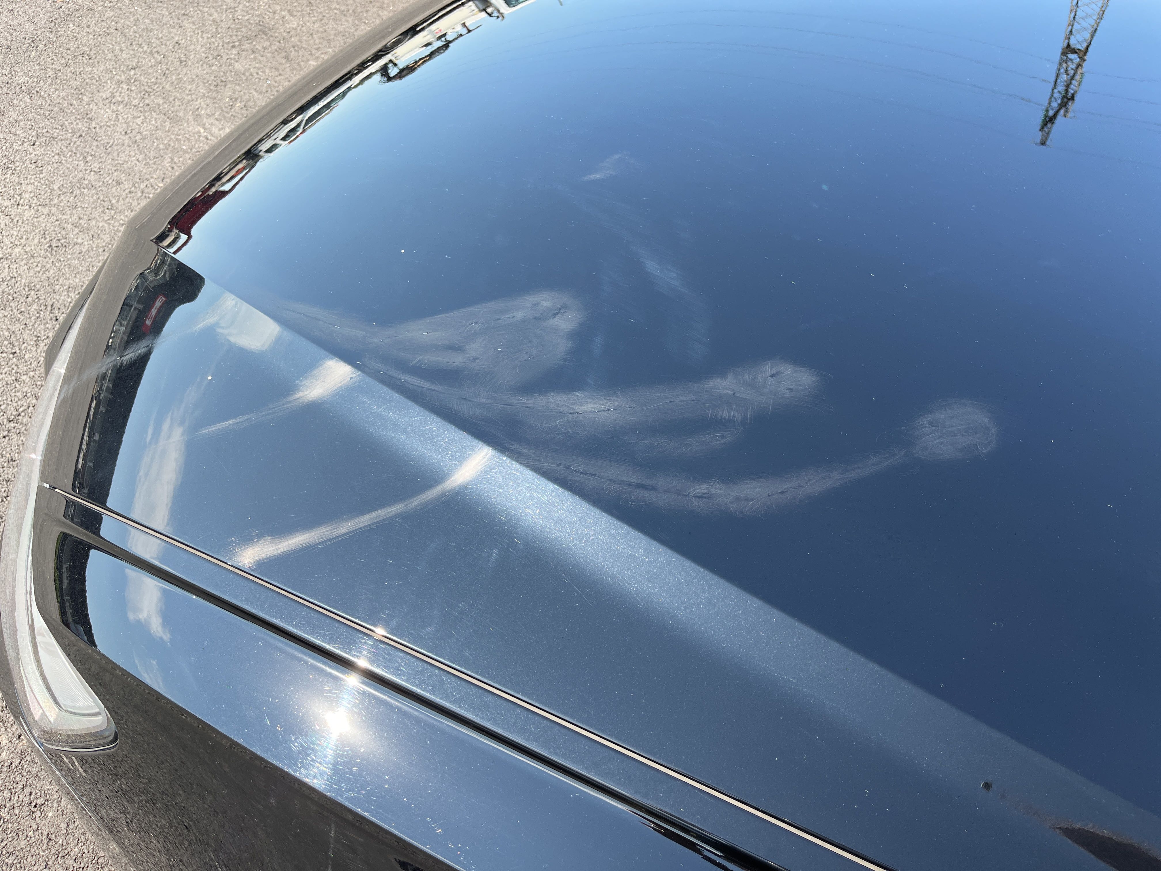 Time for service and oil change has been exceeded. The hood has damage to the paint. Doesn't look like it can be polished off.