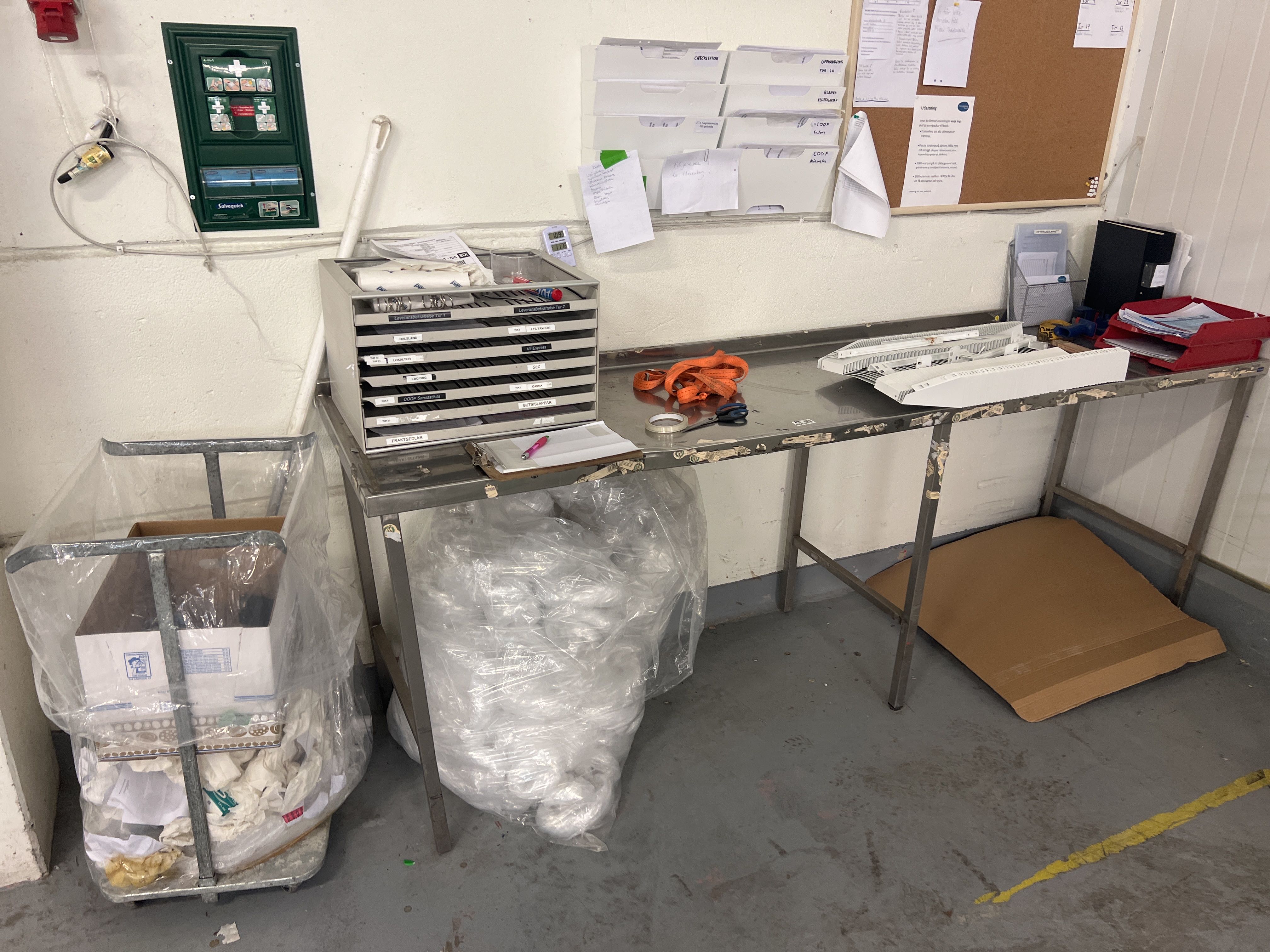 Packing bench and display counter.