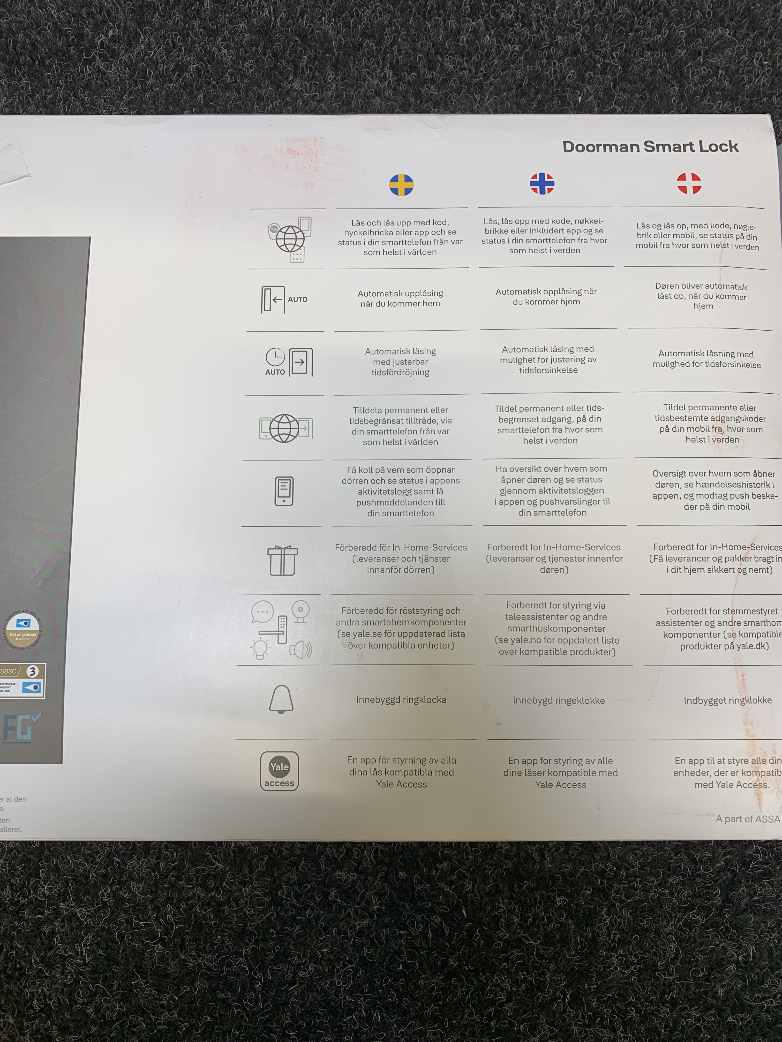 Yale Doorman L3 is a code lock with black surface treatment and electric lock with internet connection. Personal settings directly from the mobile phone. Activate auto-lock, hand out codes and let in temporary visitors with a good overview.