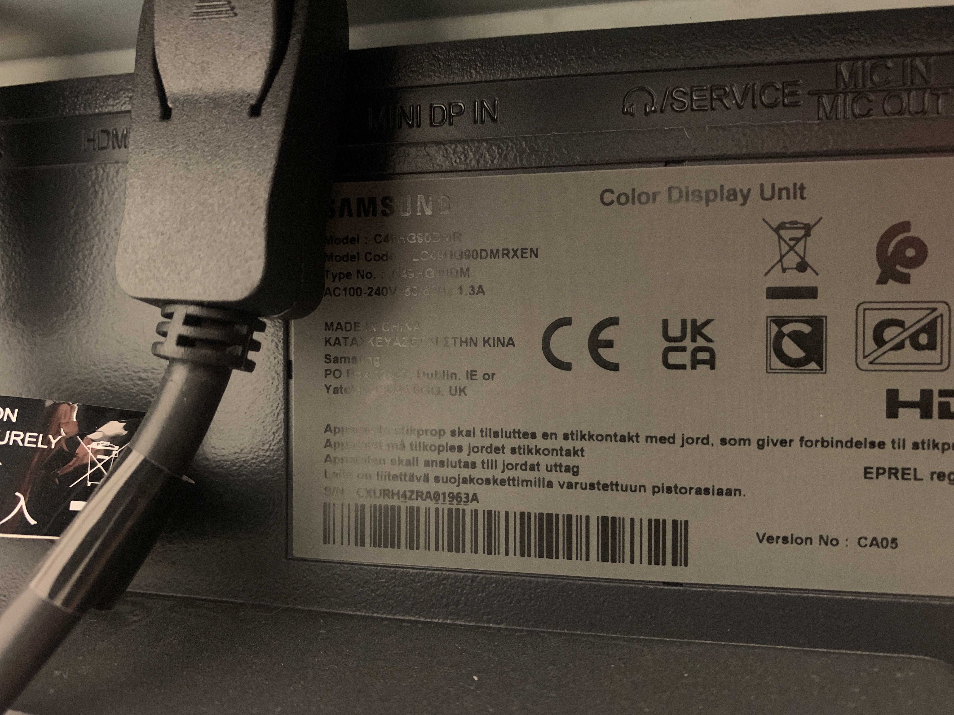 Screen Samsung Odyssey C49HG90DMR 49" Ultrawide Curved